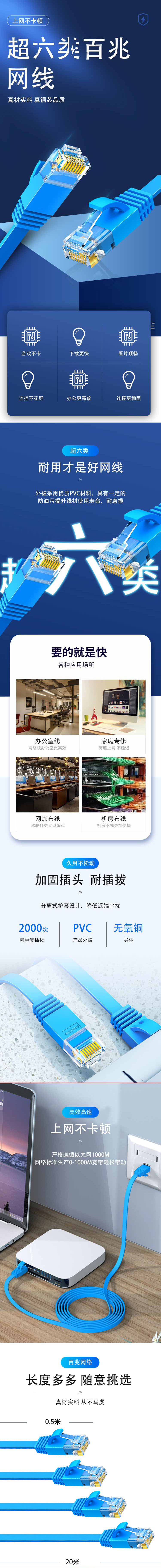 信霆 超六类网络跳线 CAT6e类百兆成品网线 蓝色 2米/条 蓝色
