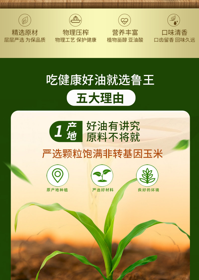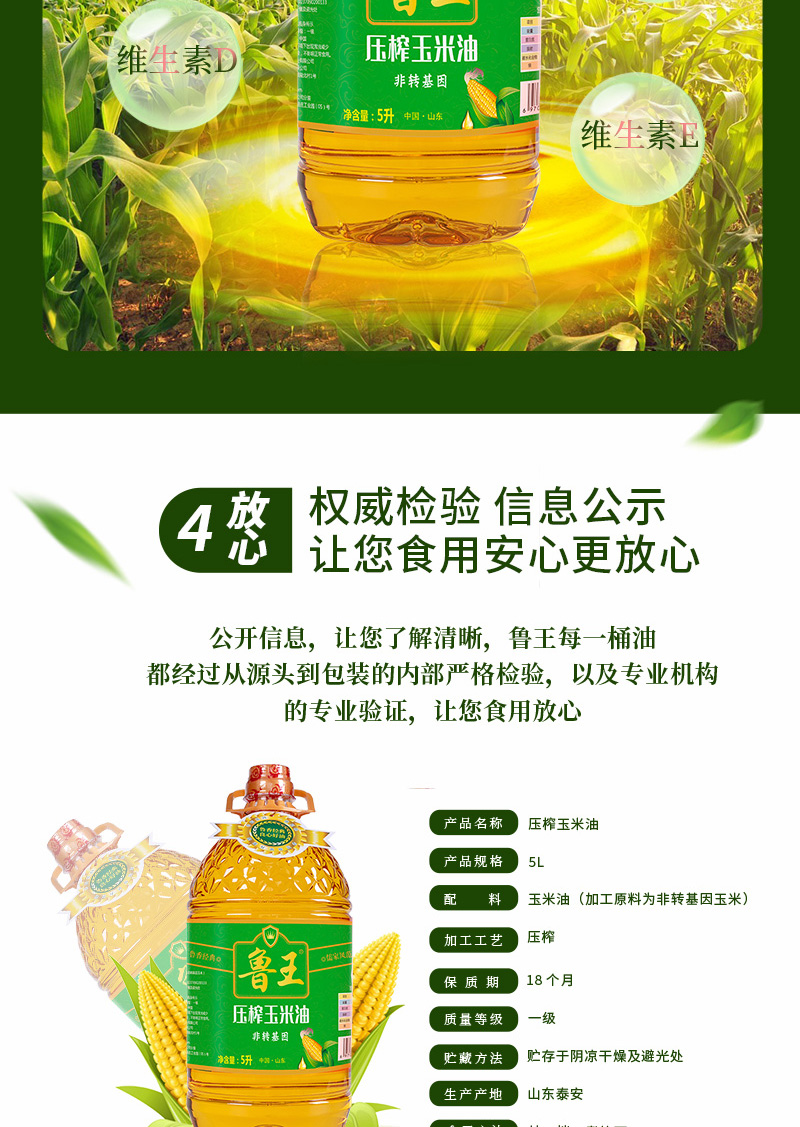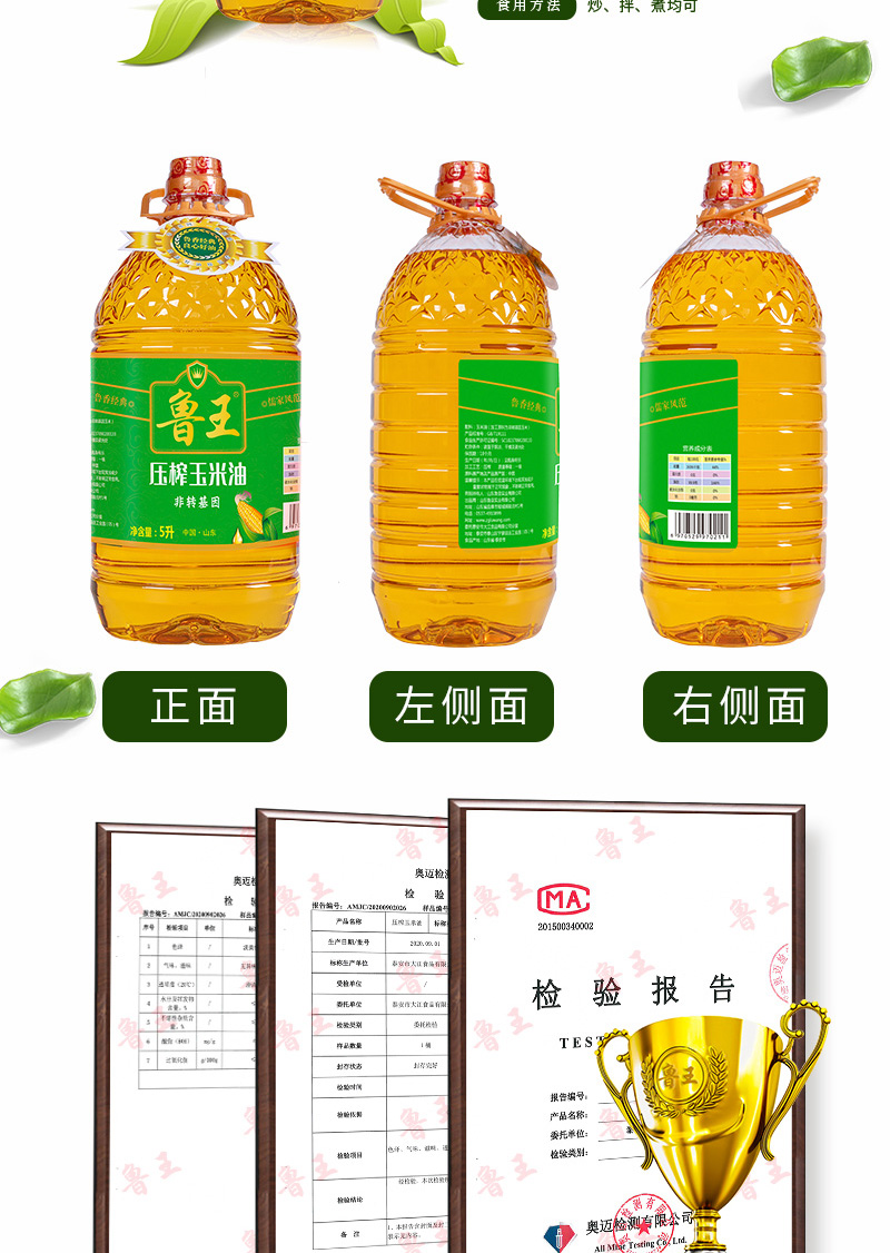 鲁王绿色健康压榨玉米油 灰绿色 5L