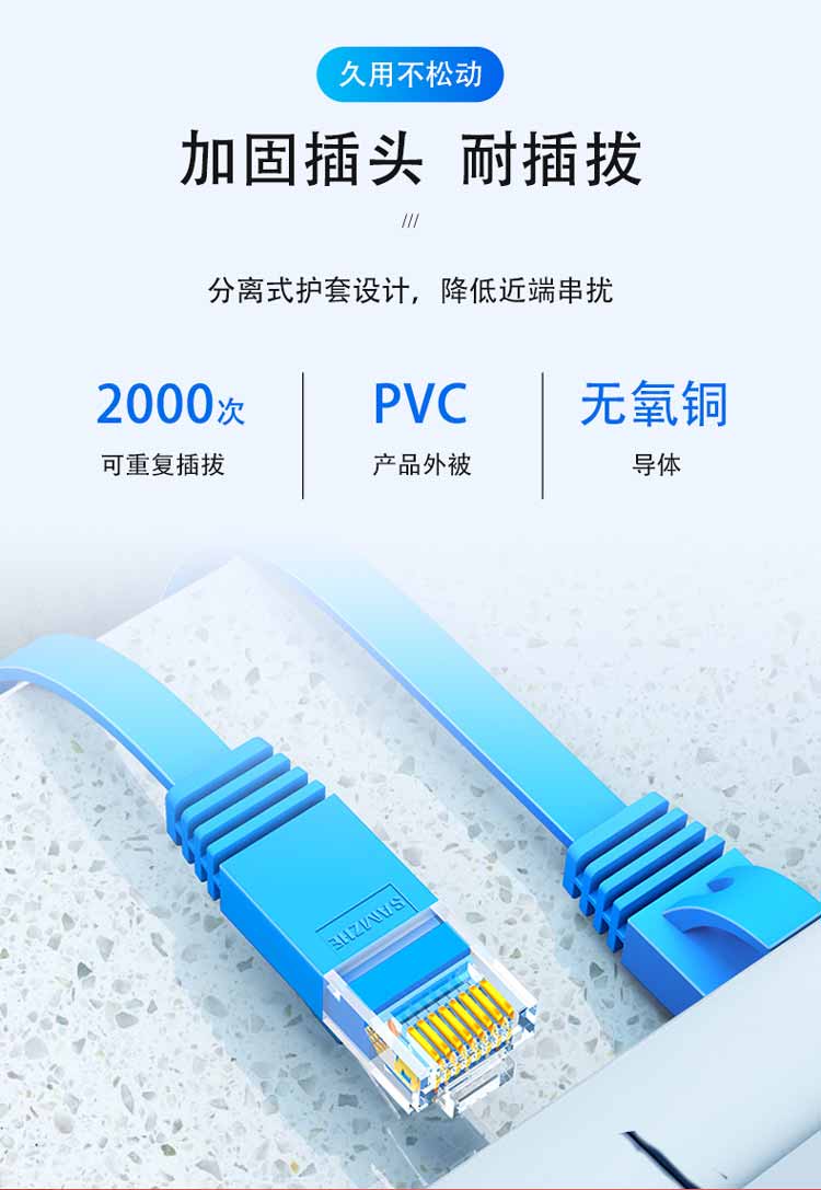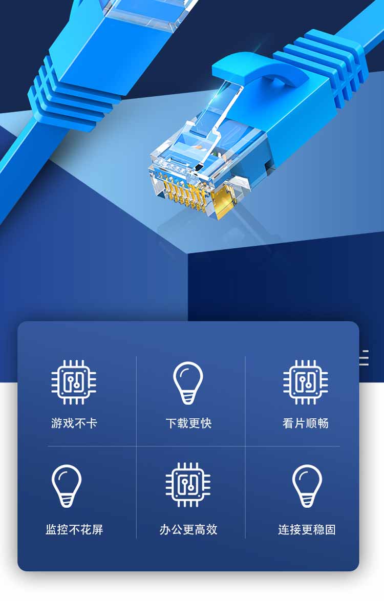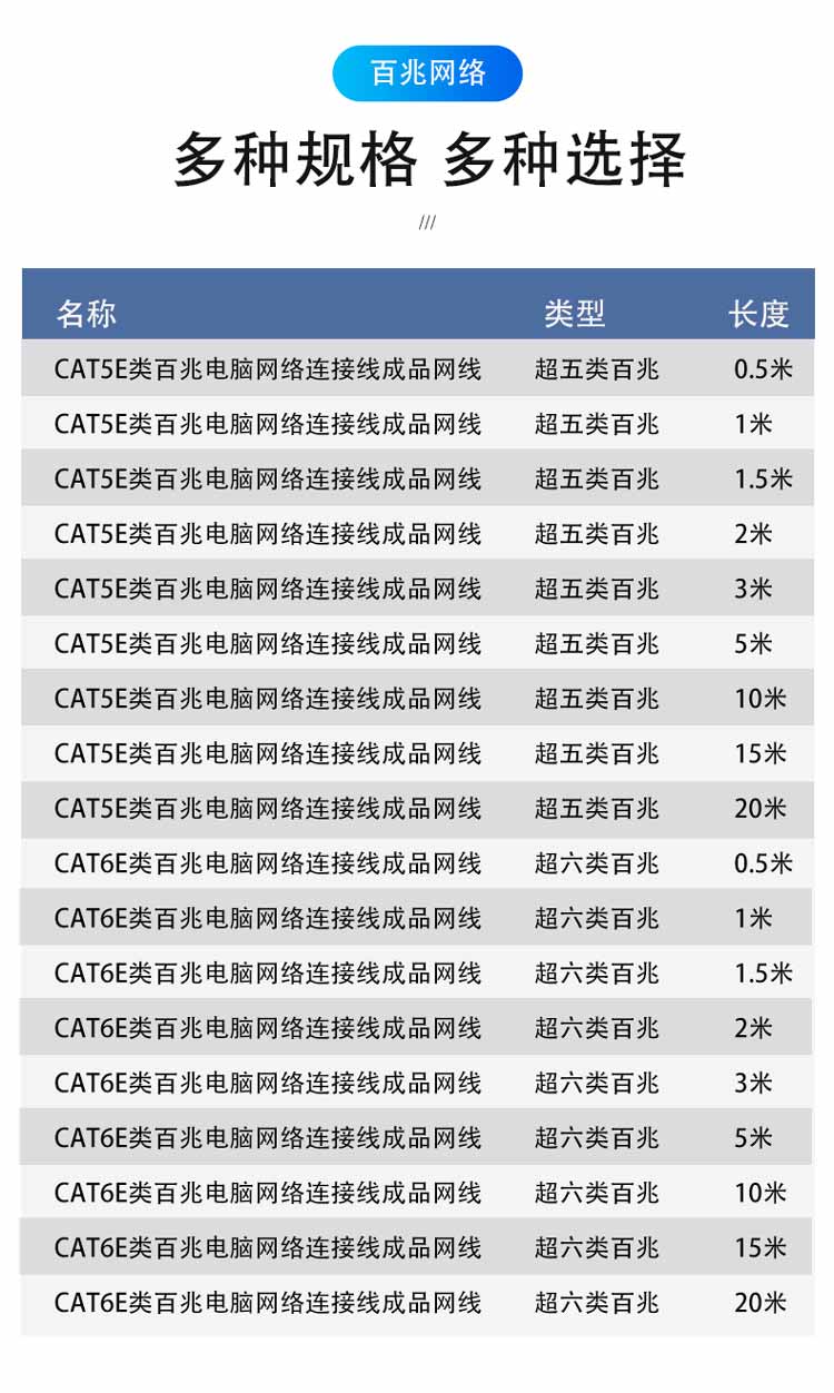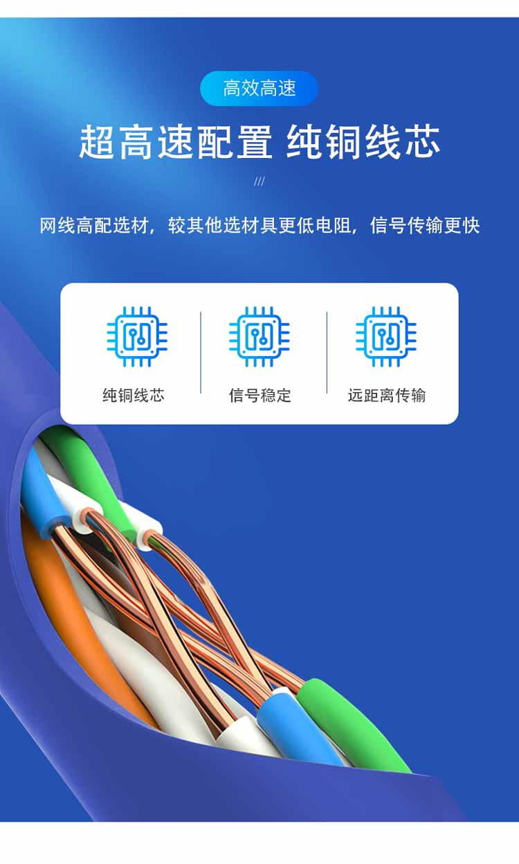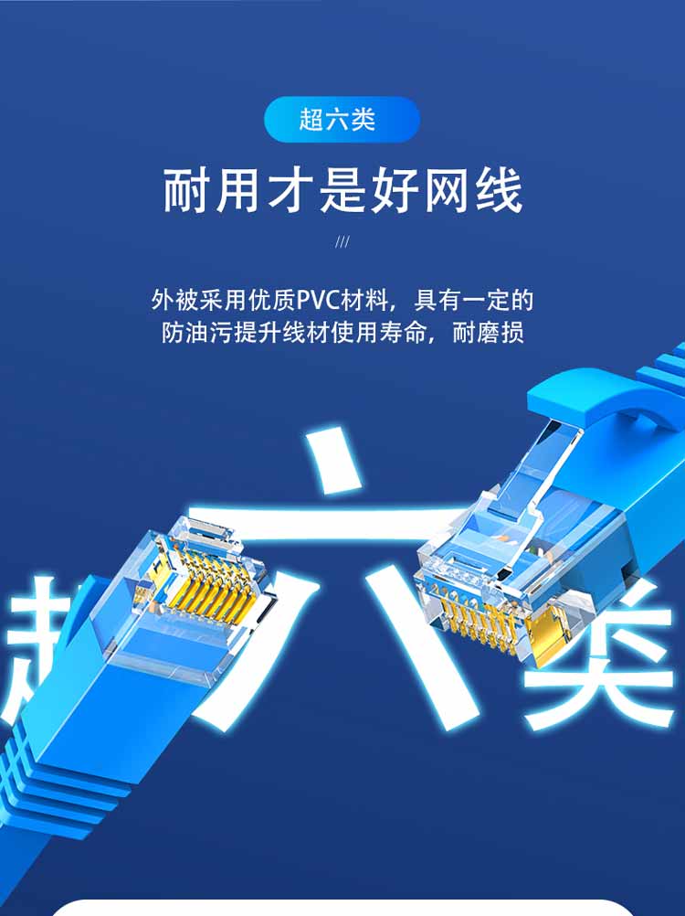 中云智创 超六类网线 CAT6e类 百兆成品网线 20米/条 蓝色