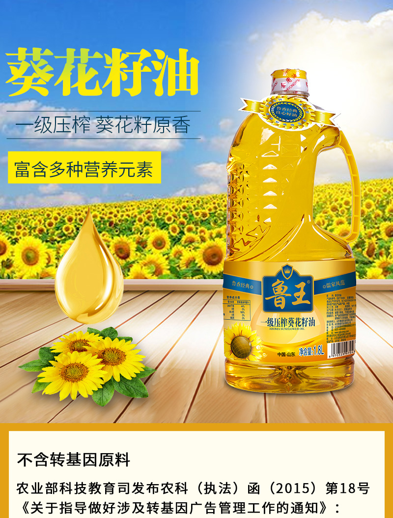 鲁王一级压榨葵花油 宝石蓝 1.8L