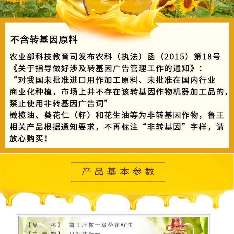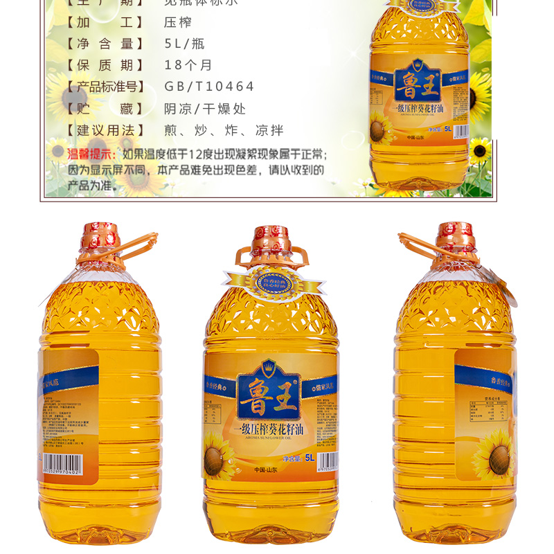 鲁王一级压榨葵花油 宝石蓝 5L