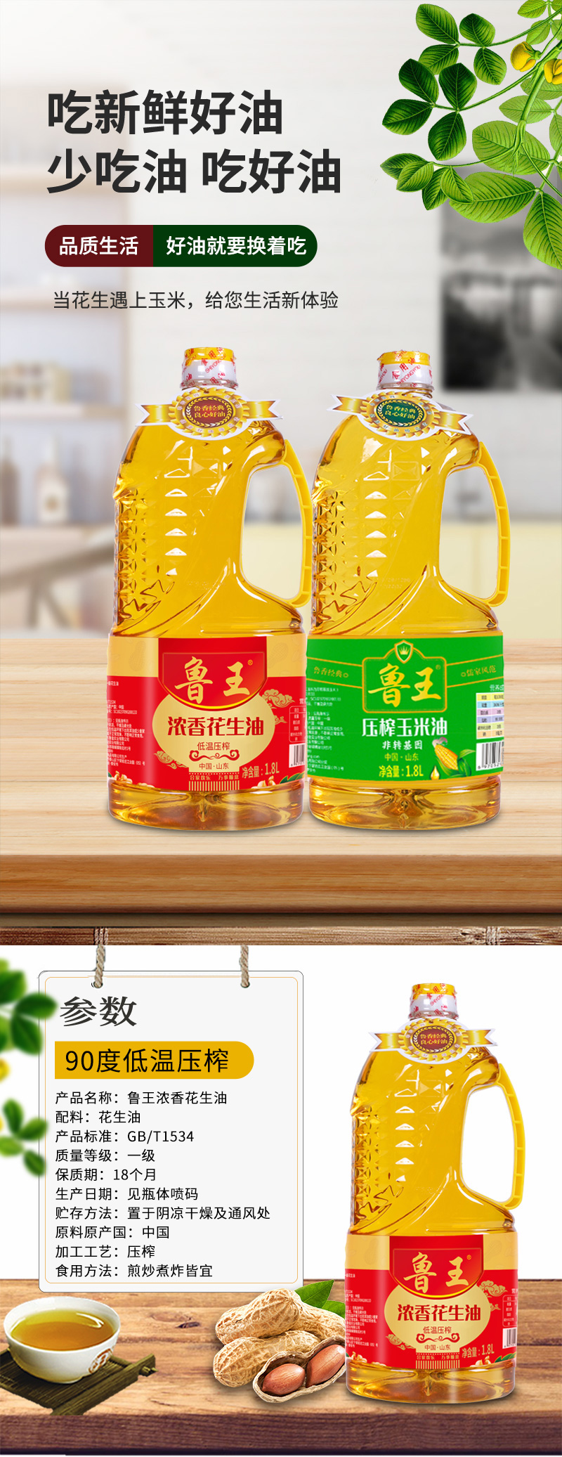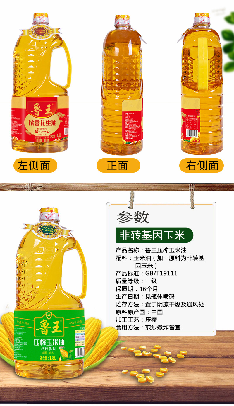鲁王浓香花生油+压榨玉米油 清新色 1.8L*2