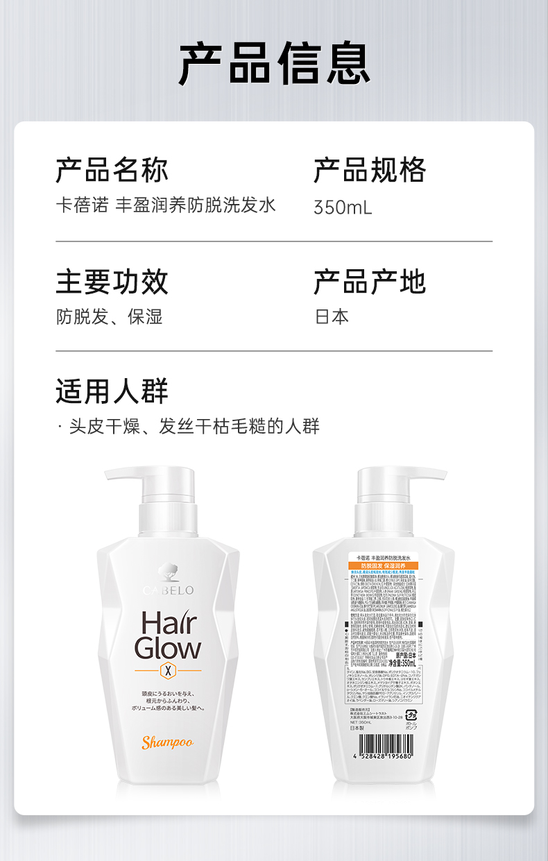 卡蓓诺/CABELO 丰盈润养 防脱洗发水 350ml 白色(单位:瓶)