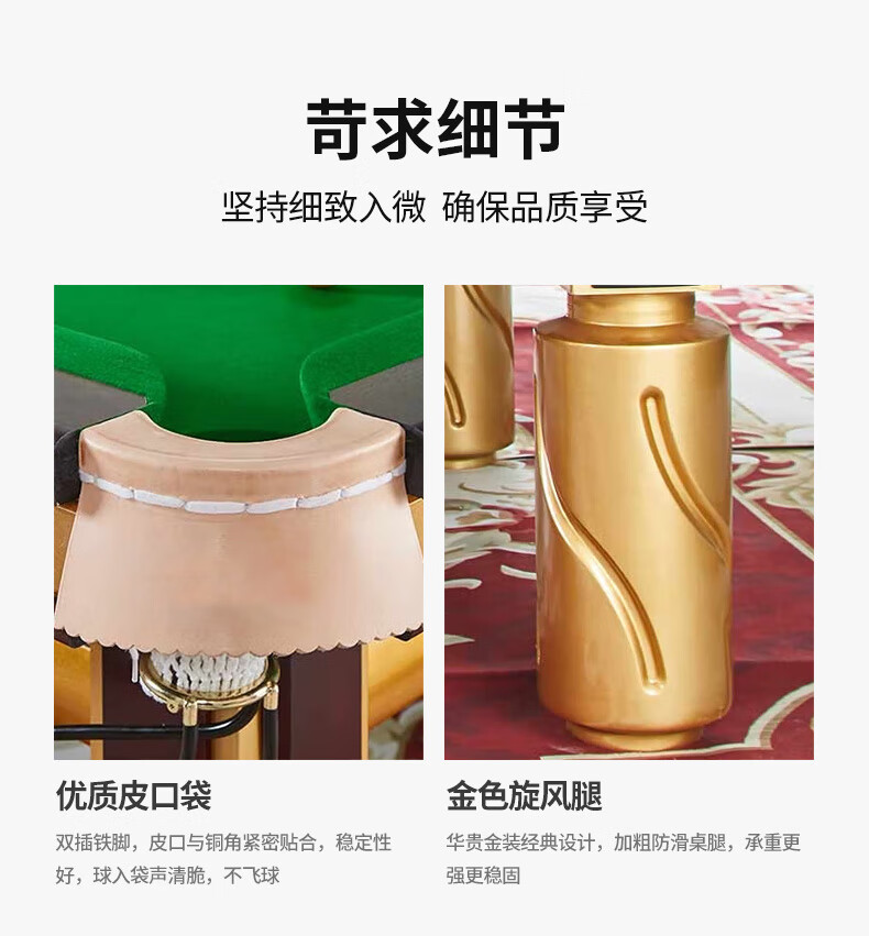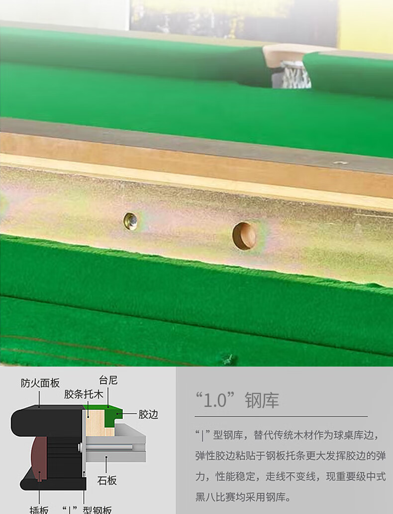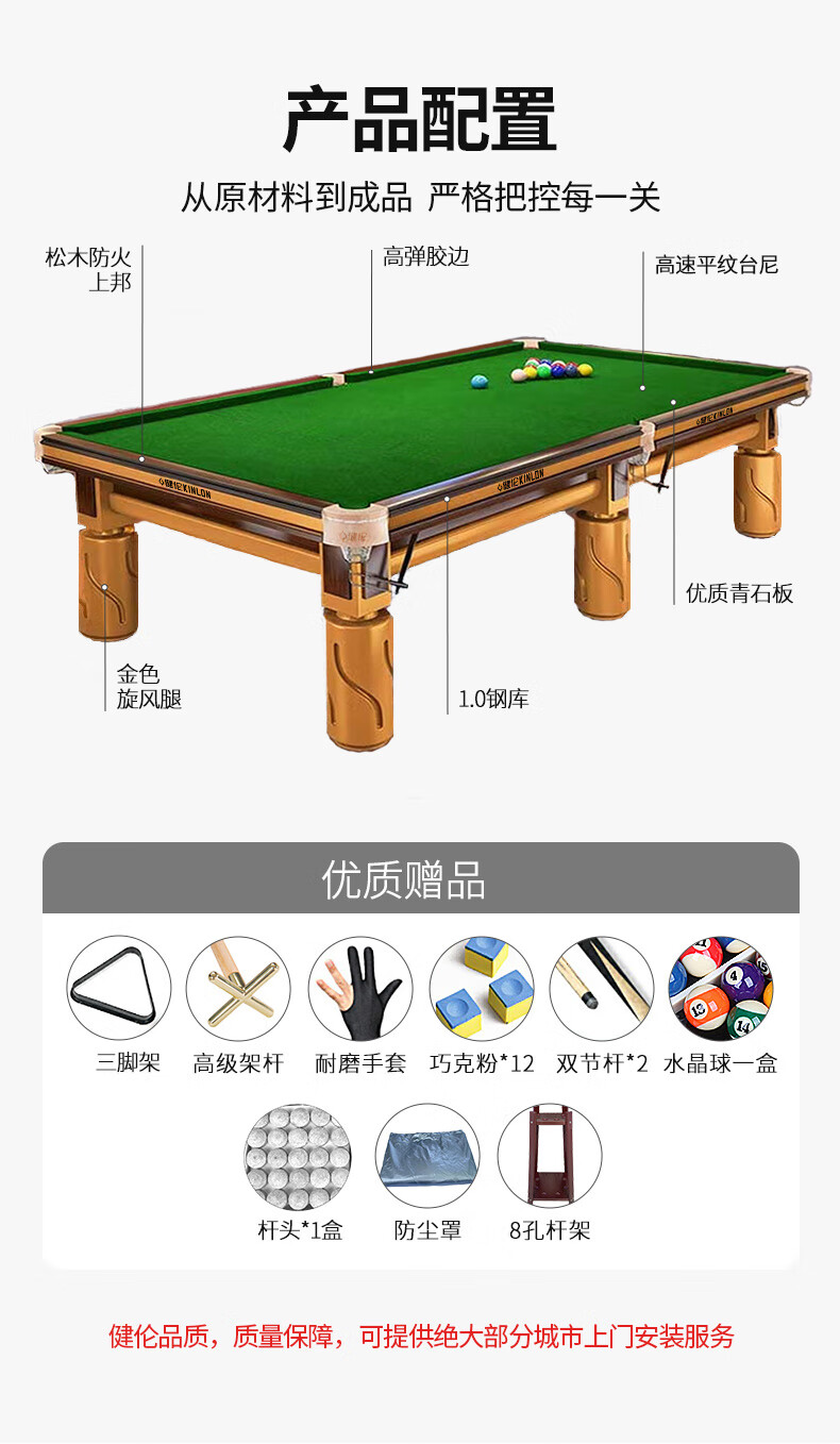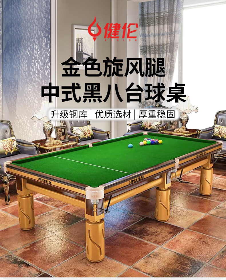 健伦(JEEANLEAN)JL-ZQT-A3黑八钢库台球桌旋风腿台球桌成人桌球台 9尺台 顶配版 军绿色
