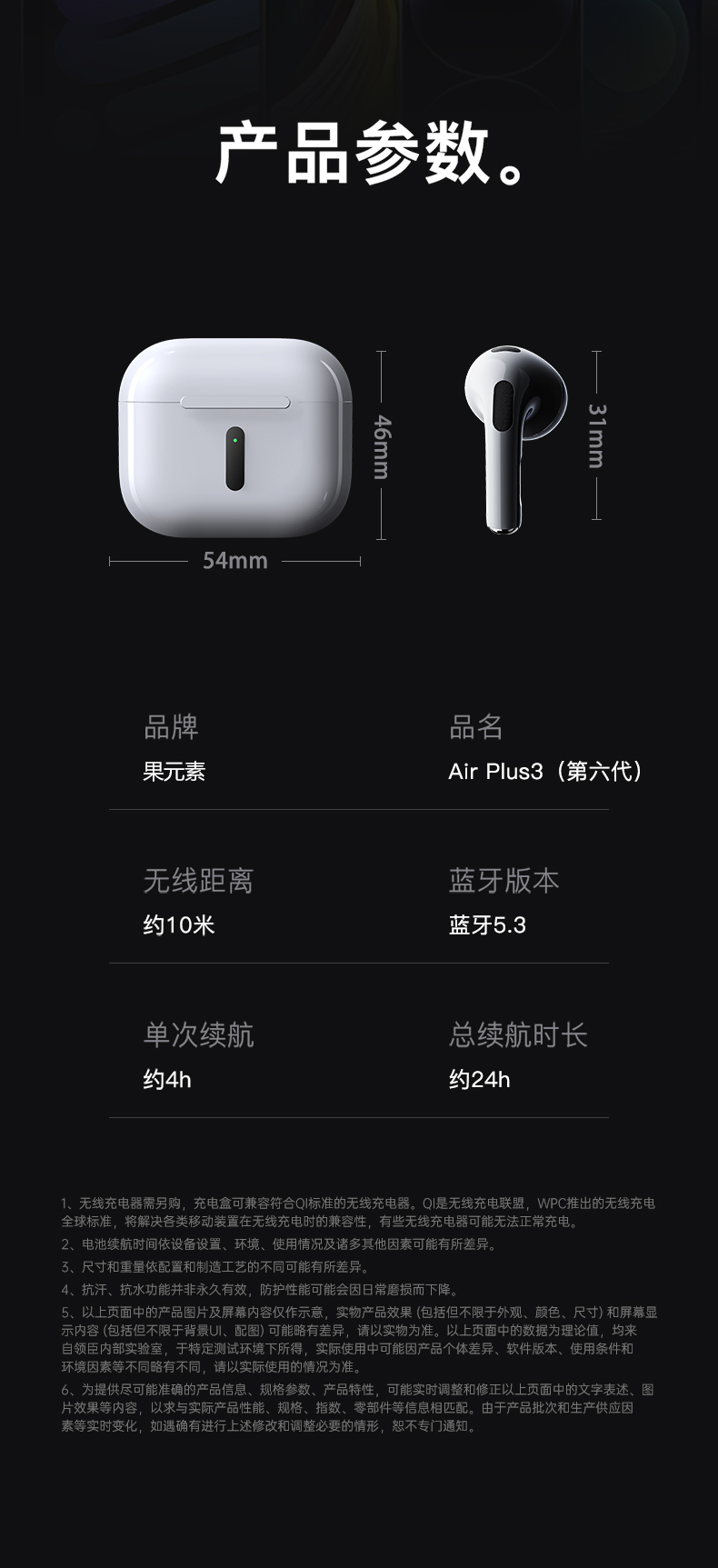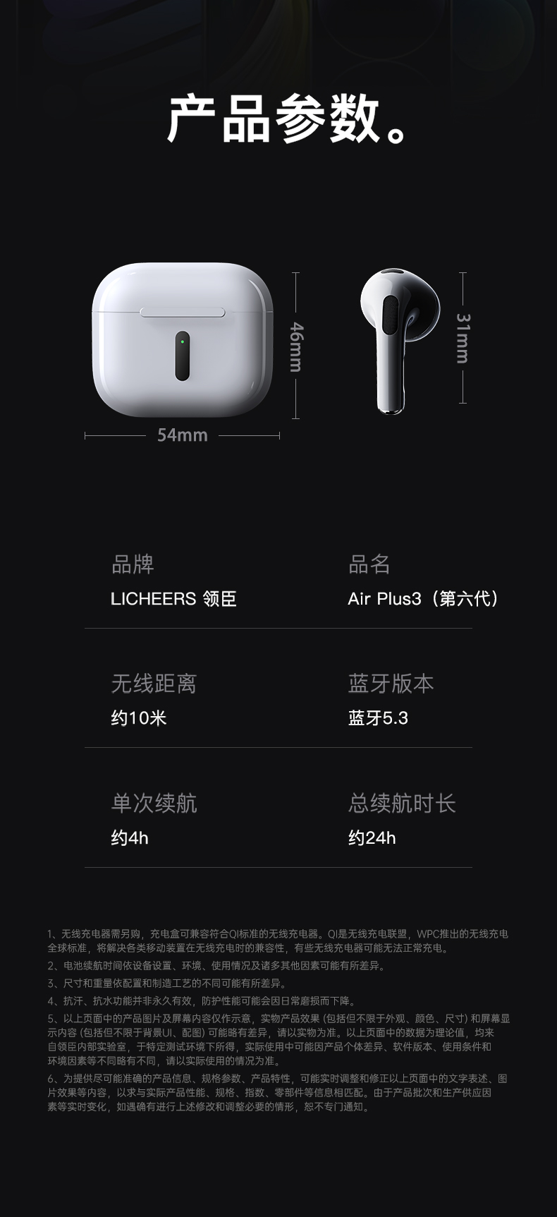 领臣 蓝牙耳机无线六代 Air Plus3 个 白色