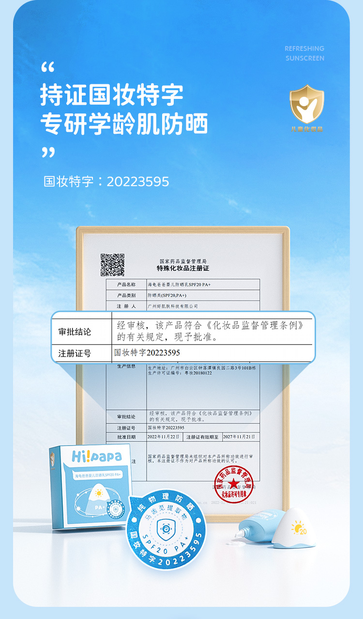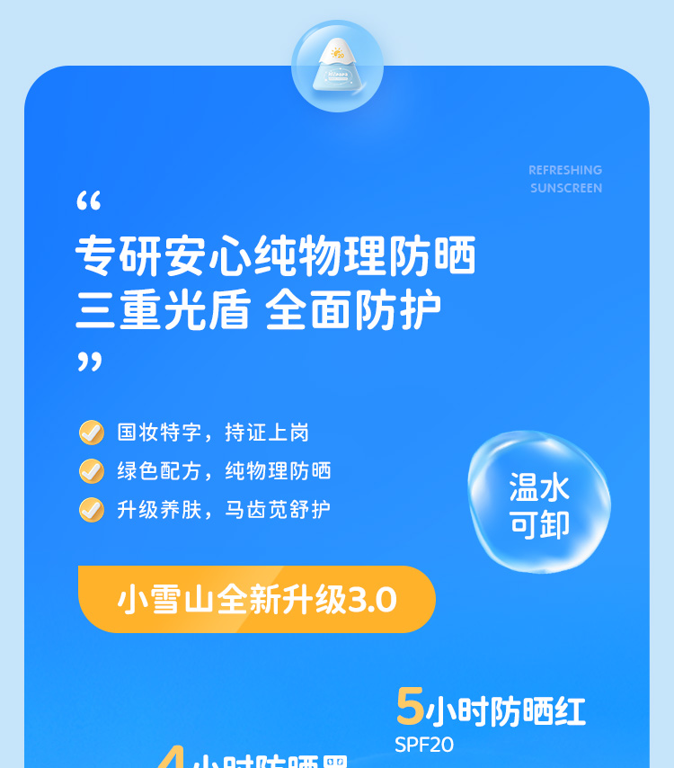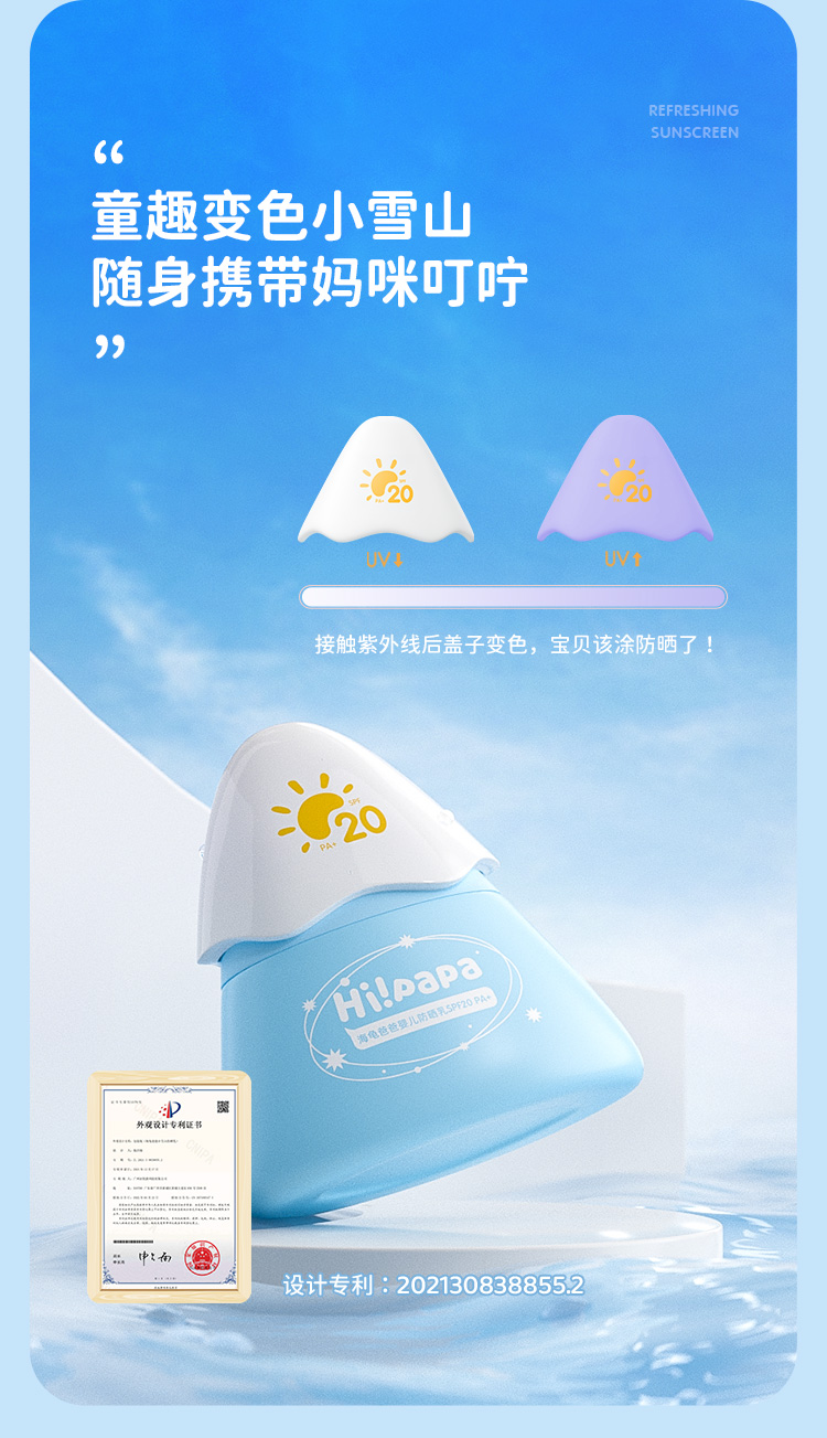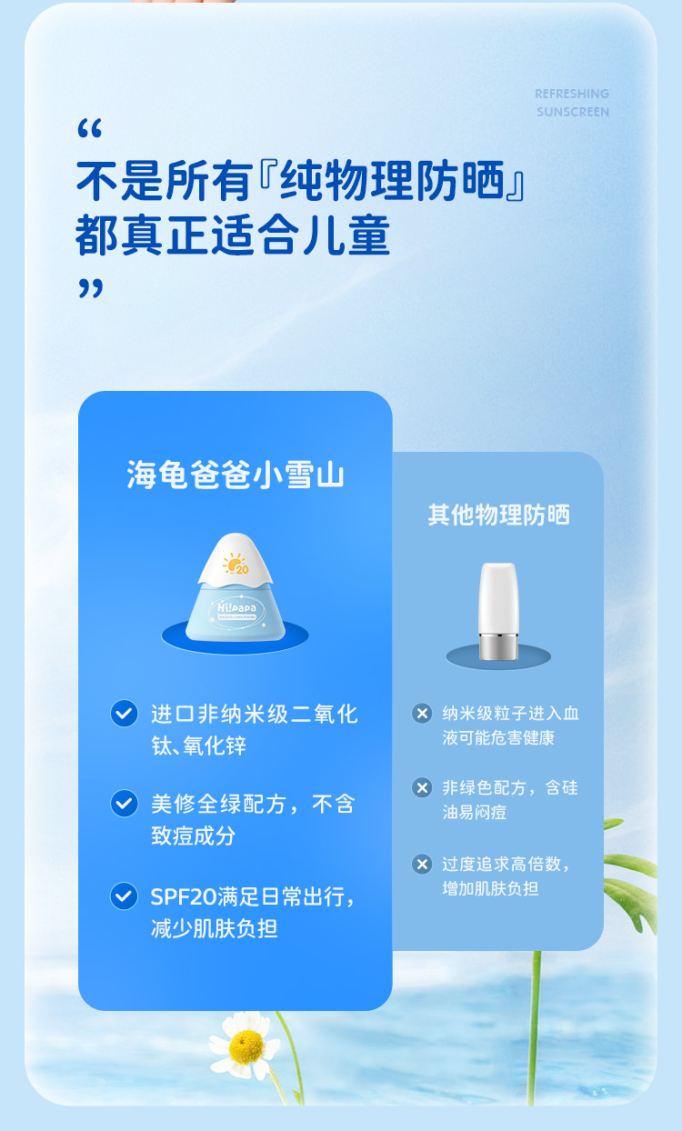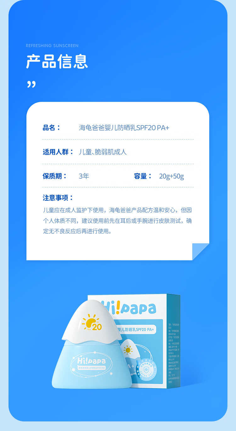 海龟爸爸小雪山防晒乳20g+50g小雪山防晒3.0 纯物理防晒SPF20/PA+(单位:支) 婴儿蓝