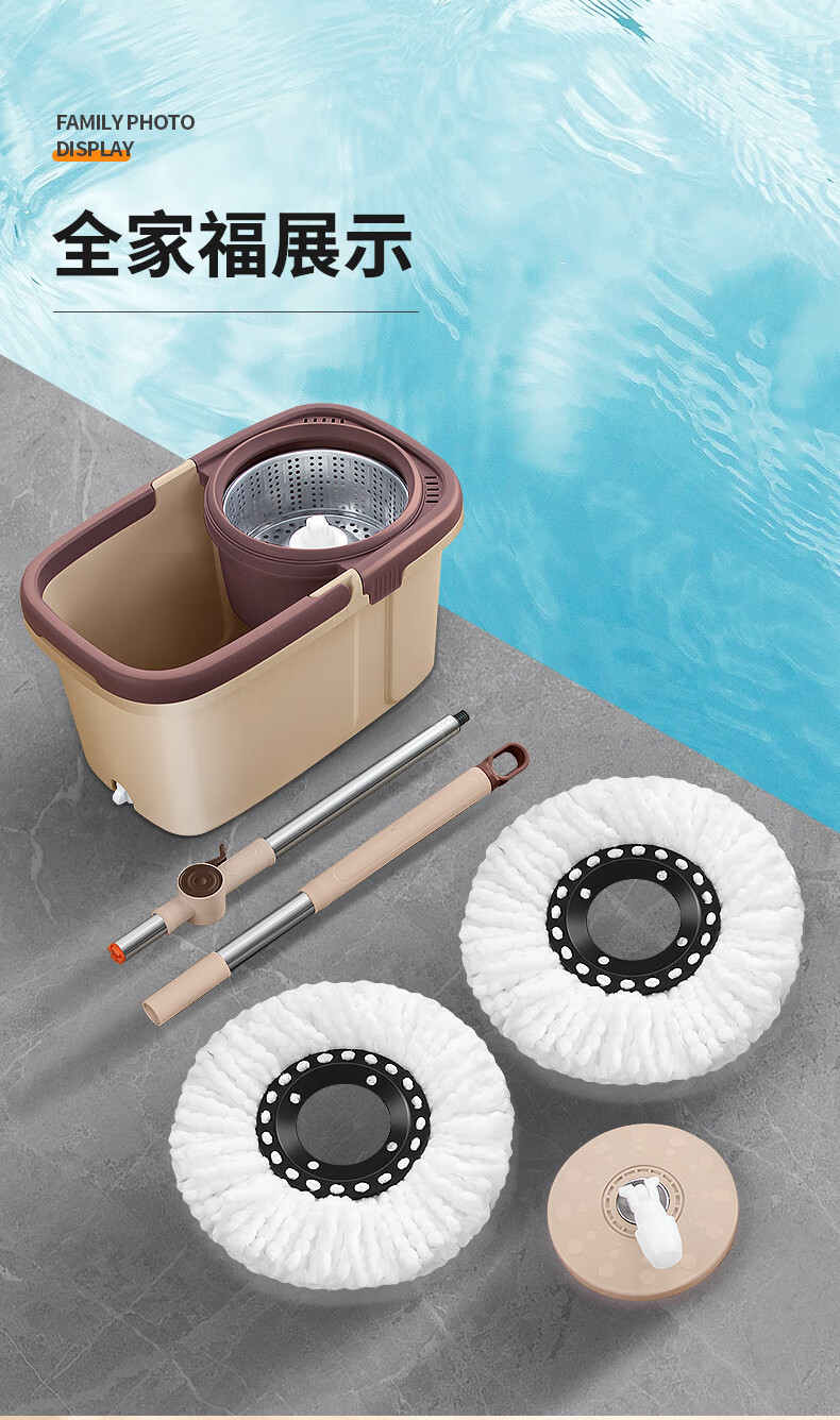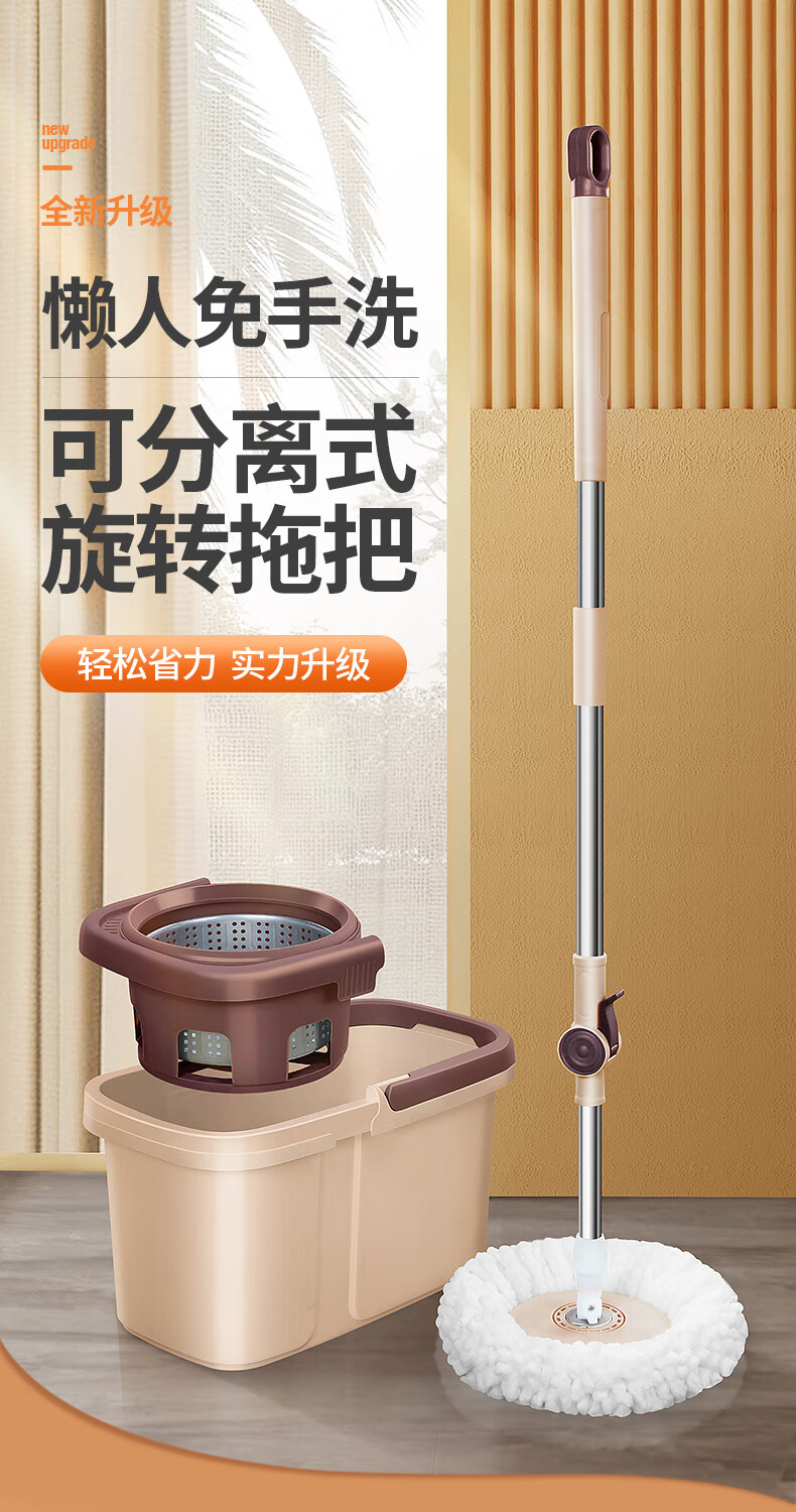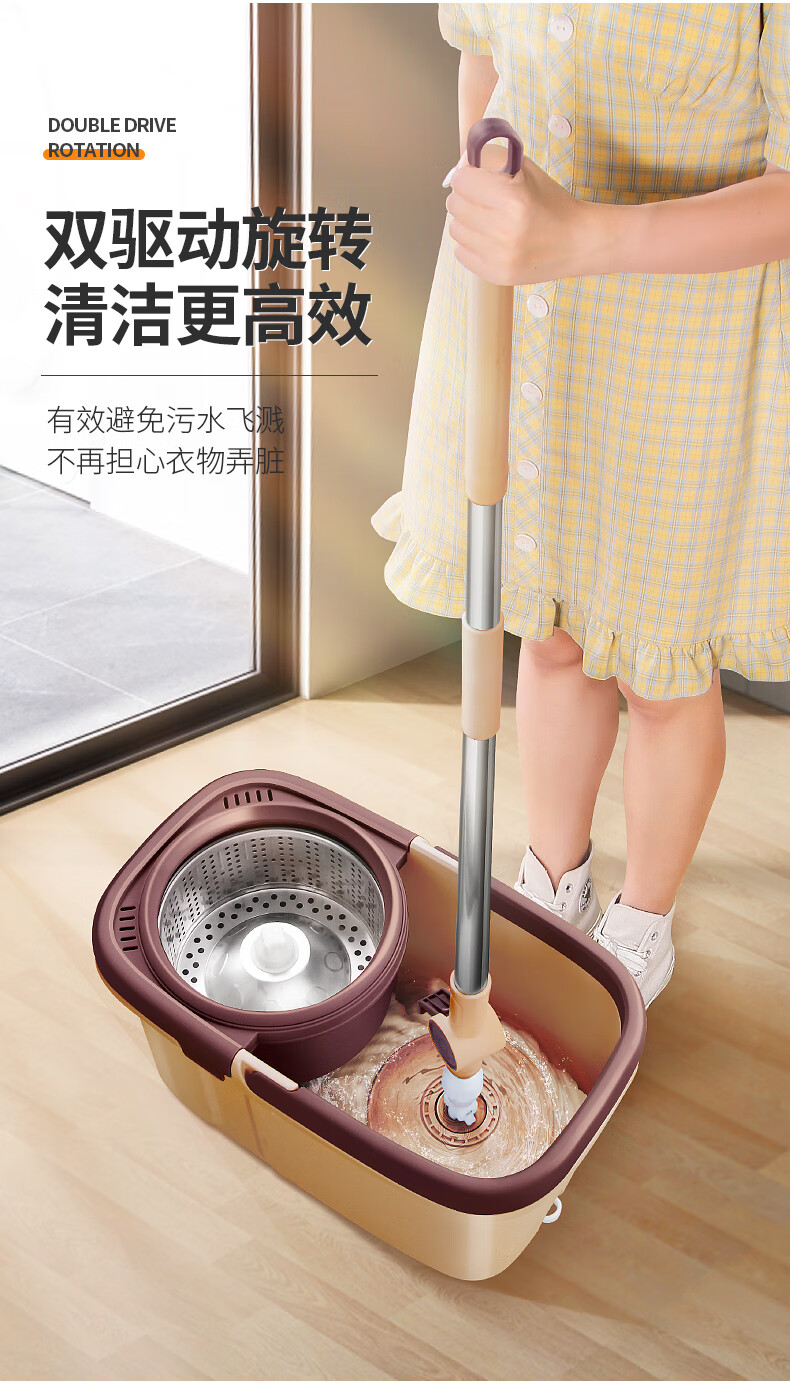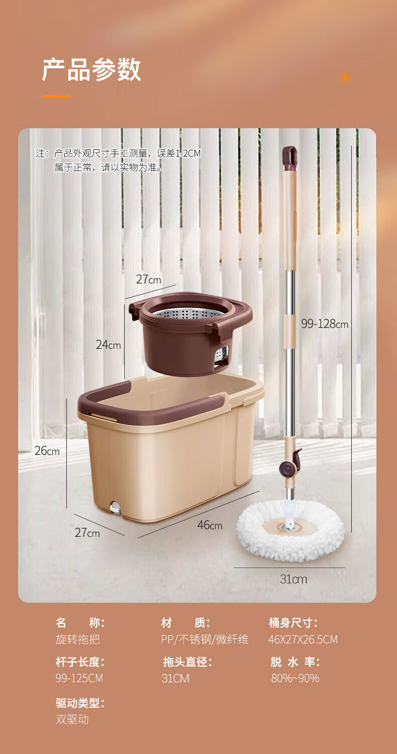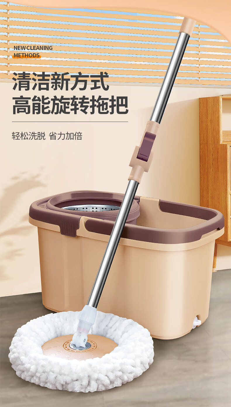 百家好世 可拆卸旋转拖把--卡其色大杆塑料盘2头(单位:个) 旋转拖把