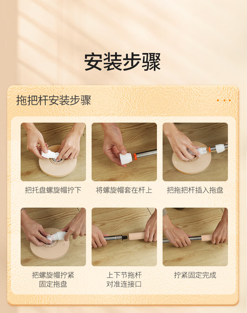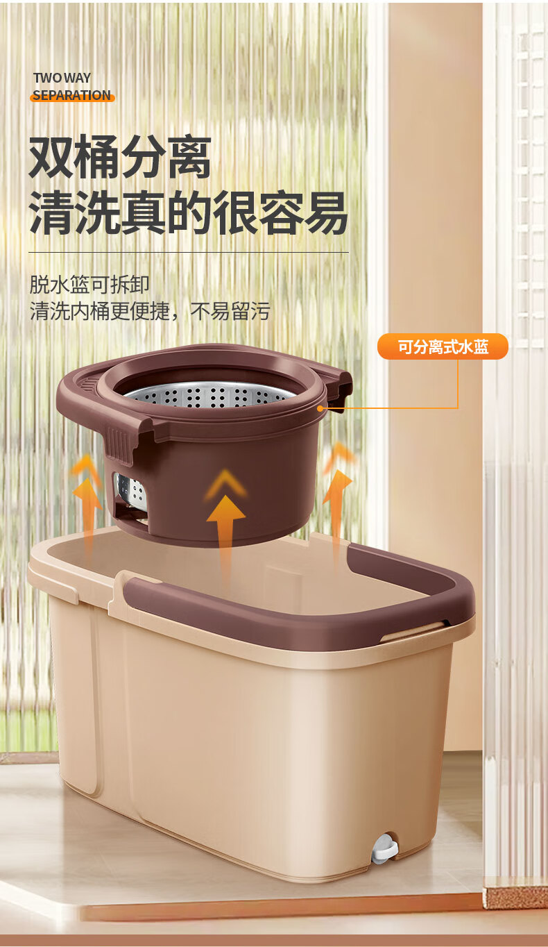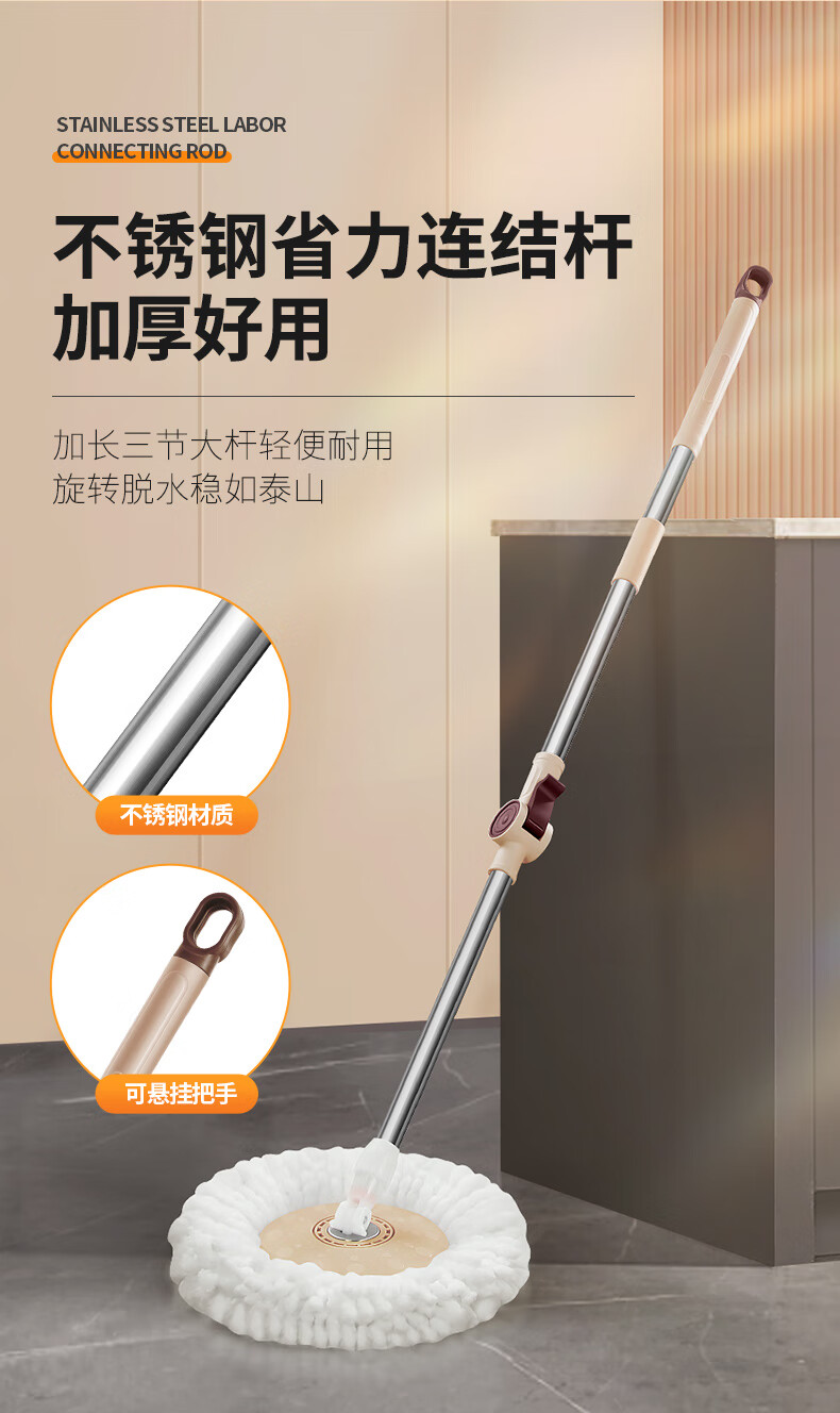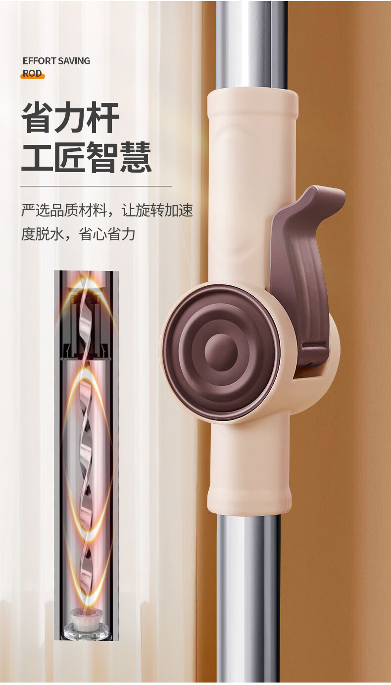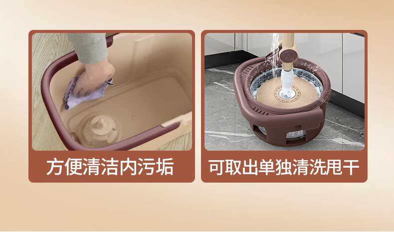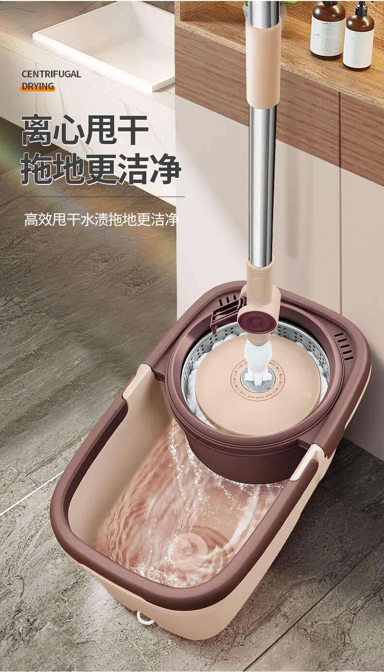 百家好世 可拆卸旋转拖把--卡其色大杆塑料盘2头(单位:个) 旋转拖把