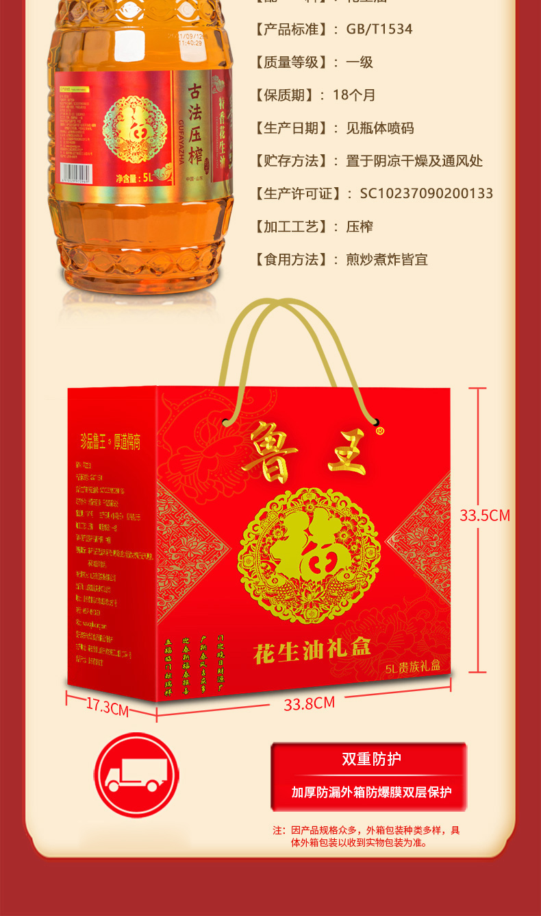 鲁王特香花生油 福气礼盒 拿铁色 5L*2