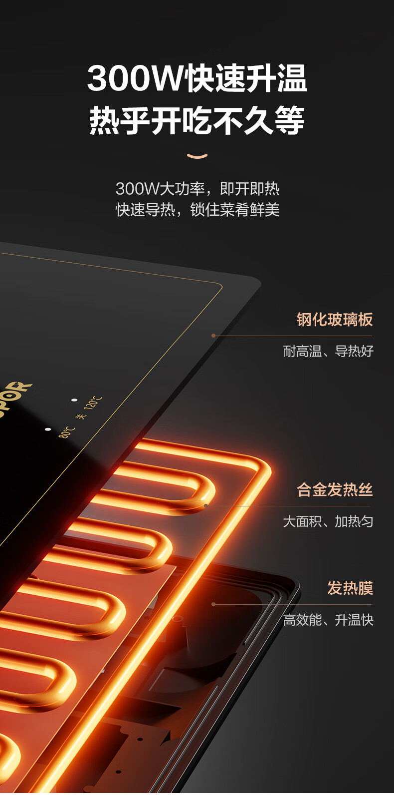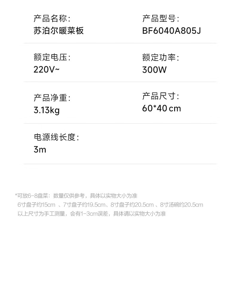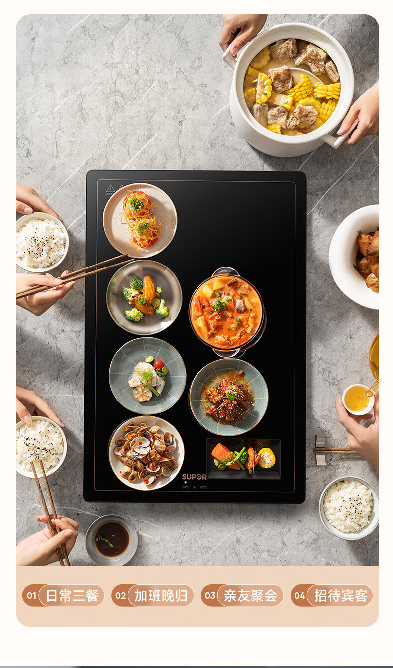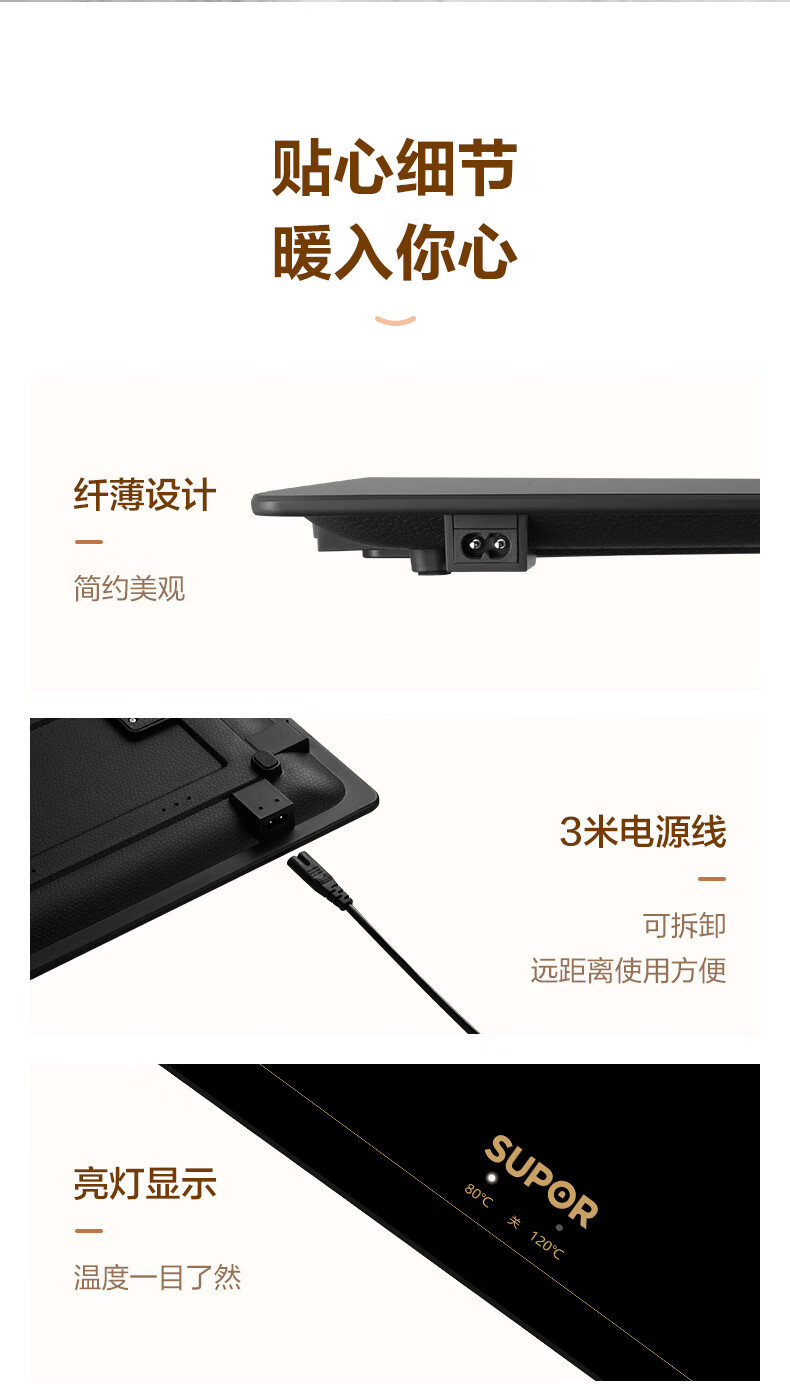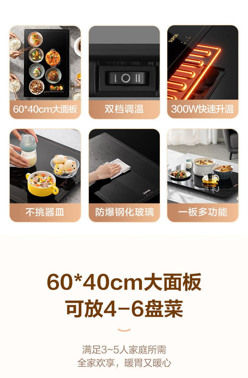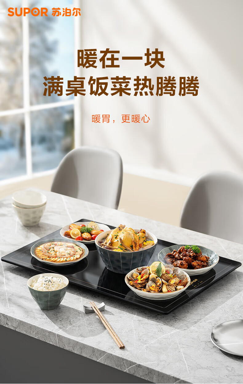 苏泊尔(SUPOR)暖菜板 饭菜保温板热菜板 加热桌垫菜板 BF6040A805J(台) 曜石黑