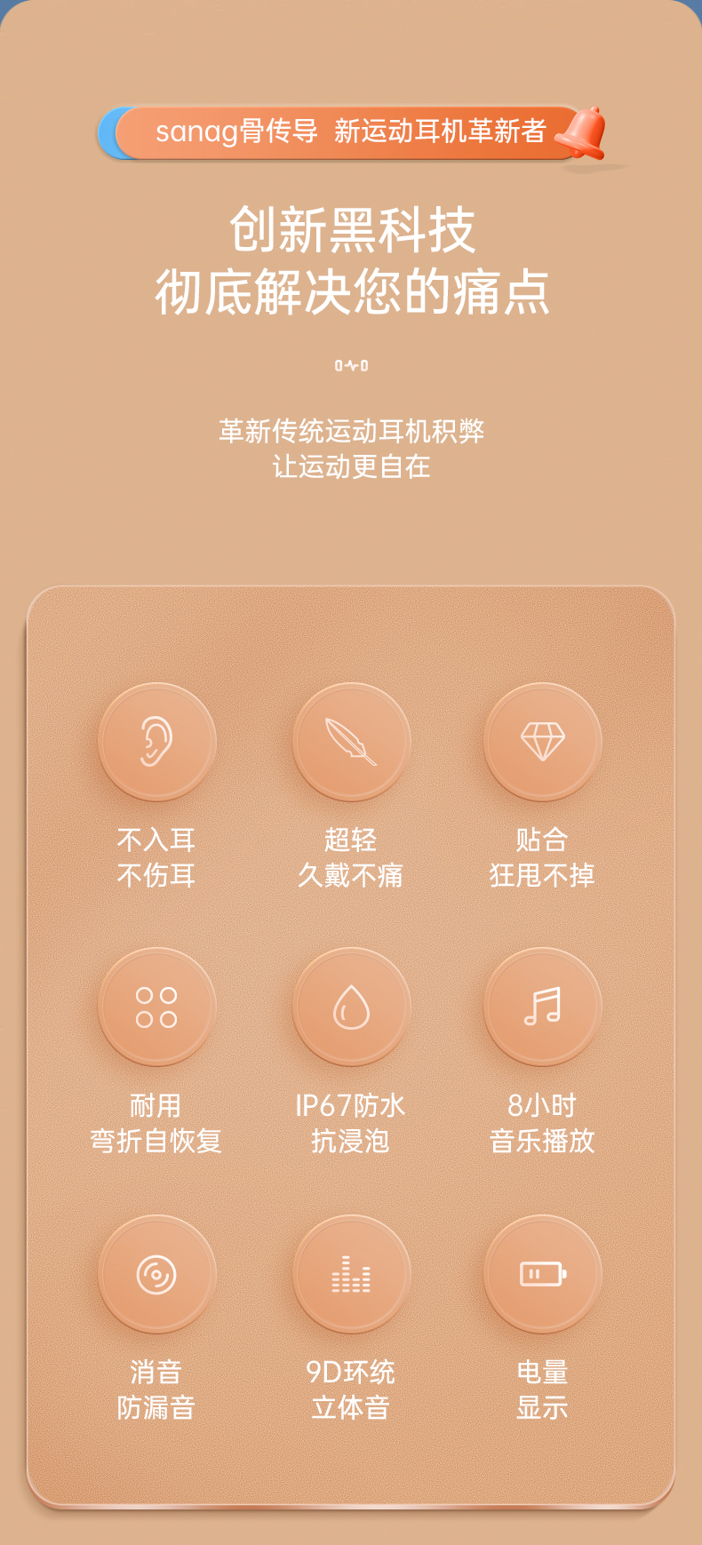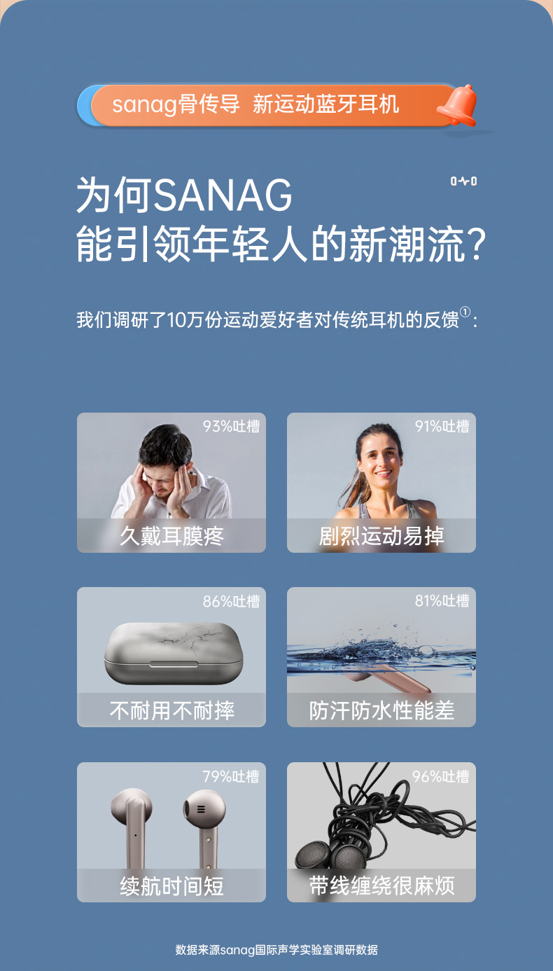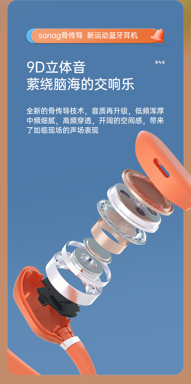 sanag塞那骨传导蓝牙耳机无线耳骨感不入耳气传导运动型跑步健身A5SPro单位:个 曜石黑
