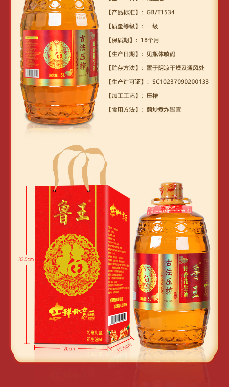 鲁王特香花生油 如意礼盒 拿铁色 5L*1