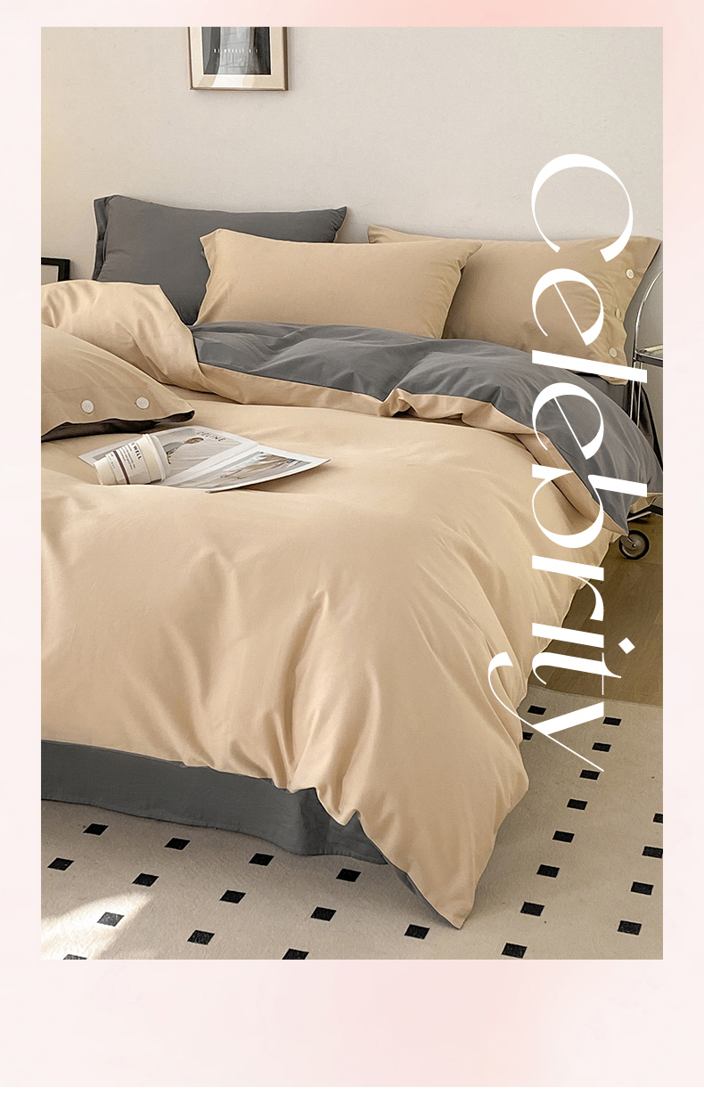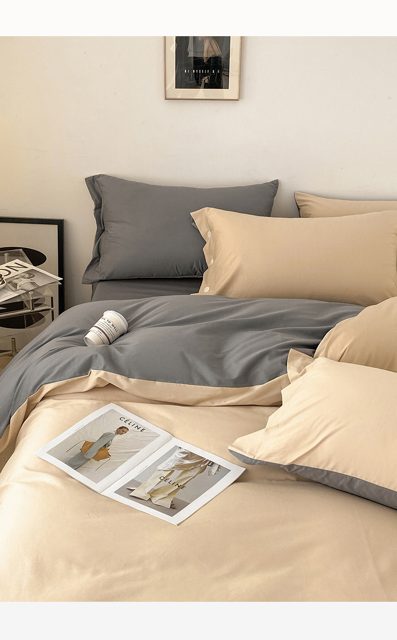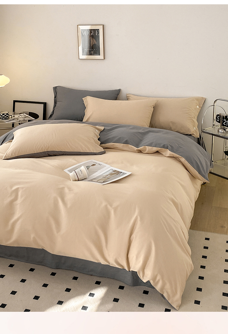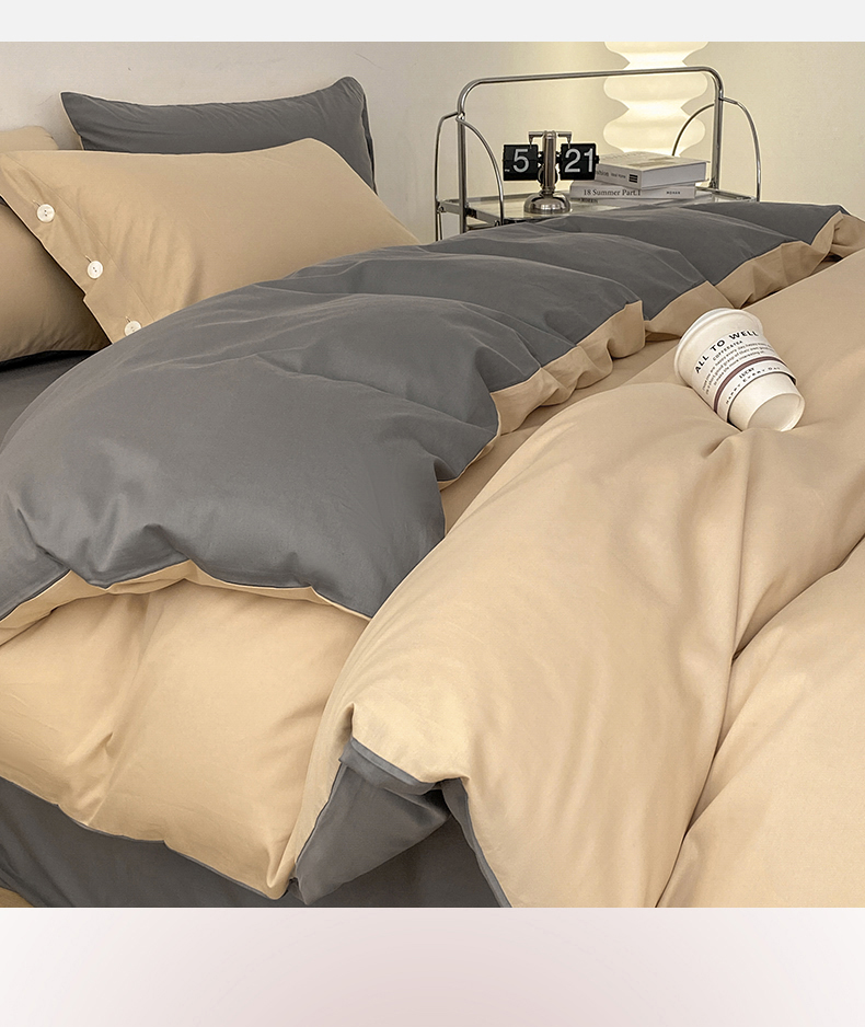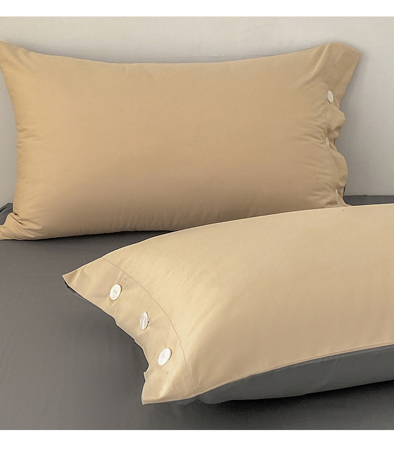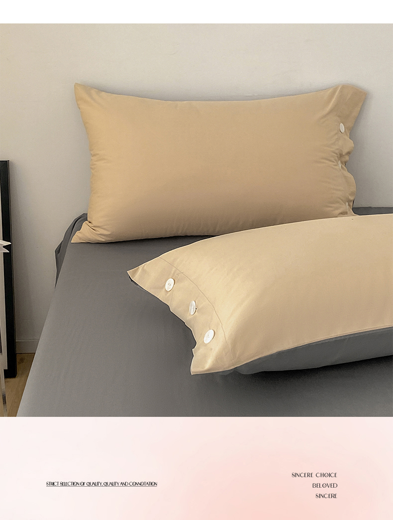 雅鹿 奶茶YL3110 200*230 全棉纯色时尚风纽扣款四件套