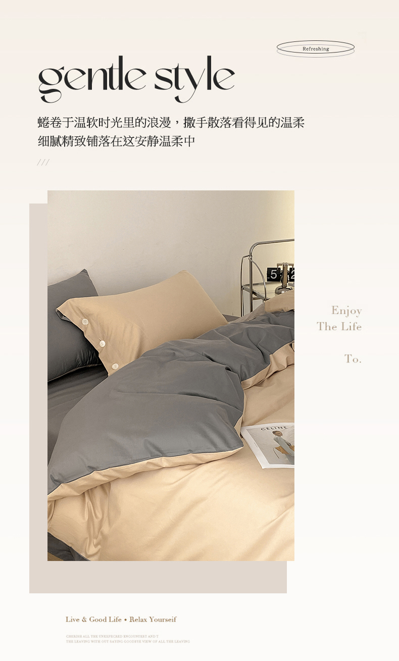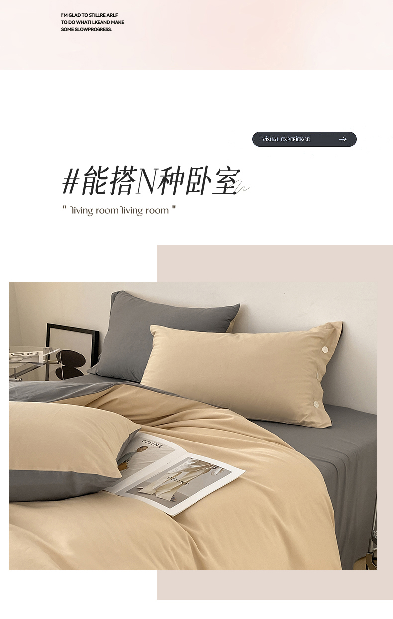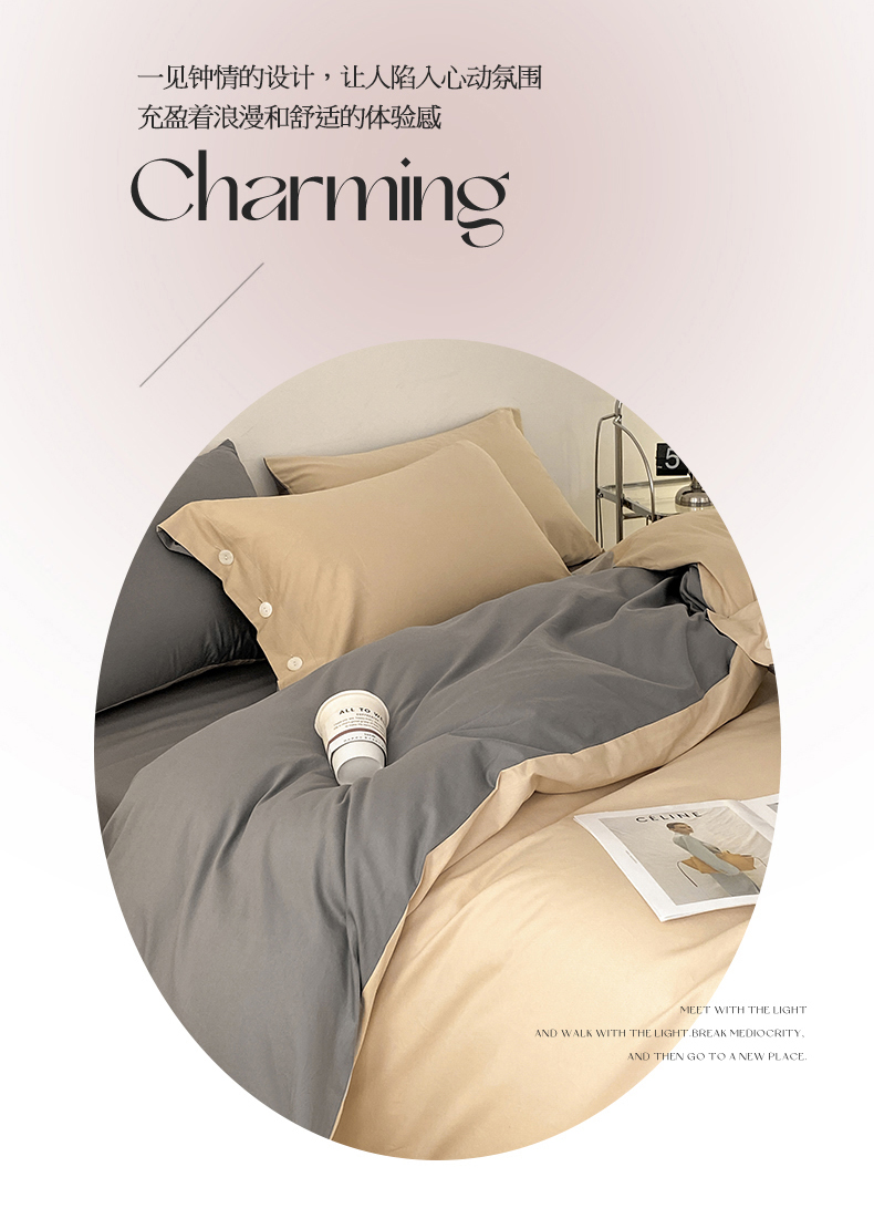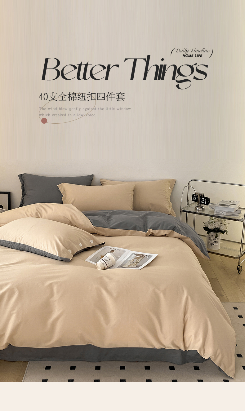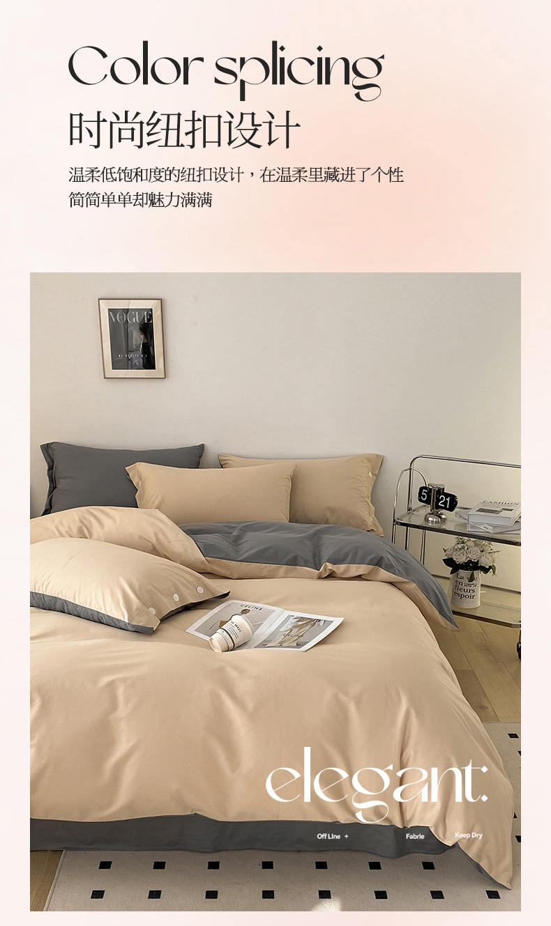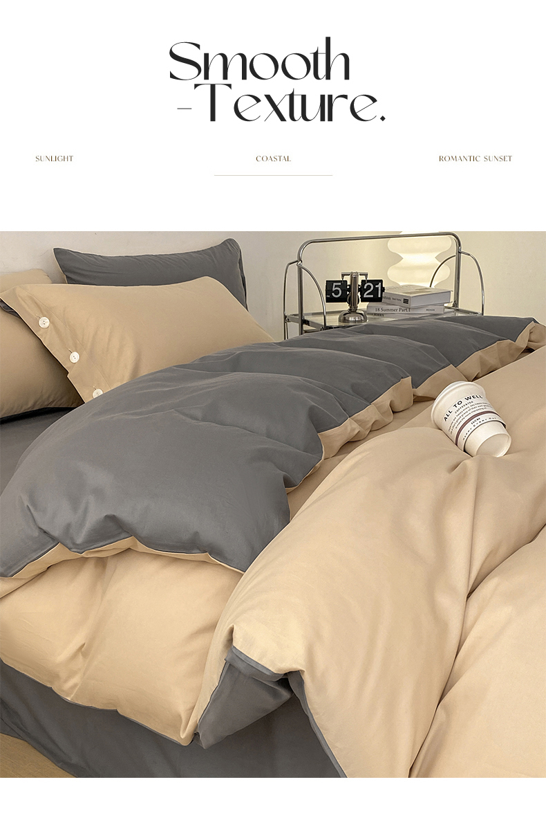 雅鹿 奶茶YL3110 200*230 全棉纯色时尚风纽扣款四件套