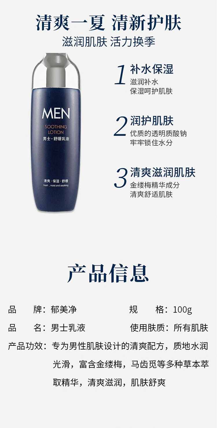 郁美净男士舒缓乳液100g(单位:瓶)
