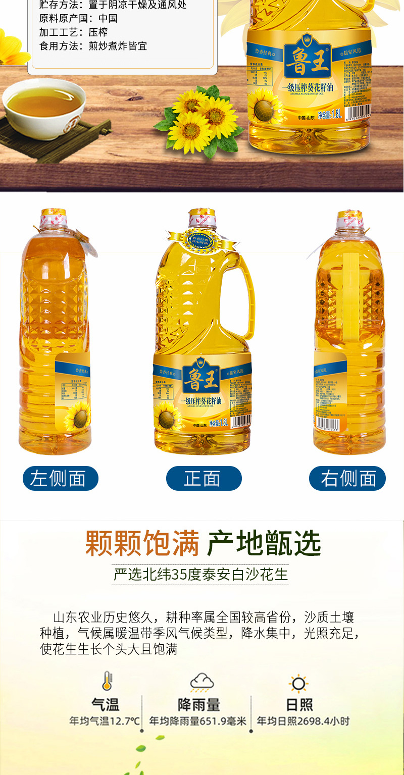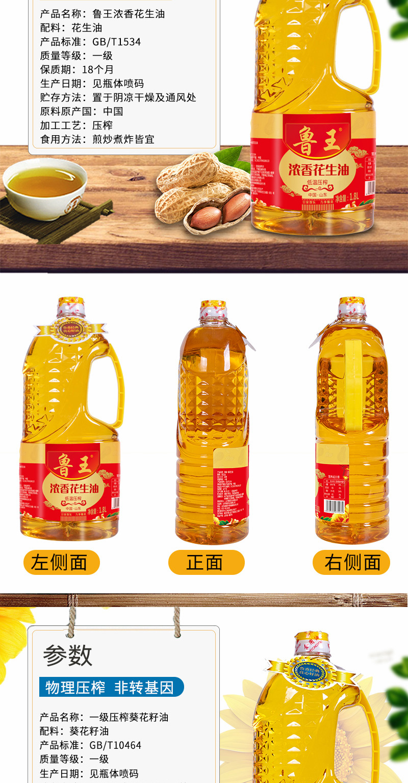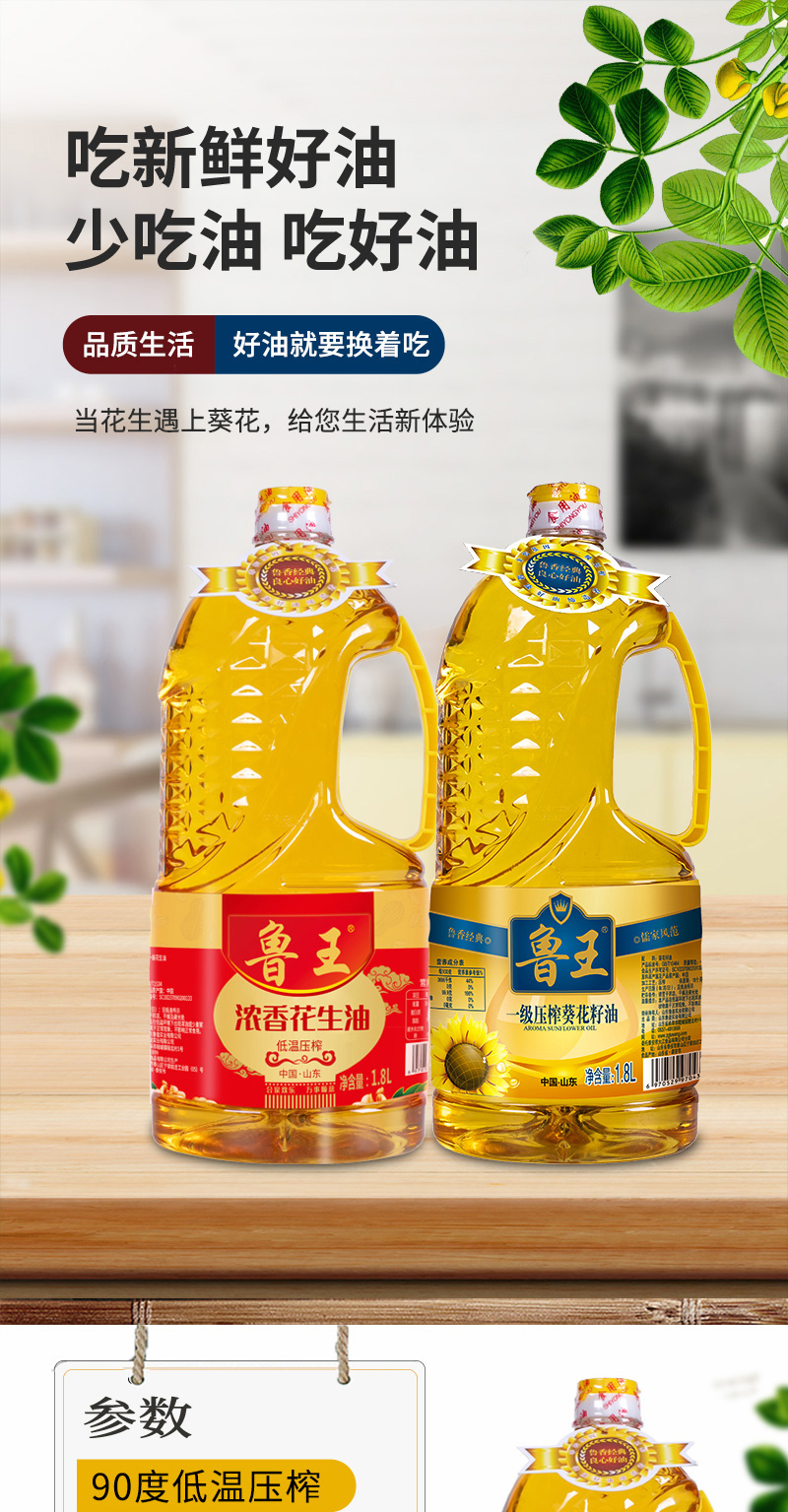 鲁王浓香花生油+压榨葵花籽油 拿铁色 1.8L*2