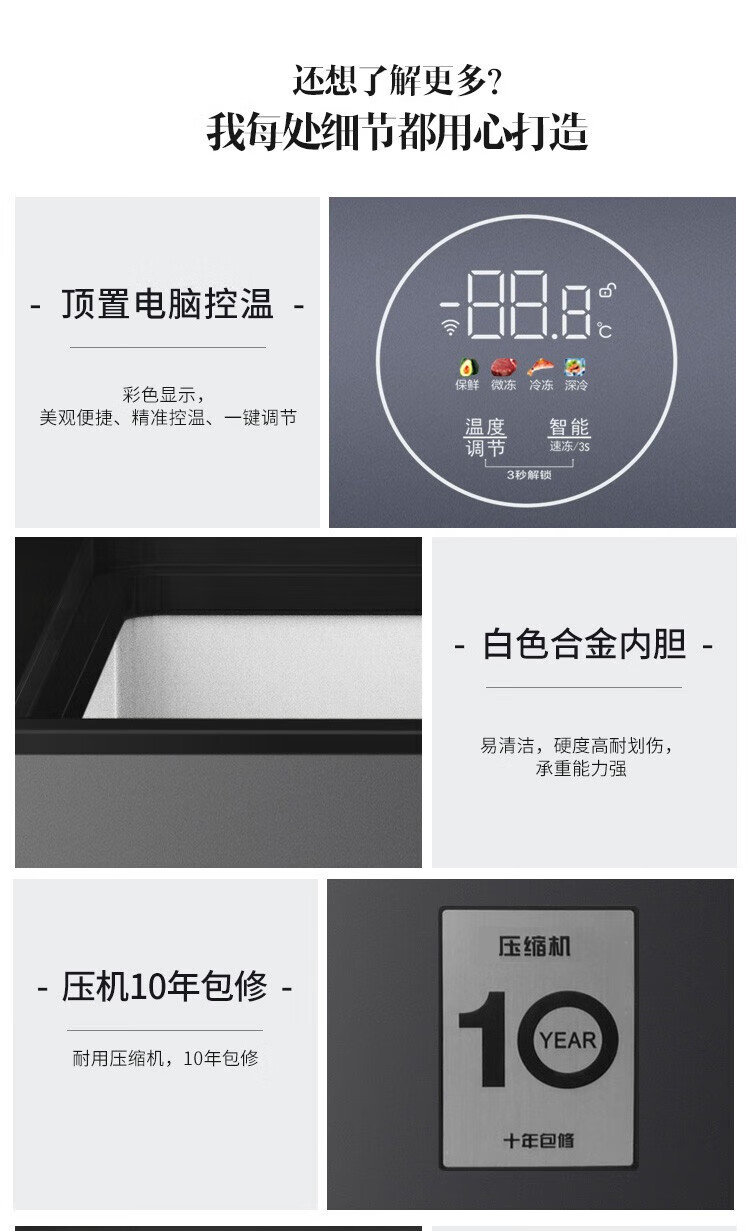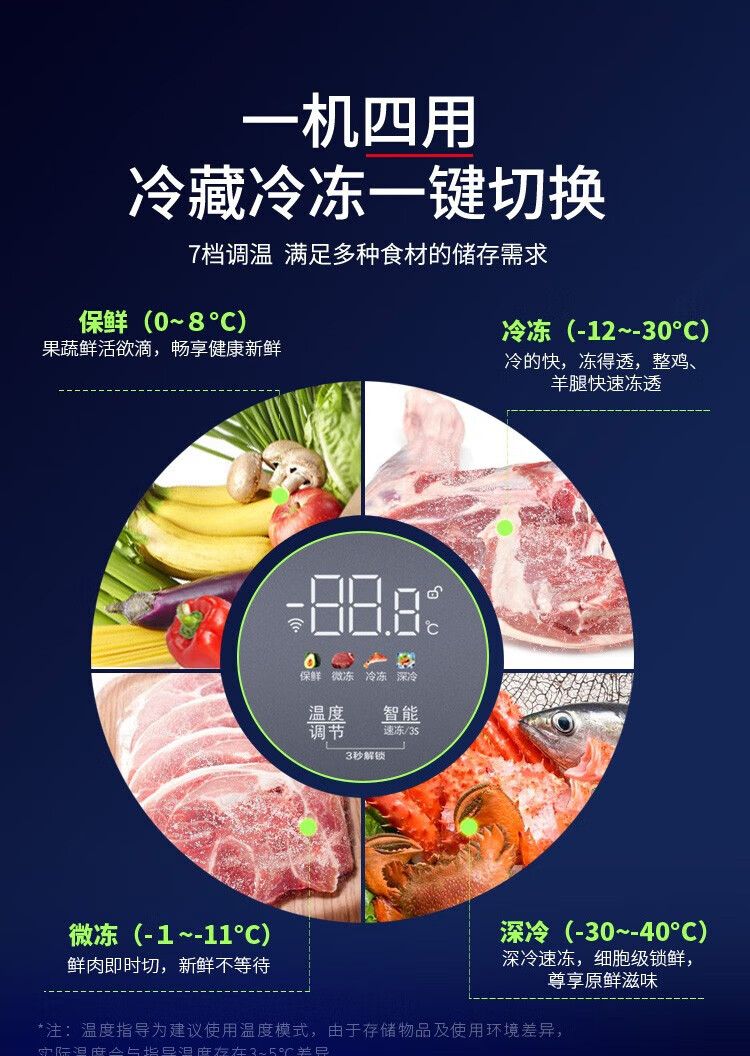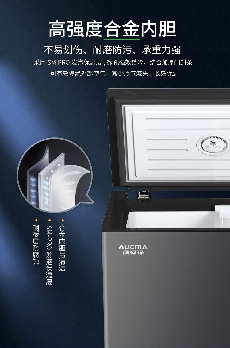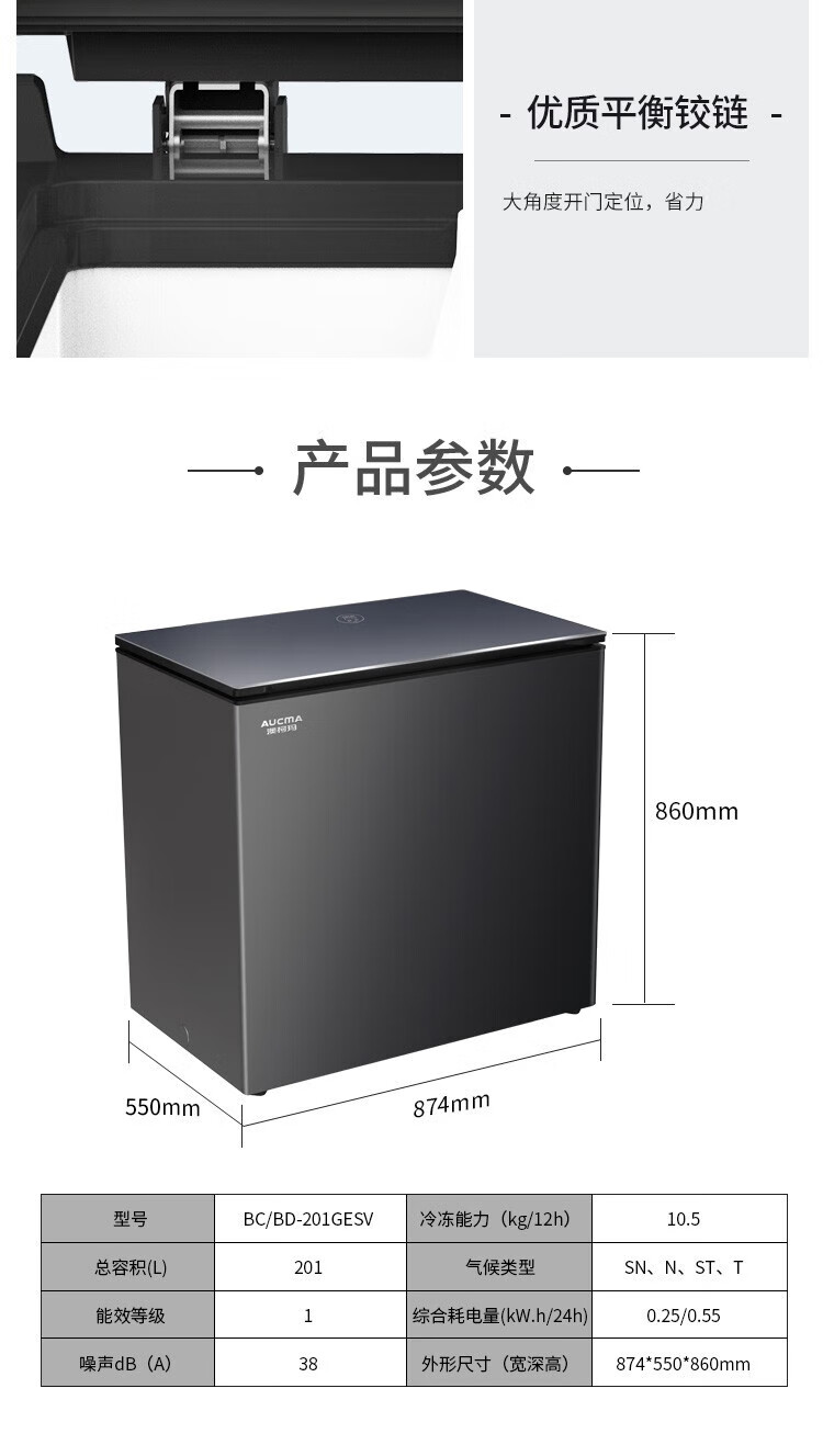 澳柯玛(AUCMA)冰柜家用201升小冷柜 冷藏冷冻单温转换零下40度商用深冷速冻保鲜(单位:台) 黑色