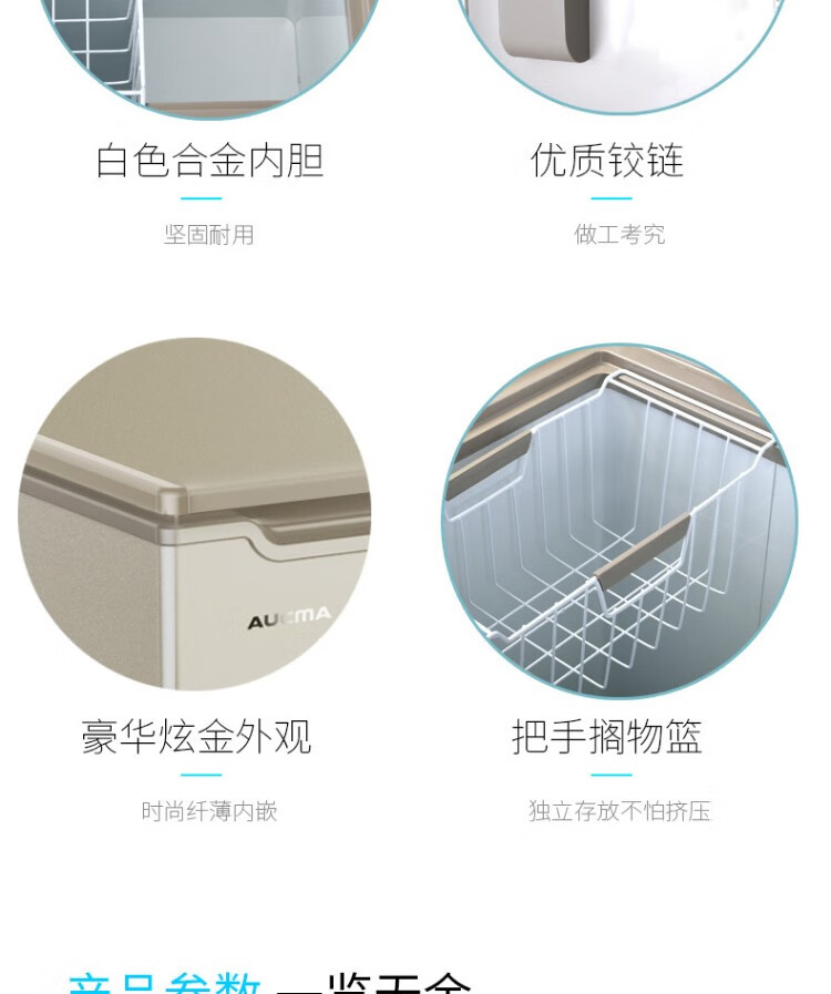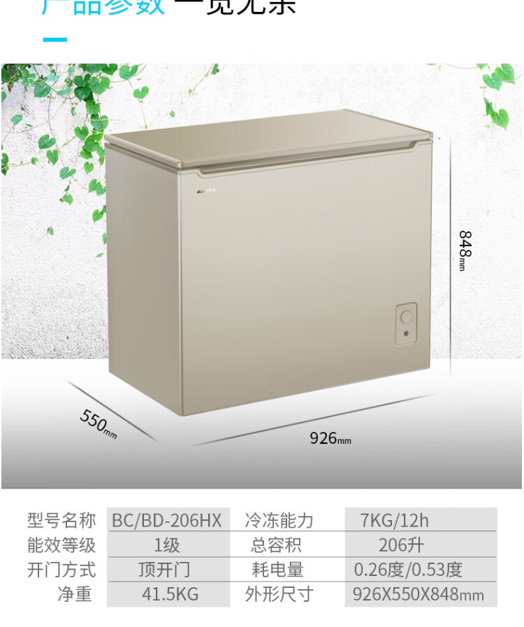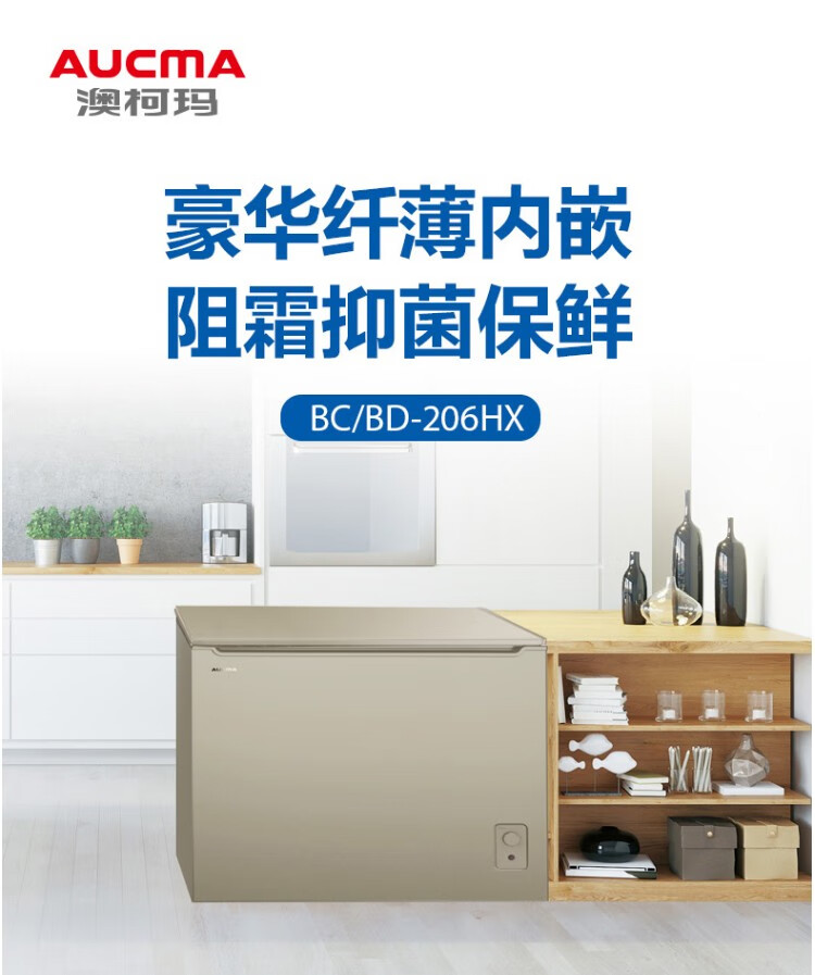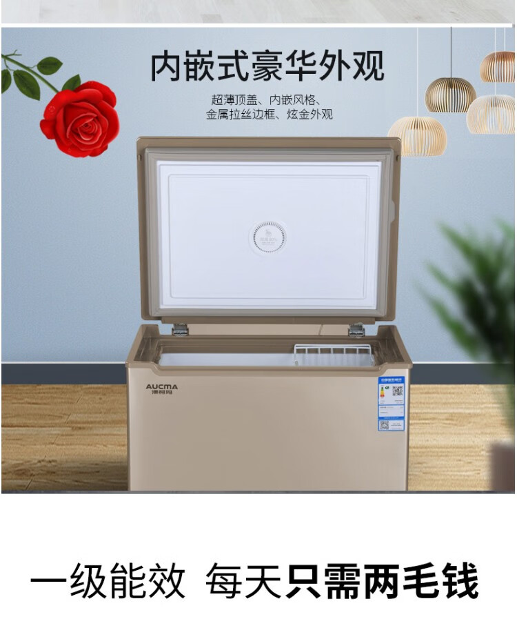 澳柯玛(AUCMA)冰柜206升小冷柜 冷藏冷冻单温转换雪柜 BC/BD-206HX(单位:台) 金色