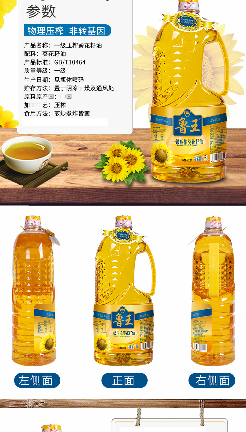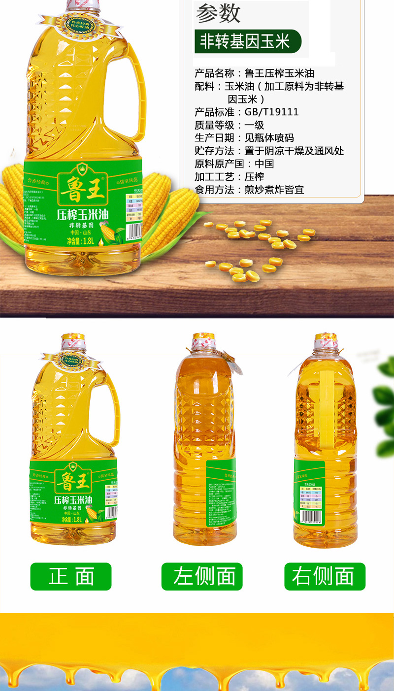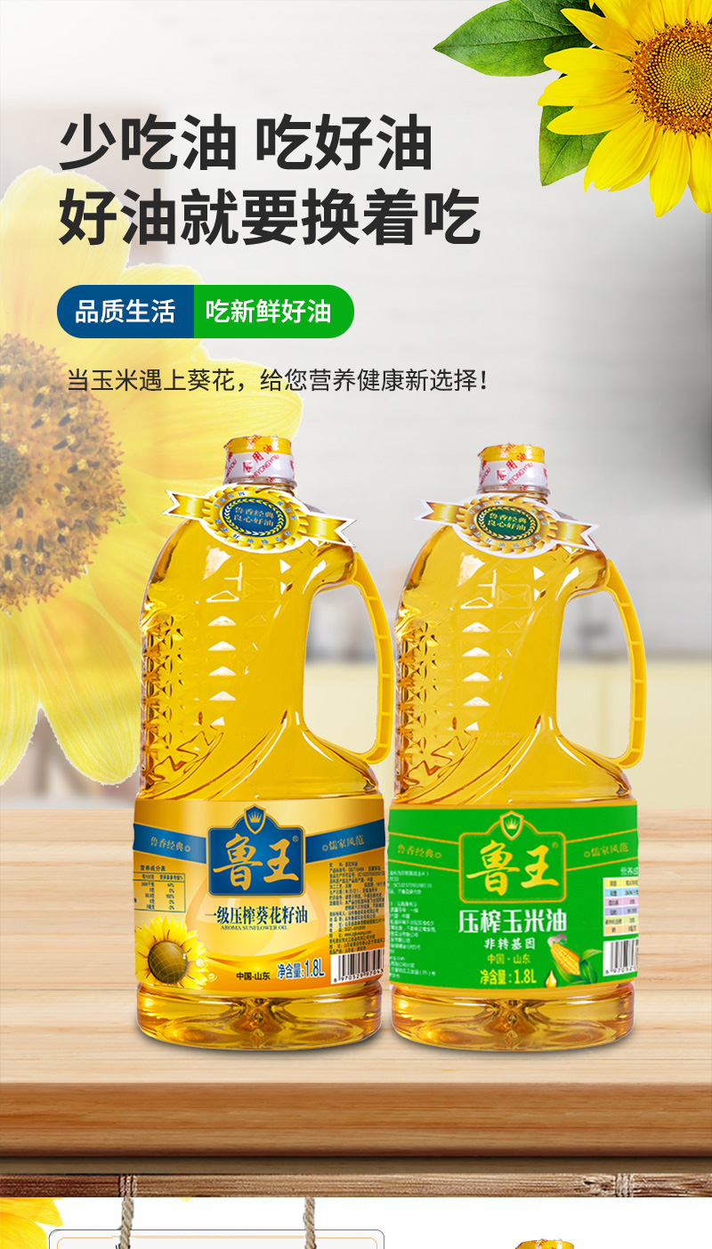鲁王绿色健康玉米油+压榨葵花籽油 水蓝色 1.8L*2