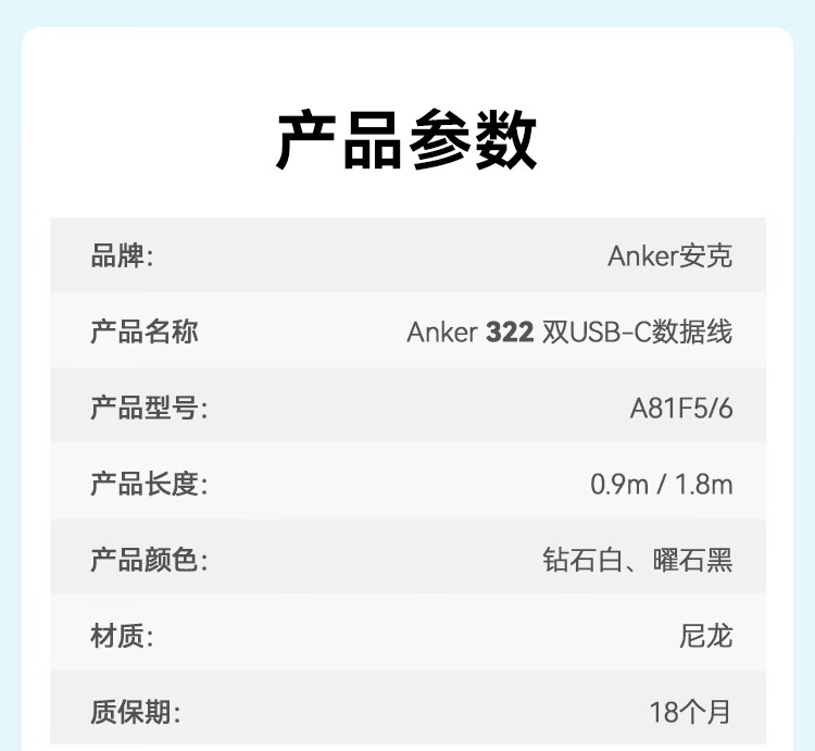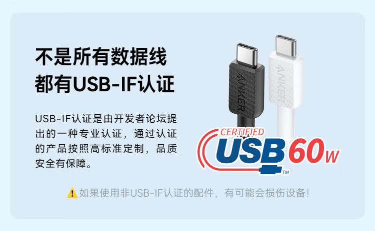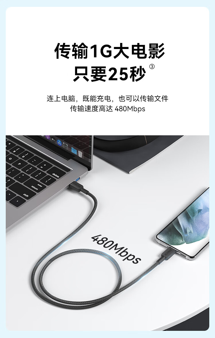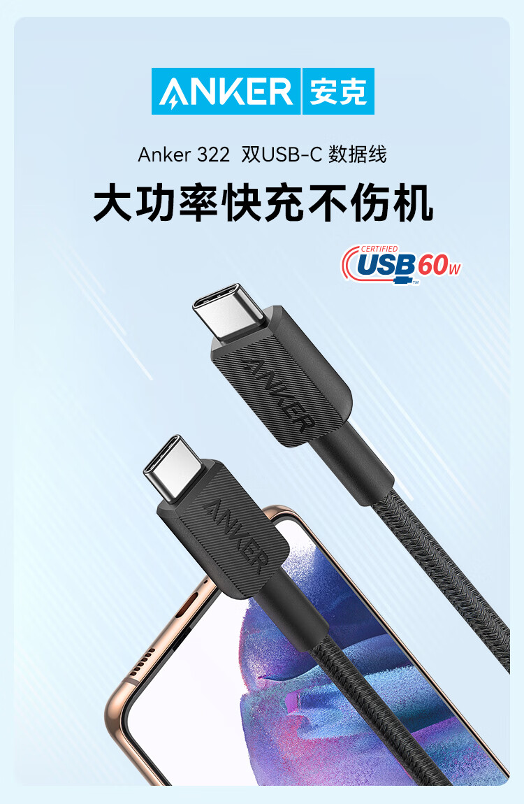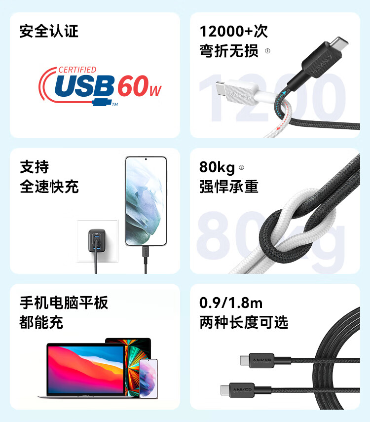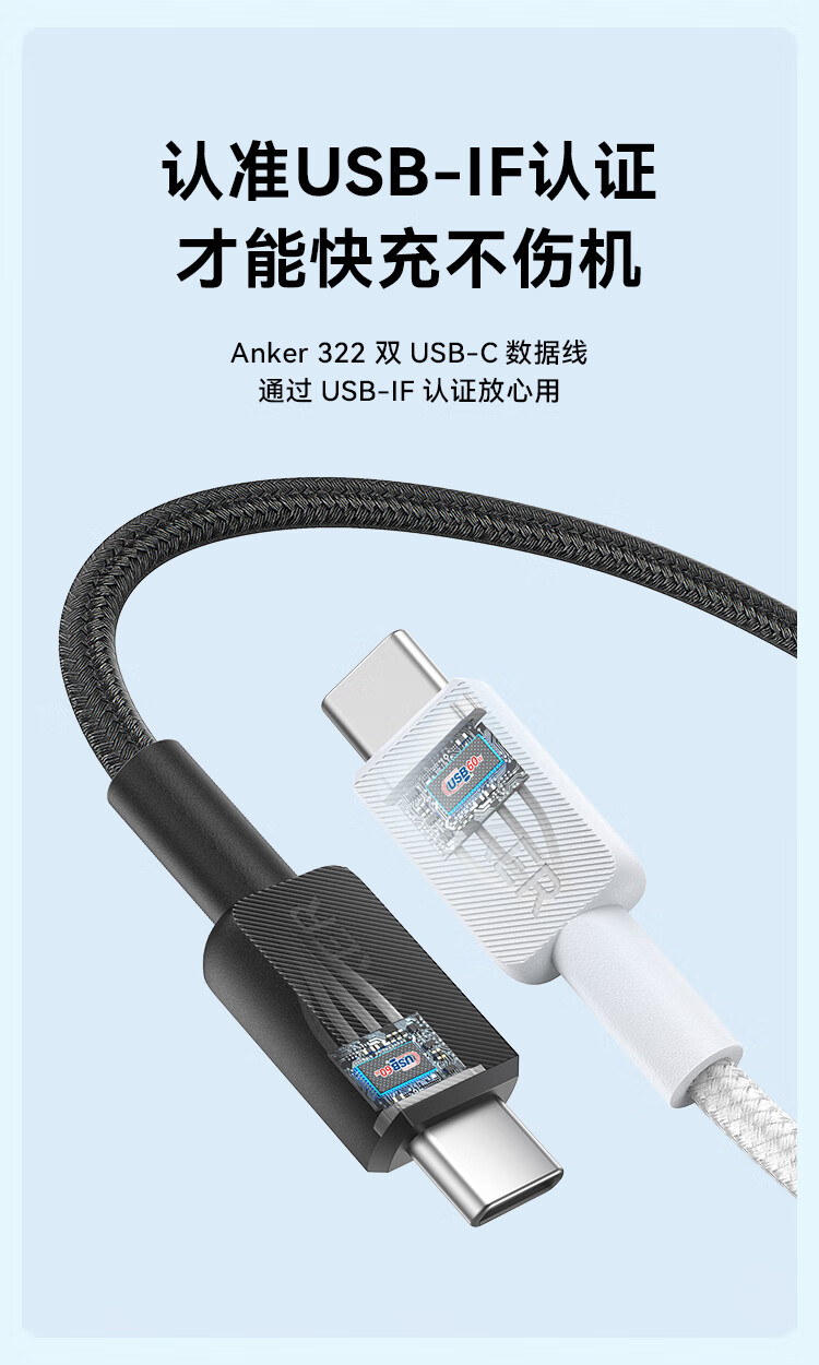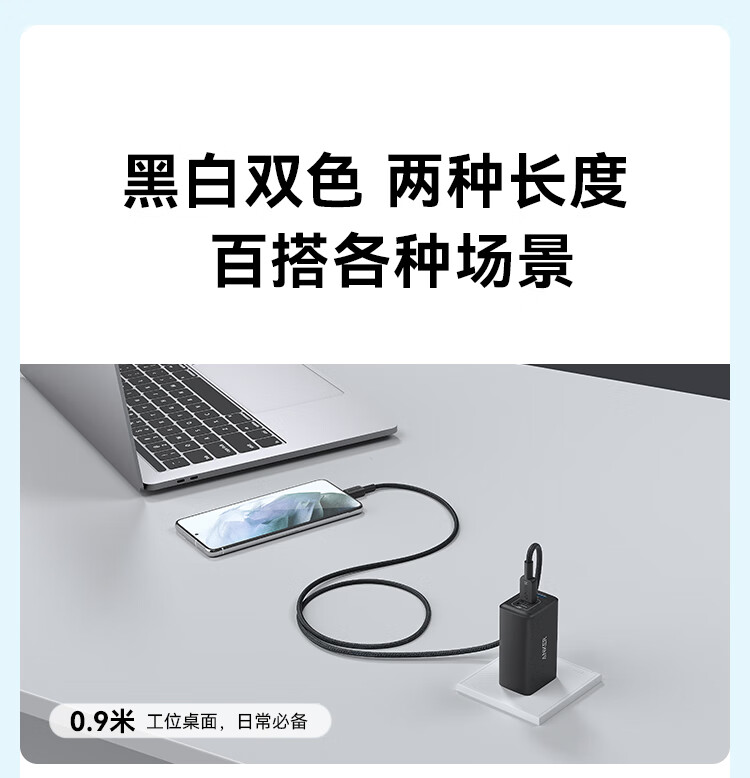 安克 60W安卓type-c快充数据线 USB-IF认证尼龙编织数据线 — A81F5P11 条 黑色