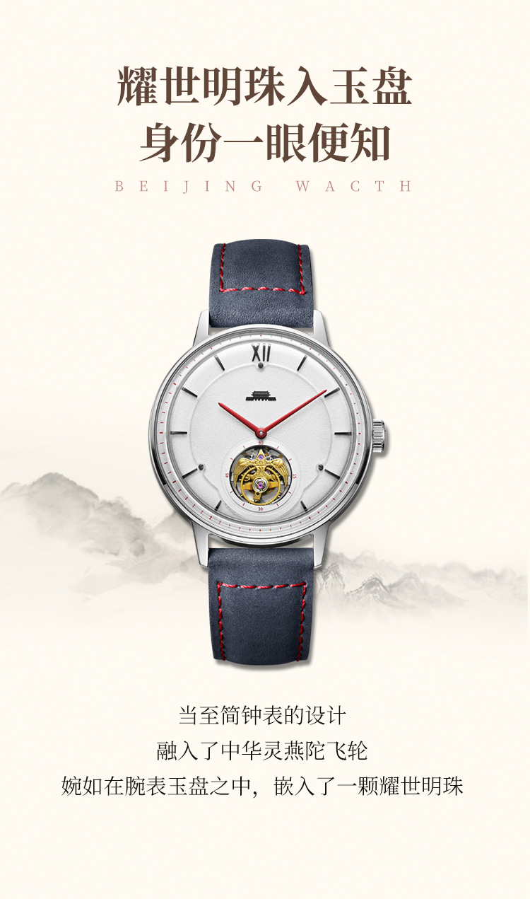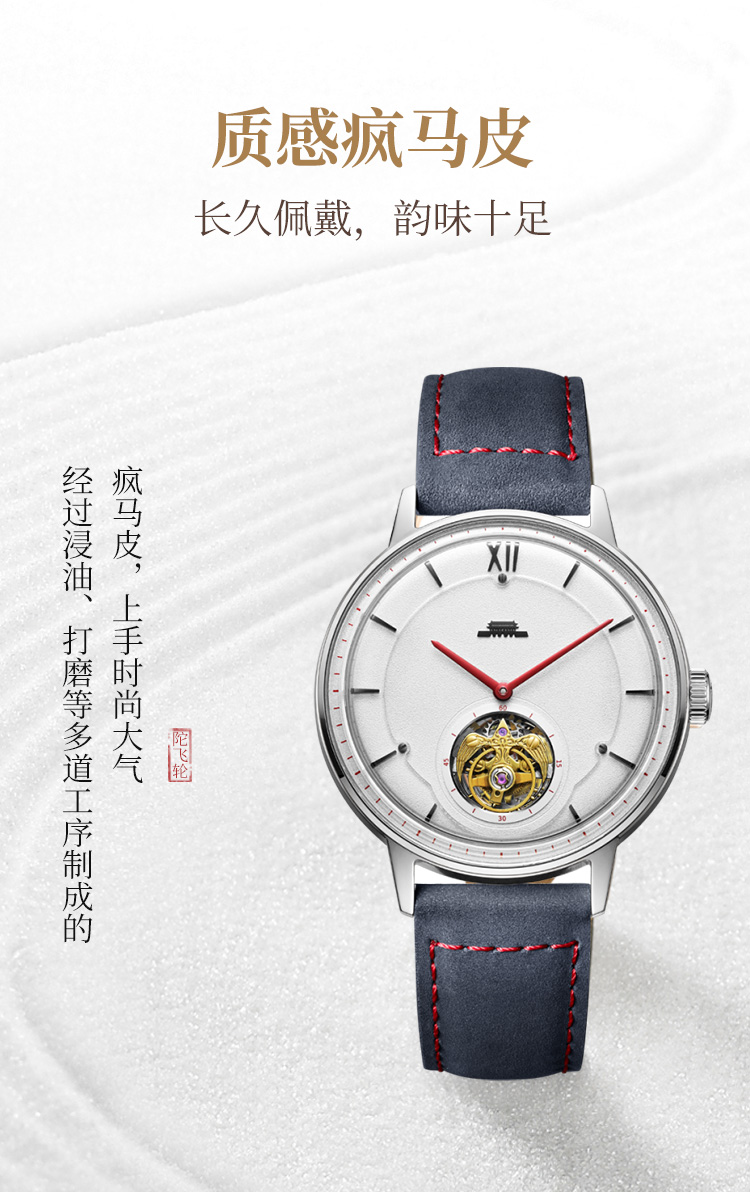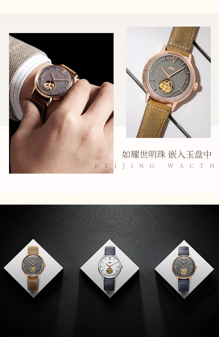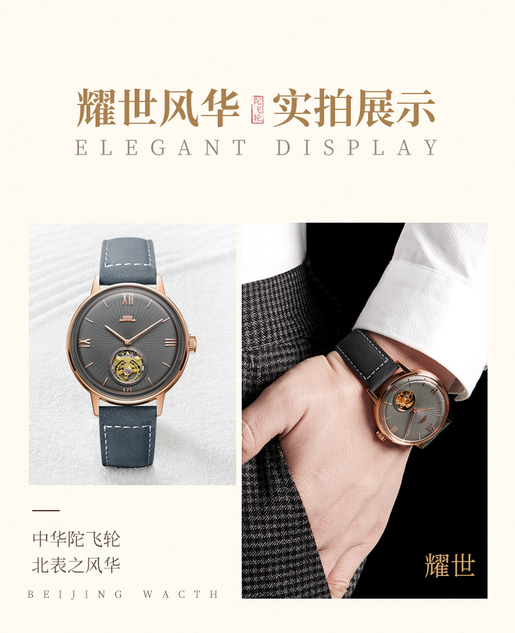 北京手表耀世陀飞轮手动机械手表男限量防水高端国表名表礼物男士腕表 灰带墨盘-BG080005/只 灰色