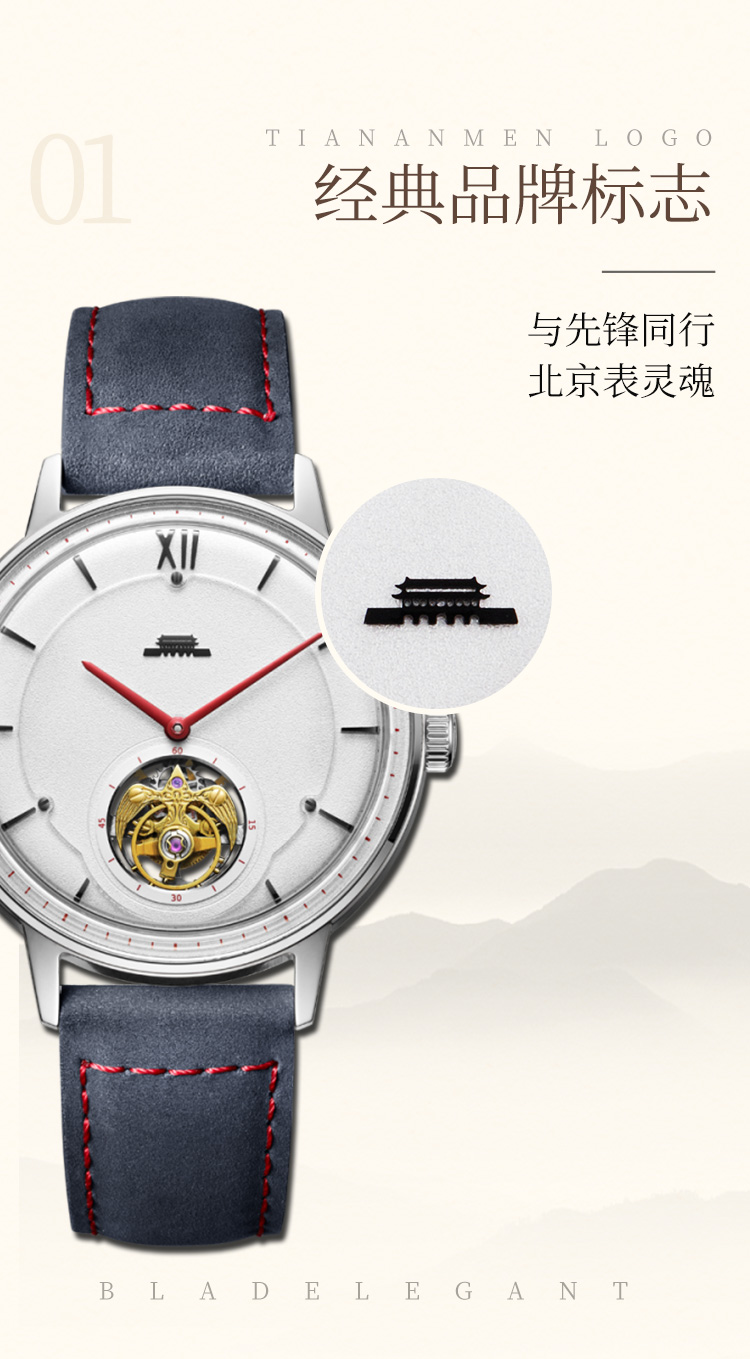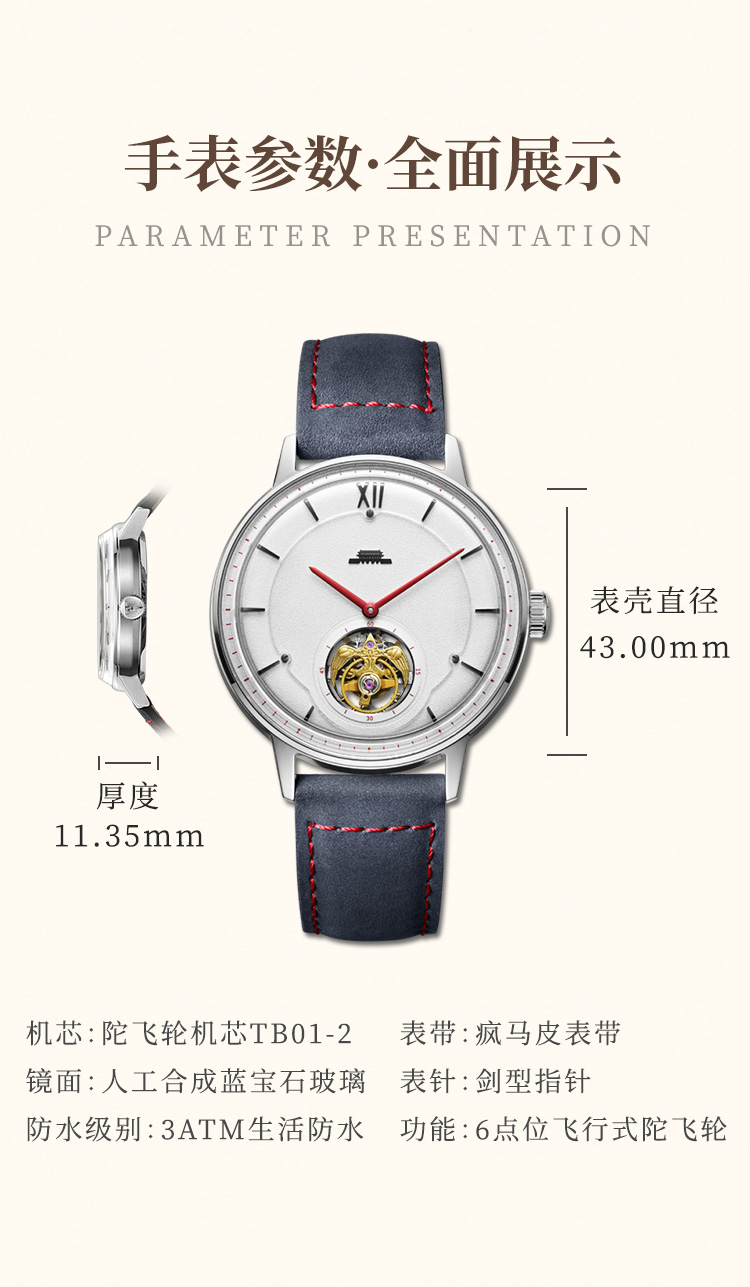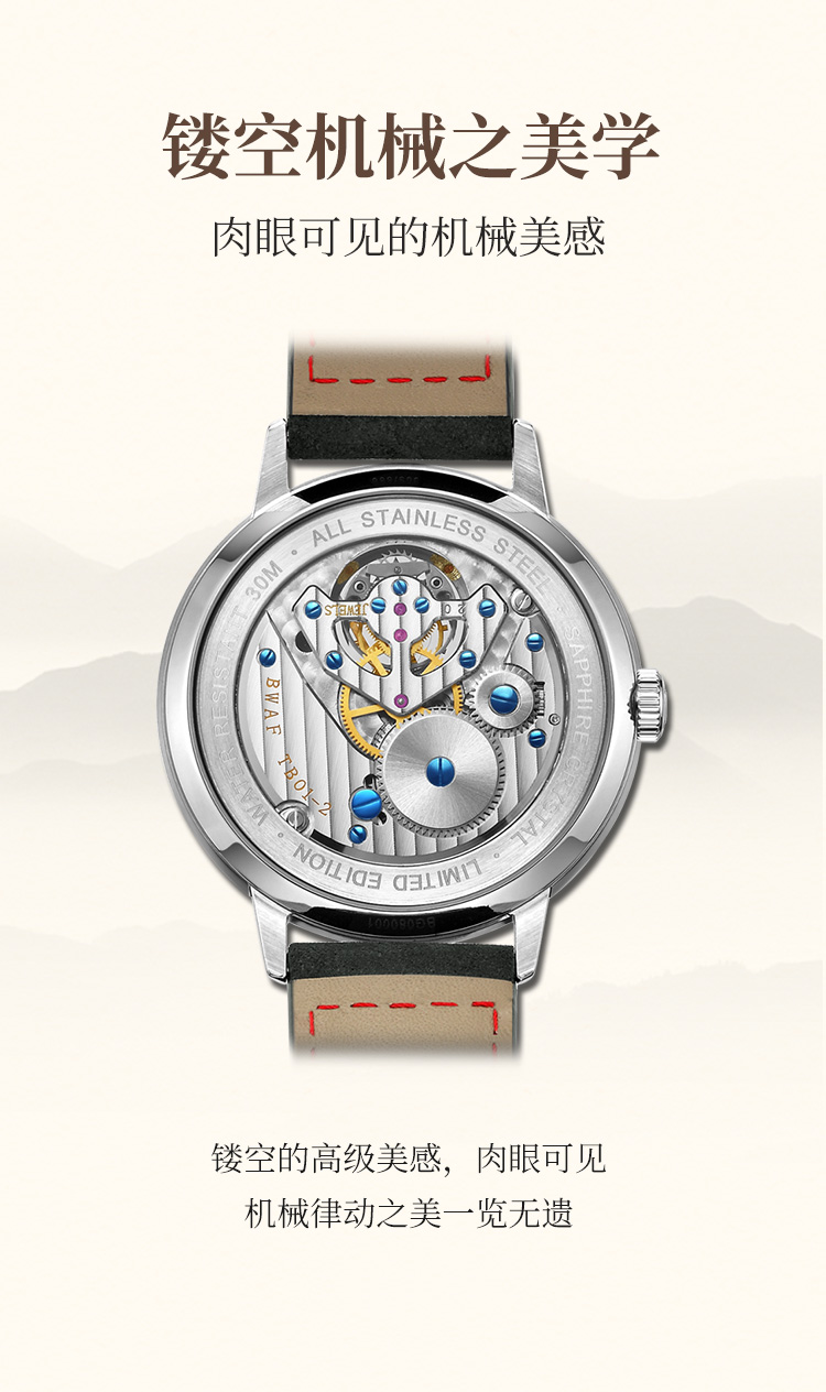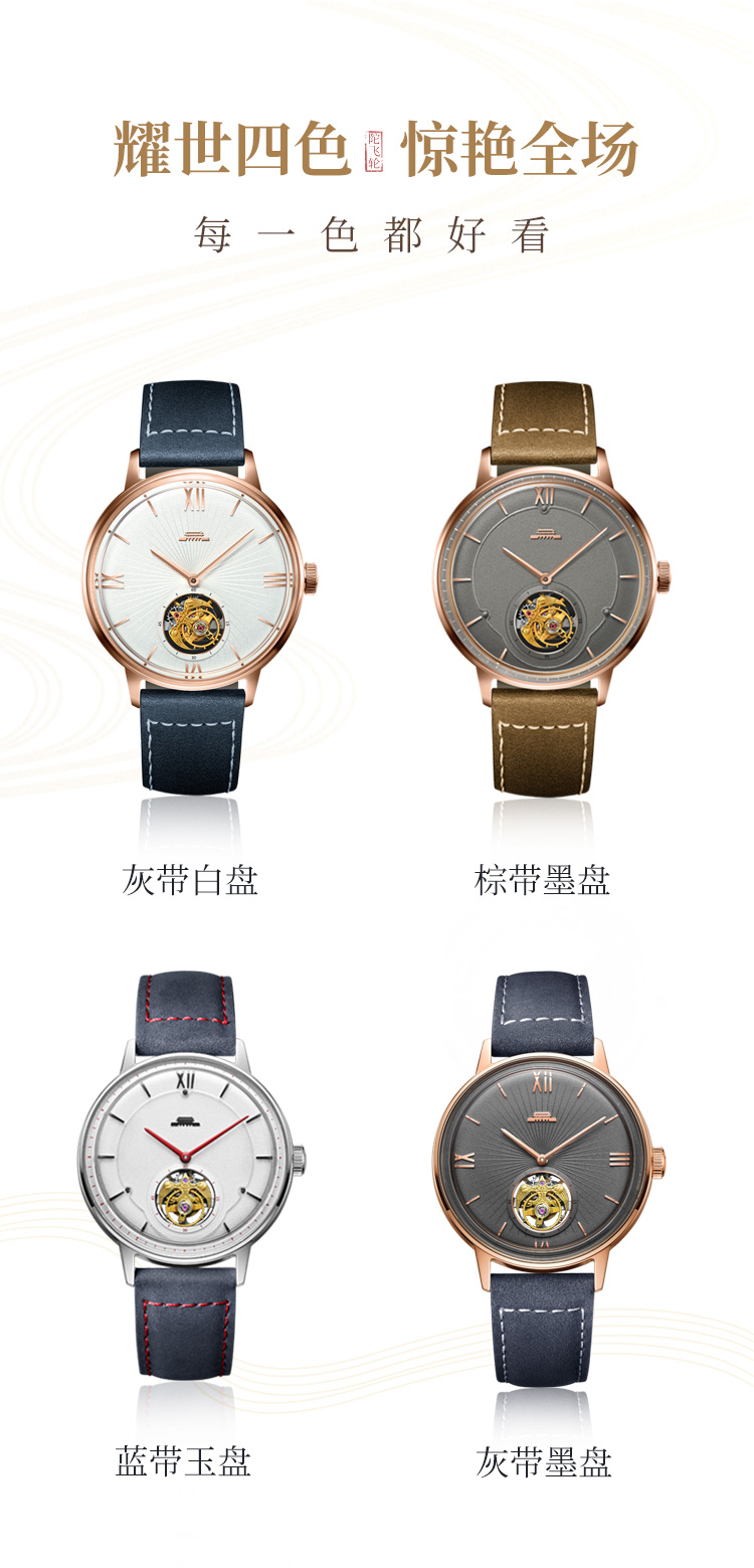 北京手表耀世陀飞轮手动机械手表男限量防水高端国表名表礼物男士腕表 灰带墨盘-BG080005/只 灰色