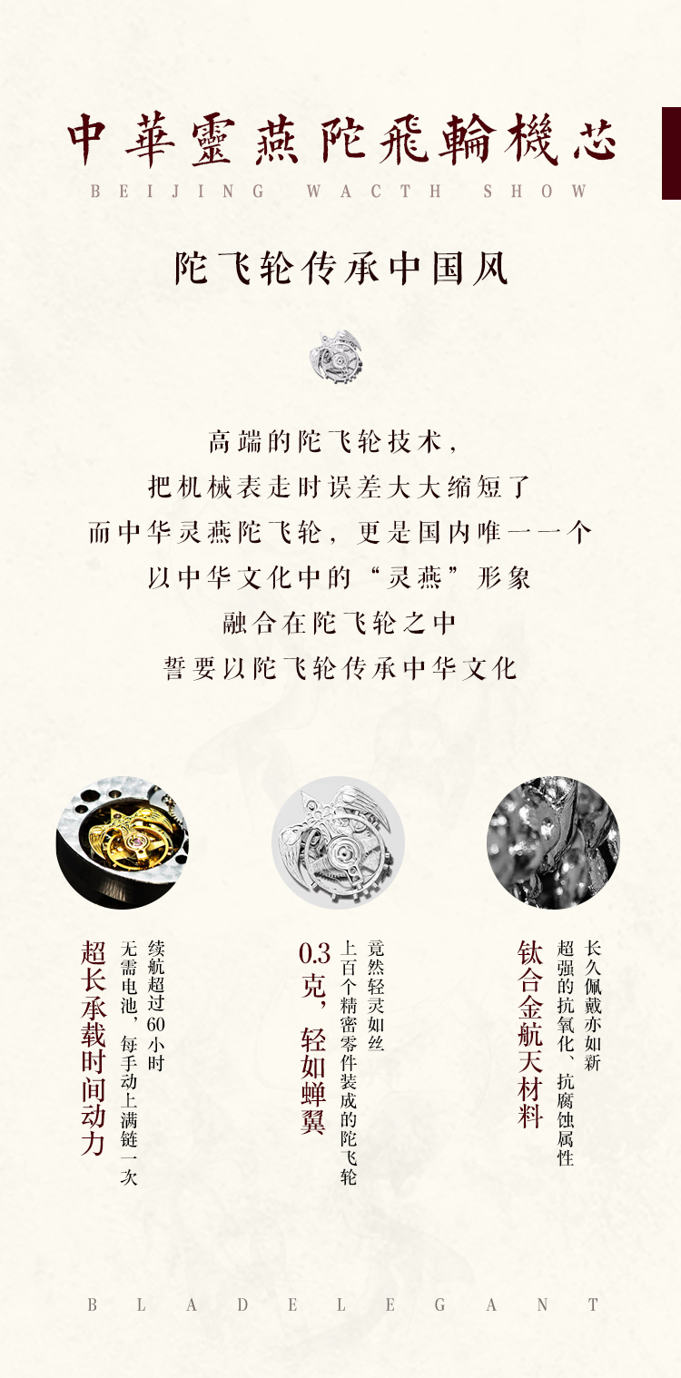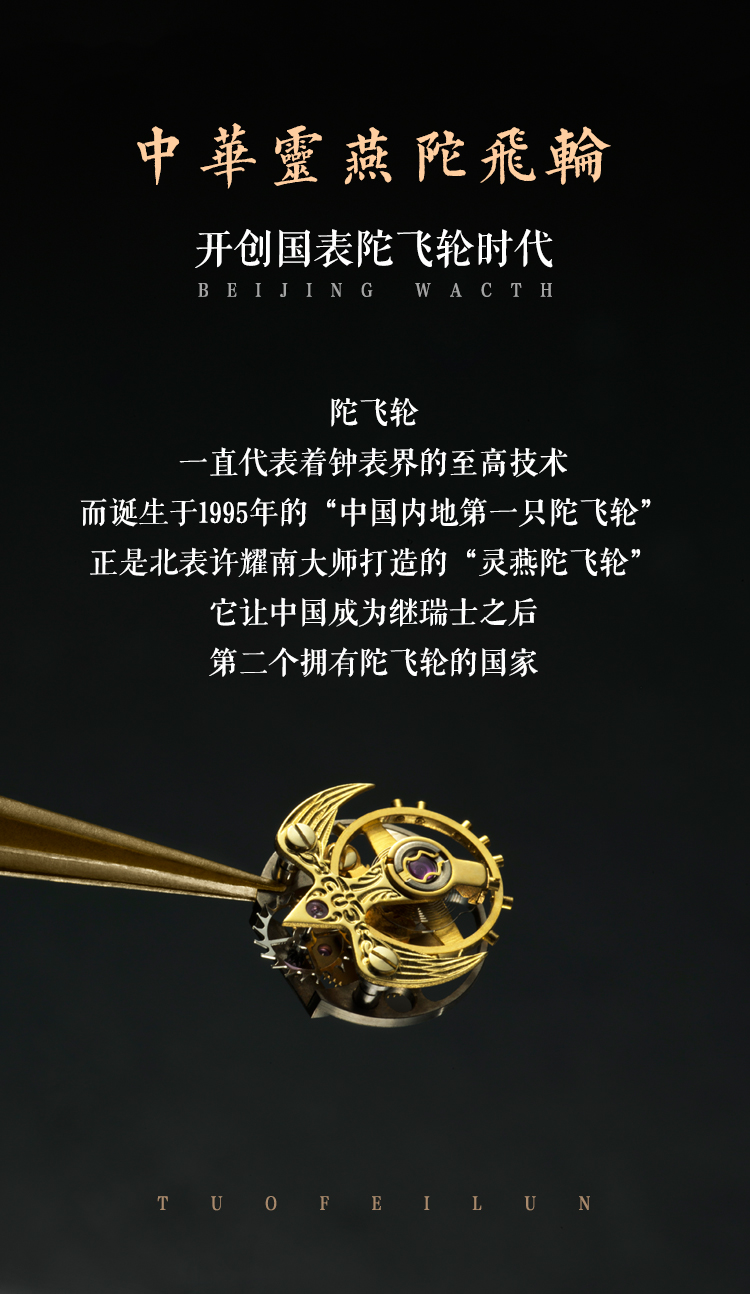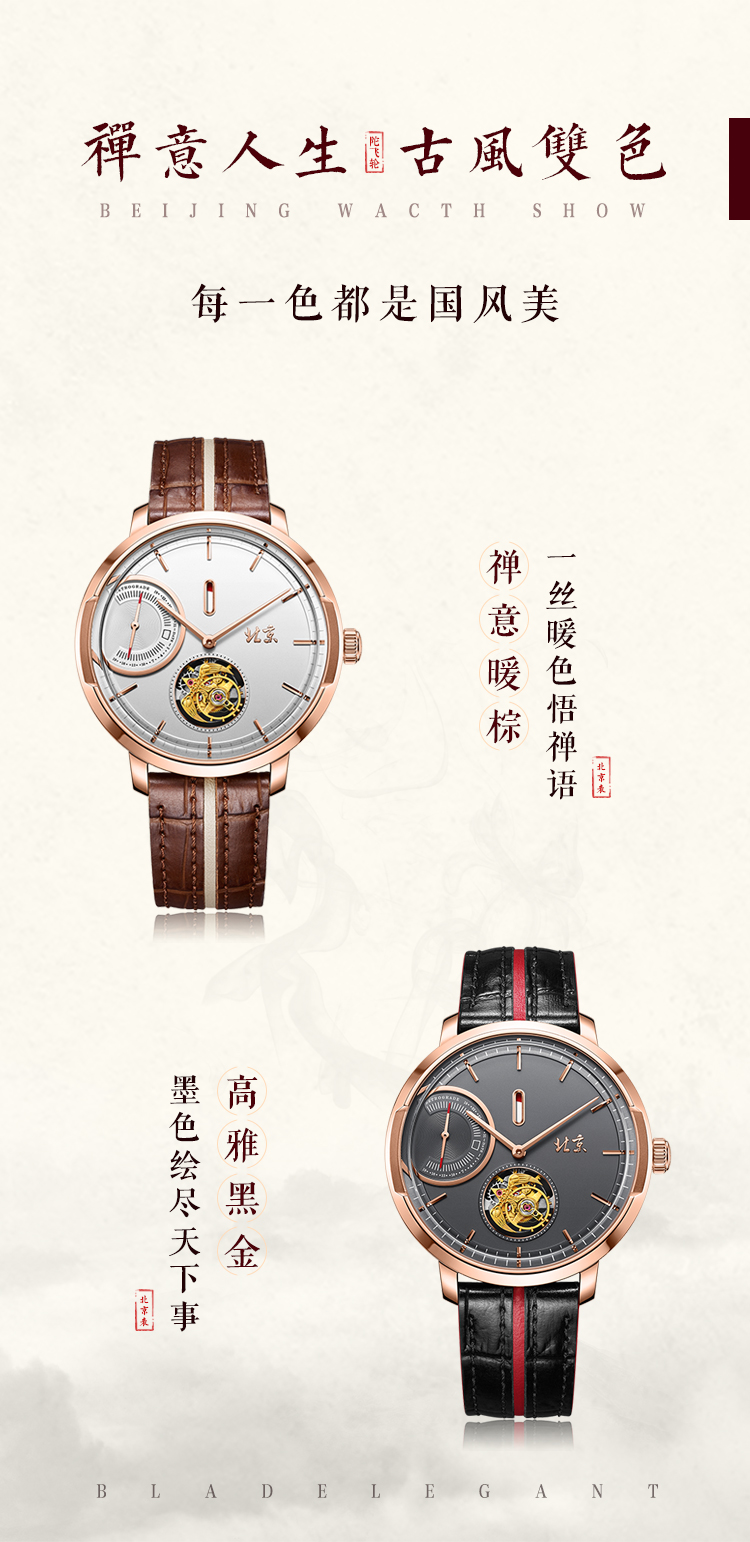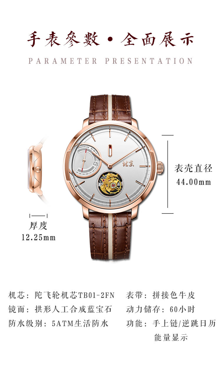 北京手表一炷香陀飞轮手动机械表男限量防水高端国表名表礼物男士腕表 高雅黑金-BG081008/只 黑色