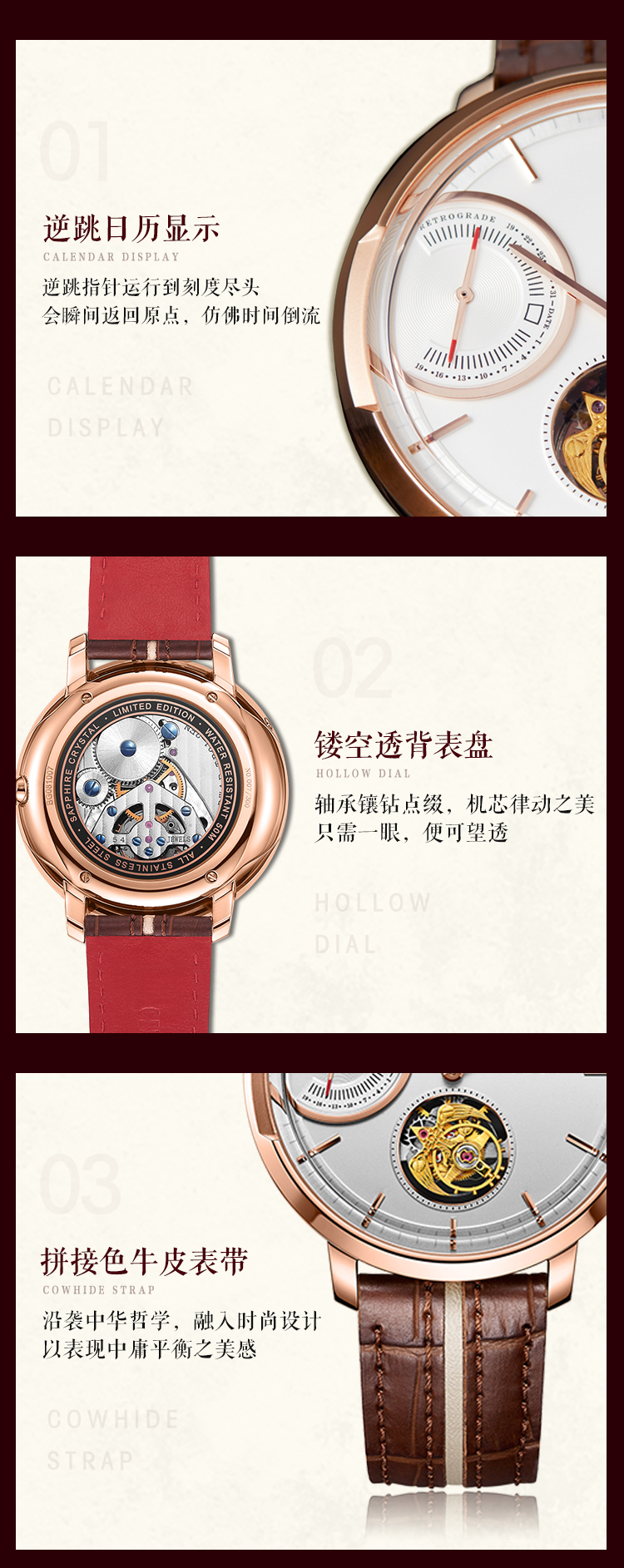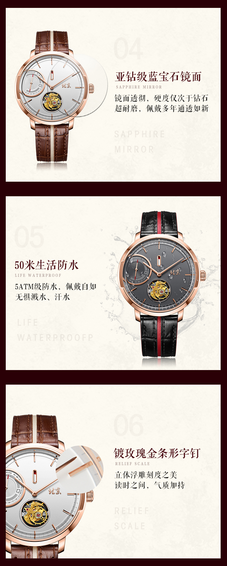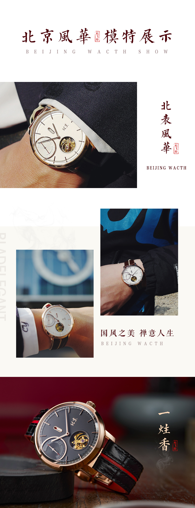 北京手表一炷香陀飞轮手动机械表男限量防水高端国表名表礼物男士腕表 高雅黑金-BG081008/只 黑色