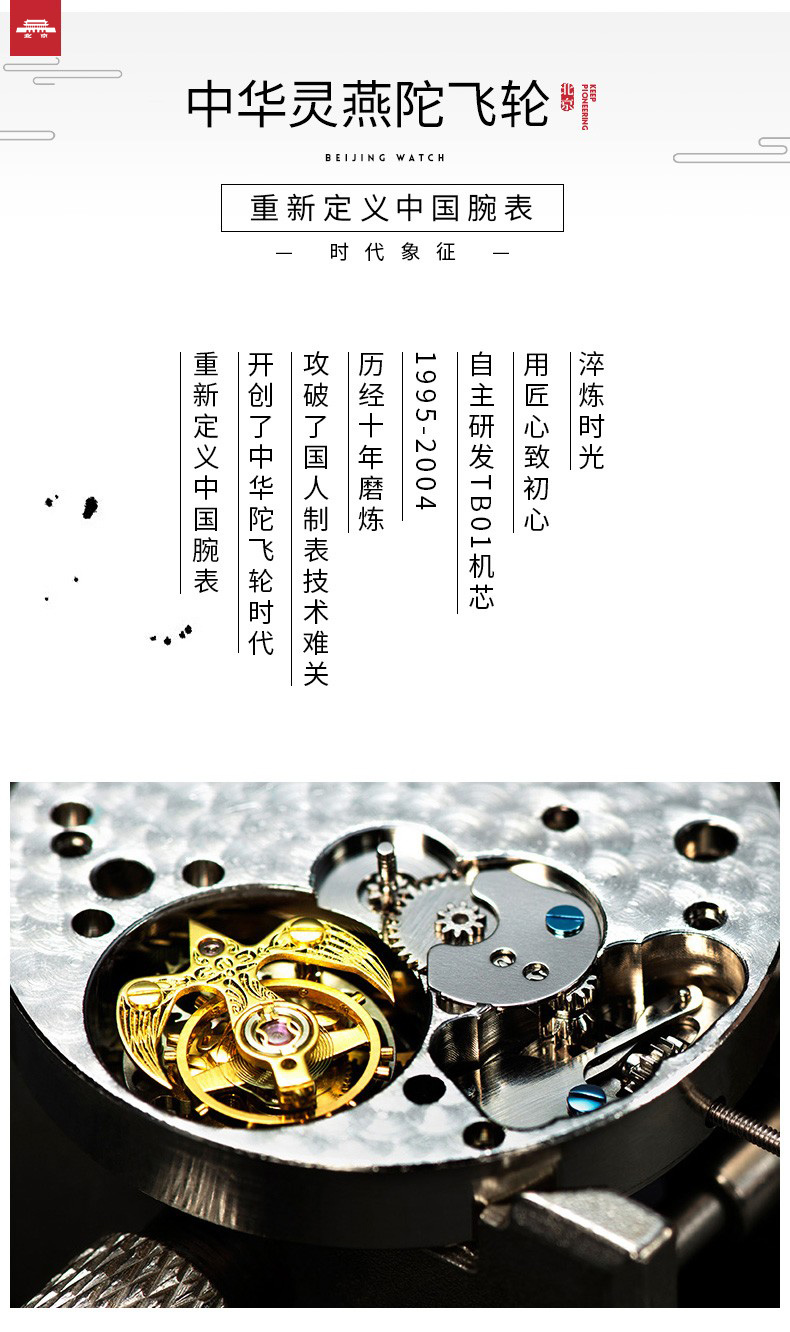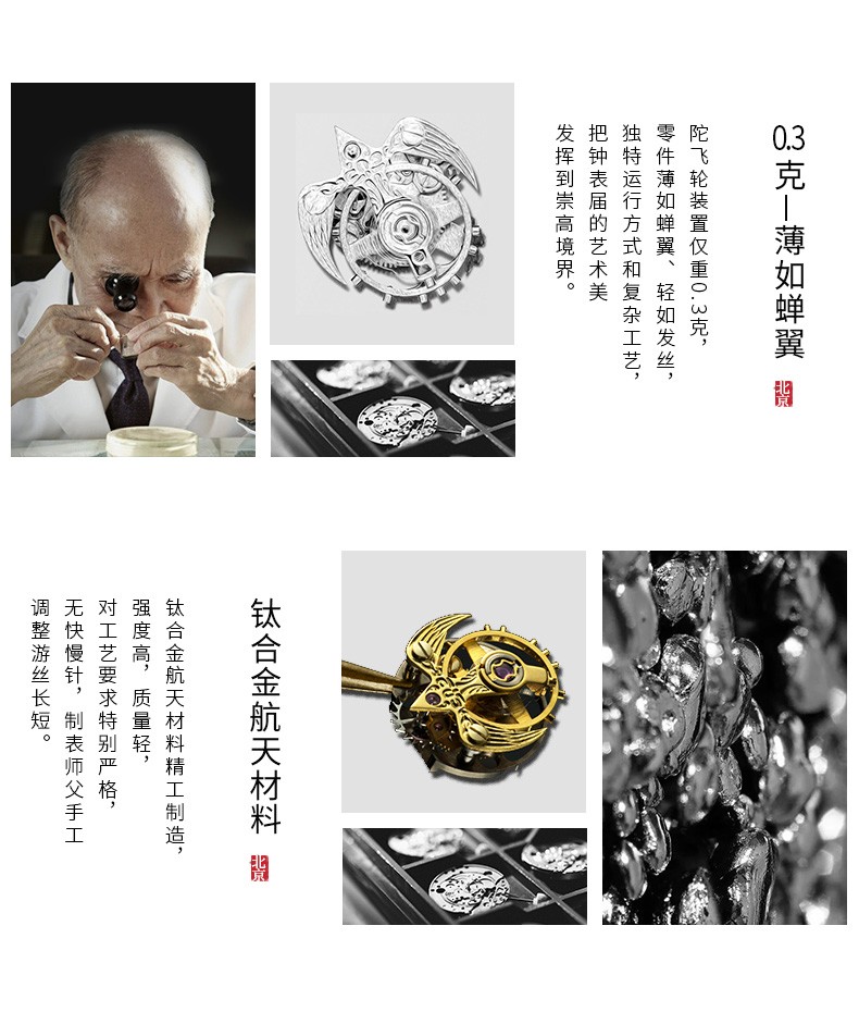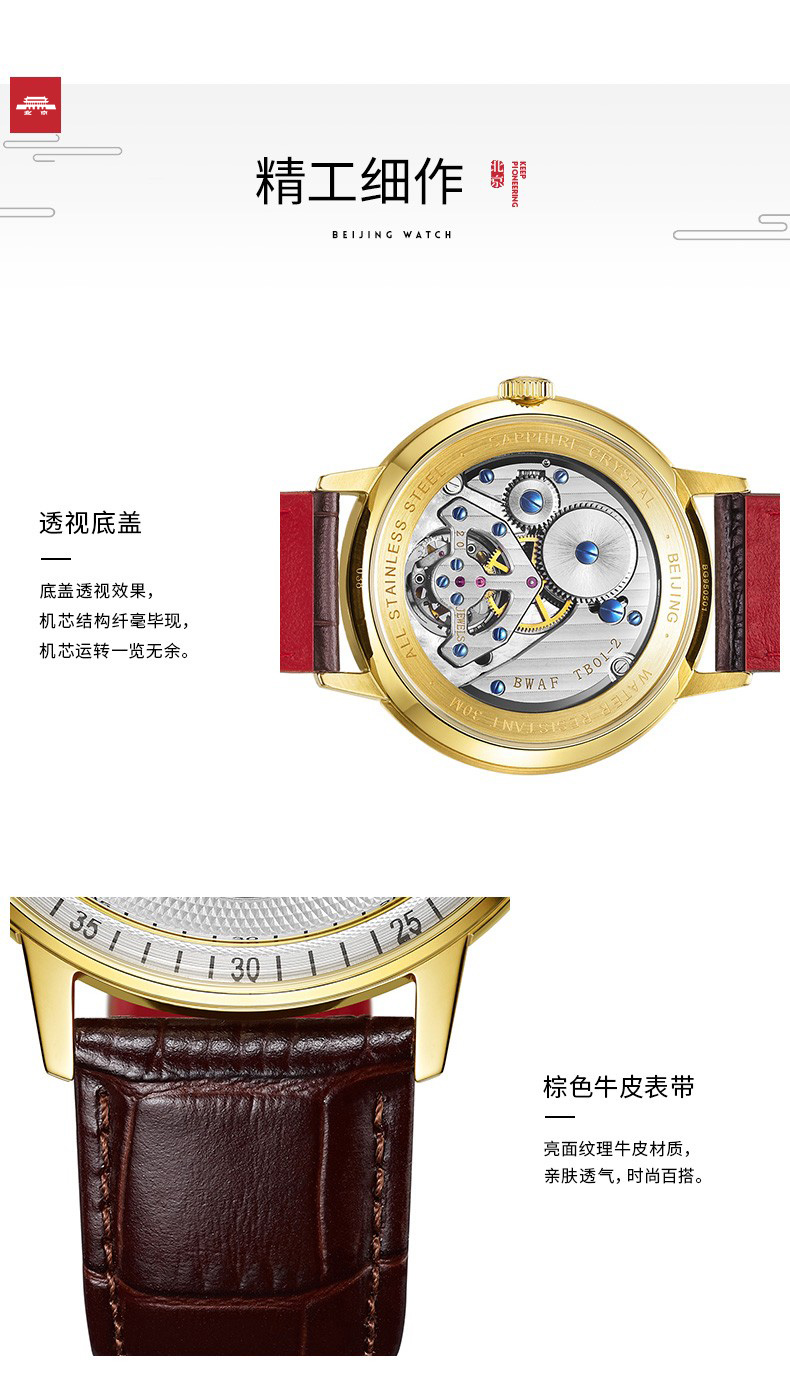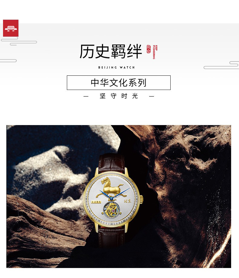 北京手表马踏飞燕陀飞轮手动机械手表男防水高端国表名表礼物男士腕表 踏马飞燕-BG950501/只 金色
