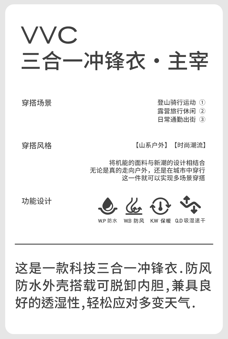 VVC三合一冲锋衣·主宰VTA3S888(单位:件) 流云白/幻影黑 S