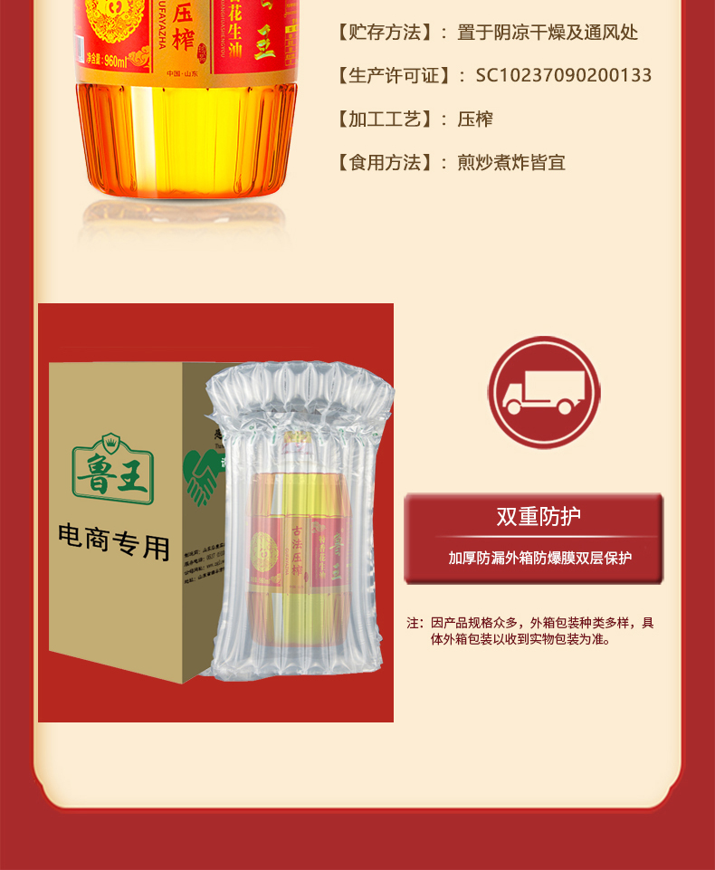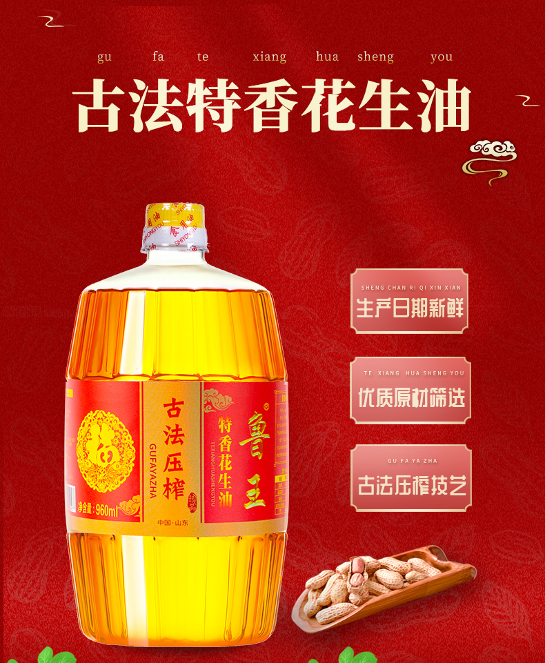 鲁王古法压榨特香花生油 枫叶色 960ml