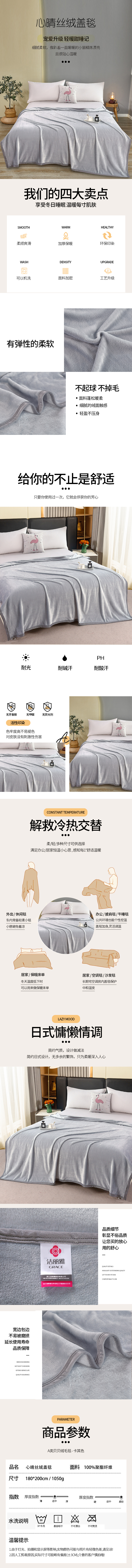 丽雅(Grace) 心晴丝绒盖毯JLY-TD893(单位:床) 浅灰色