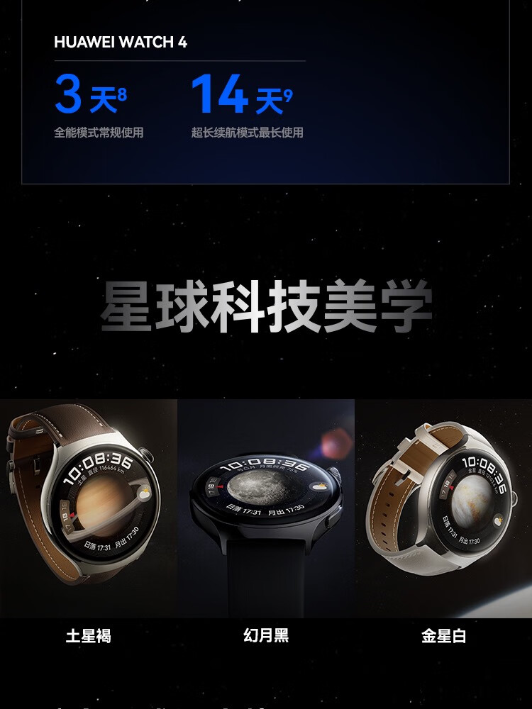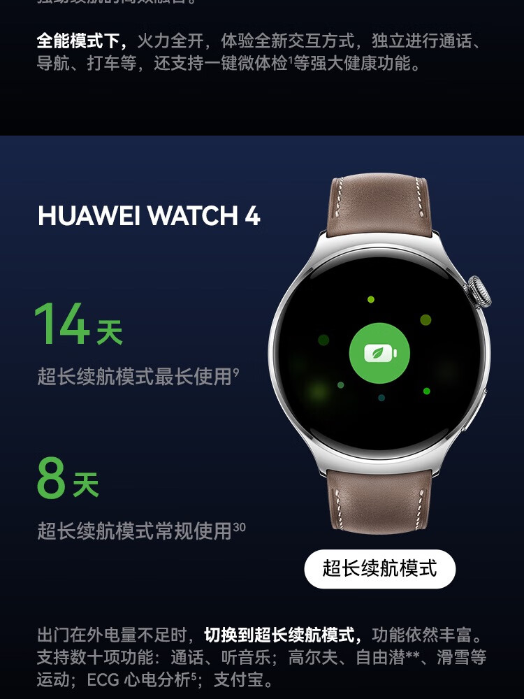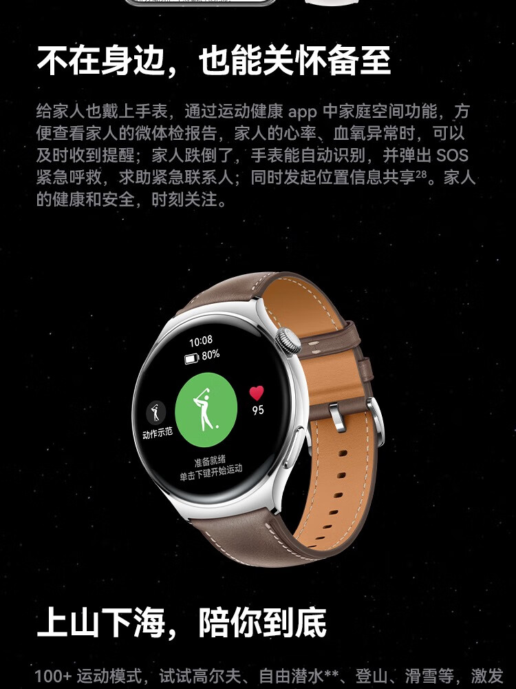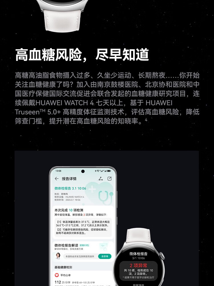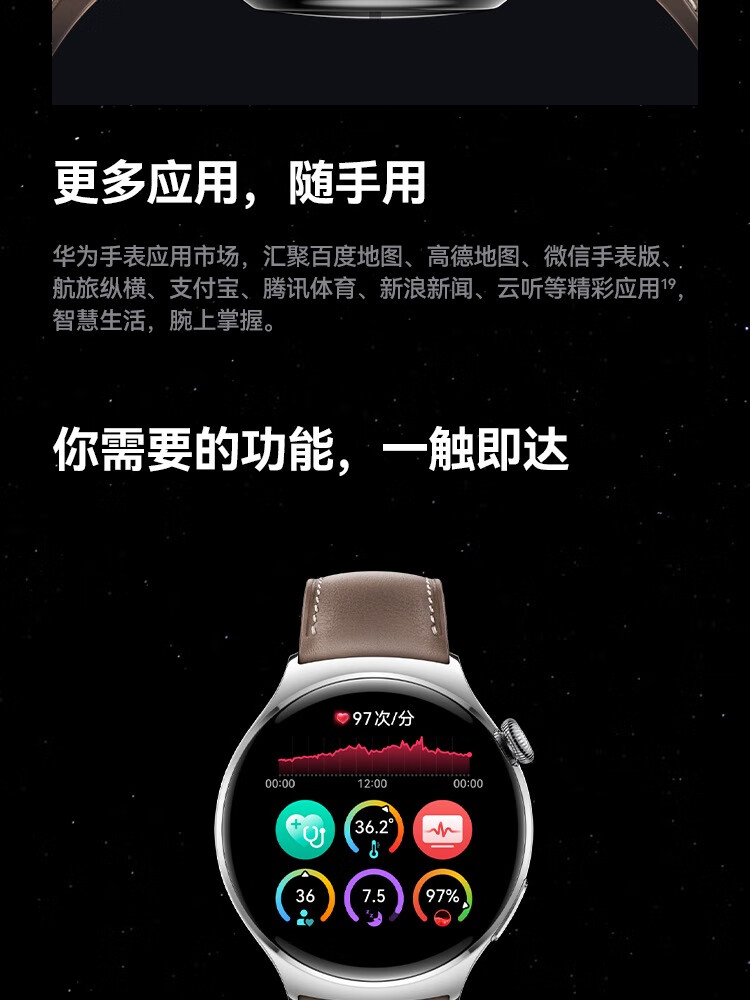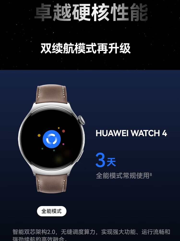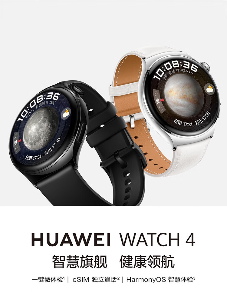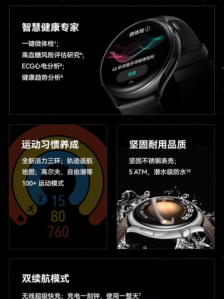 HUAWEI华为WATCH 4 46mm表盘 eSIM独立通话高血糖风险评估研究微信手表版单位:块 幻月黑