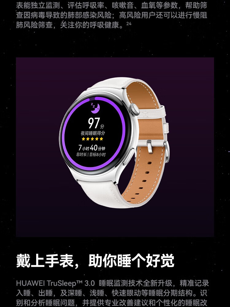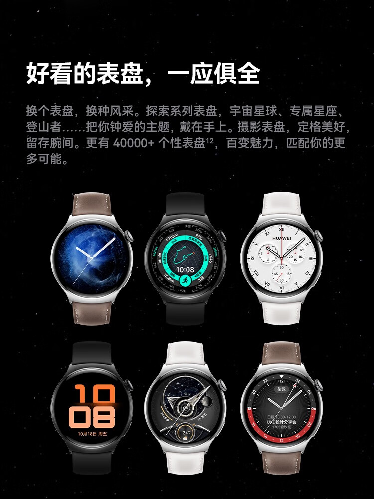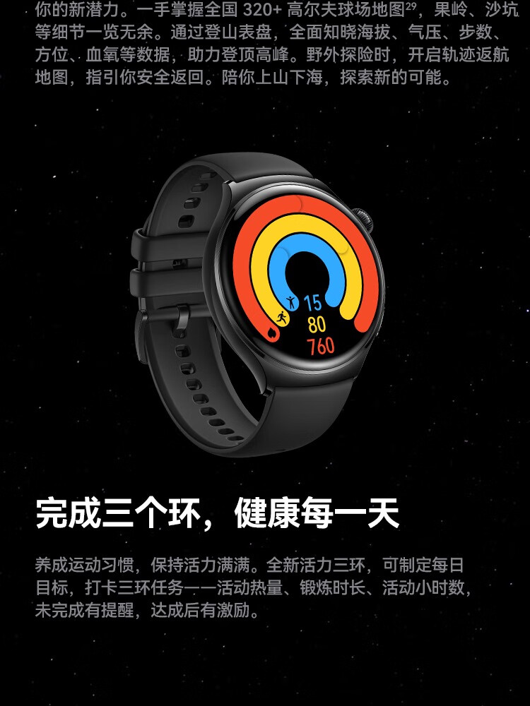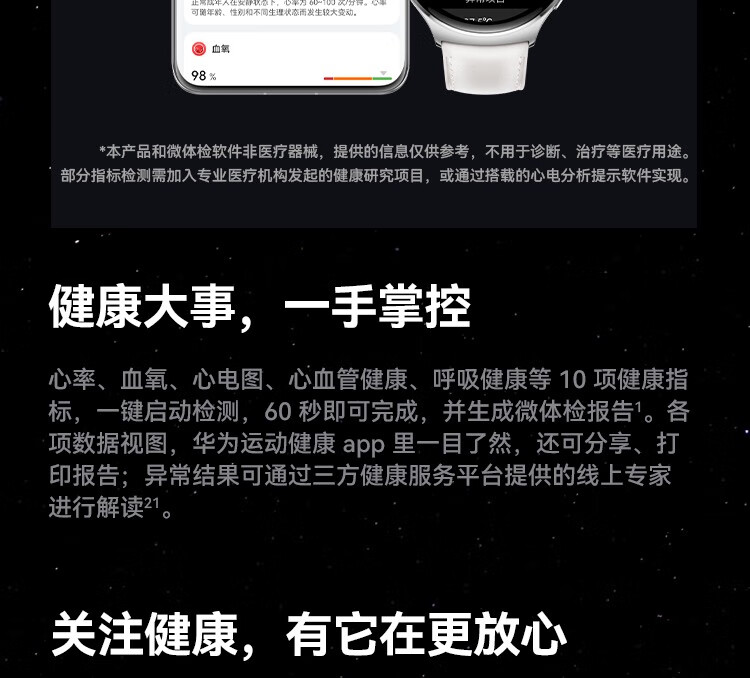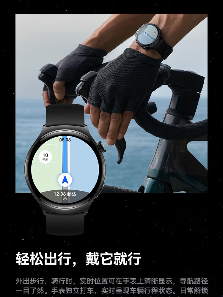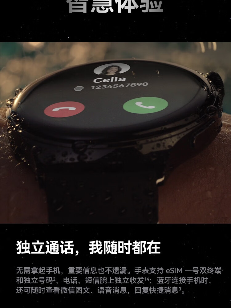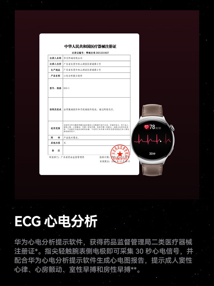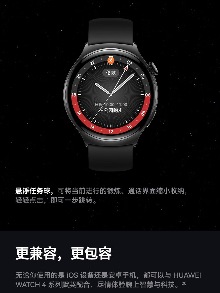 HUAWEI华为WATCH 4 46mm表盘 eSIM独立通话高血糖风险评估研究微信手表版单位:块 幻月黑