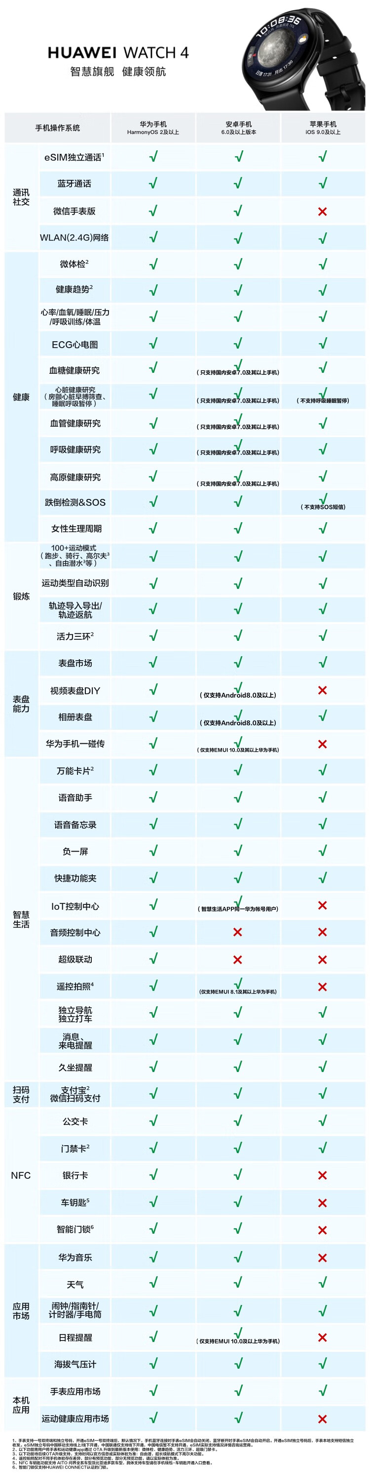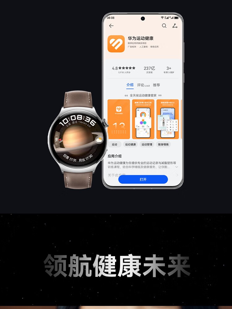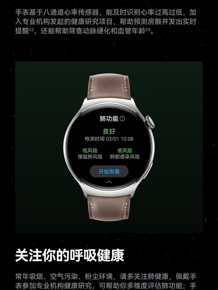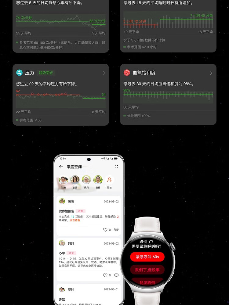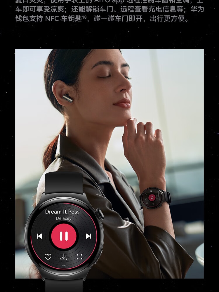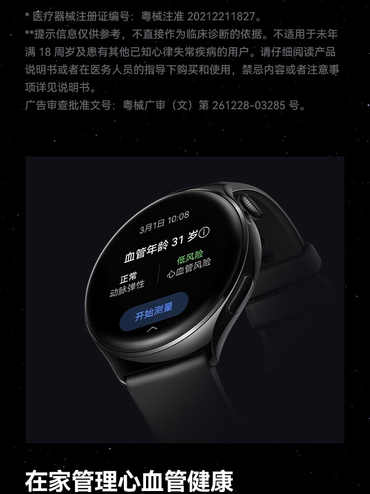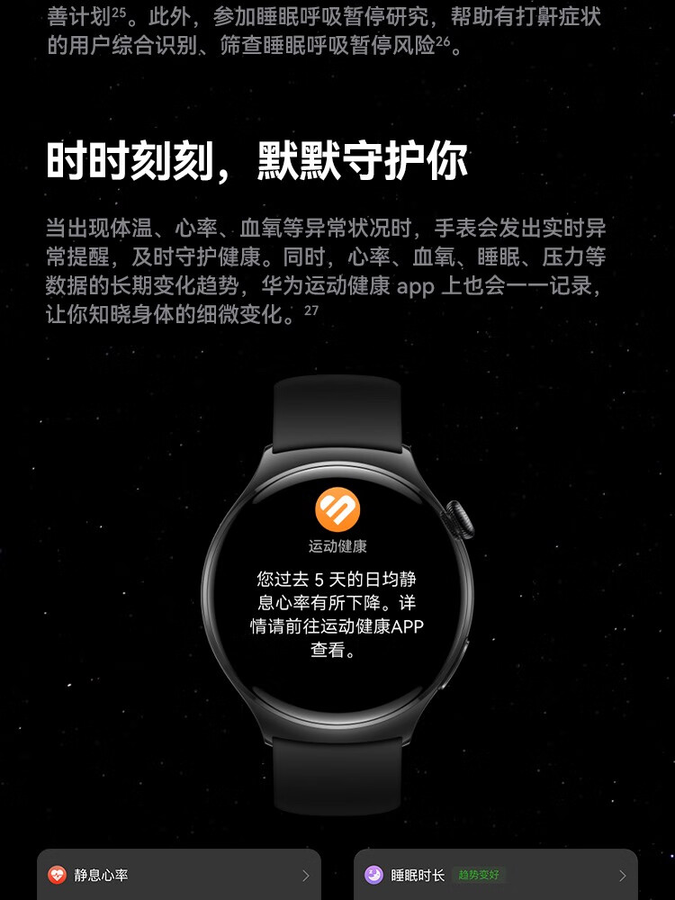HUAWEI华为WATCH 4 46mm表盘 eSIM独立通话高血糖风险评估研究微信手表版单位:块 幻月黑