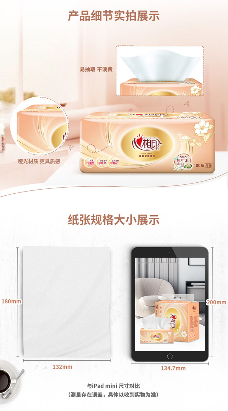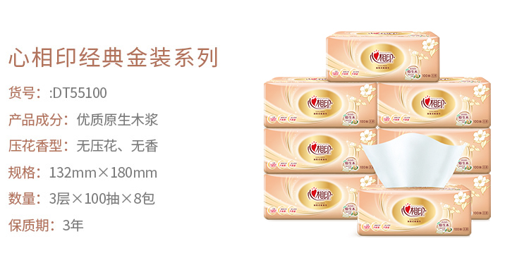 心相印DT55100(包装)金装经典系列100抽3层塑装纸面巾8包*1提 白色