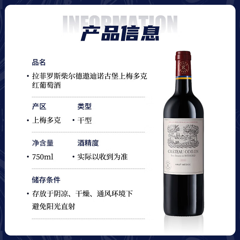 遨迪诺古堡上梅多克红葡萄酒750ML(单位:瓶) 图色