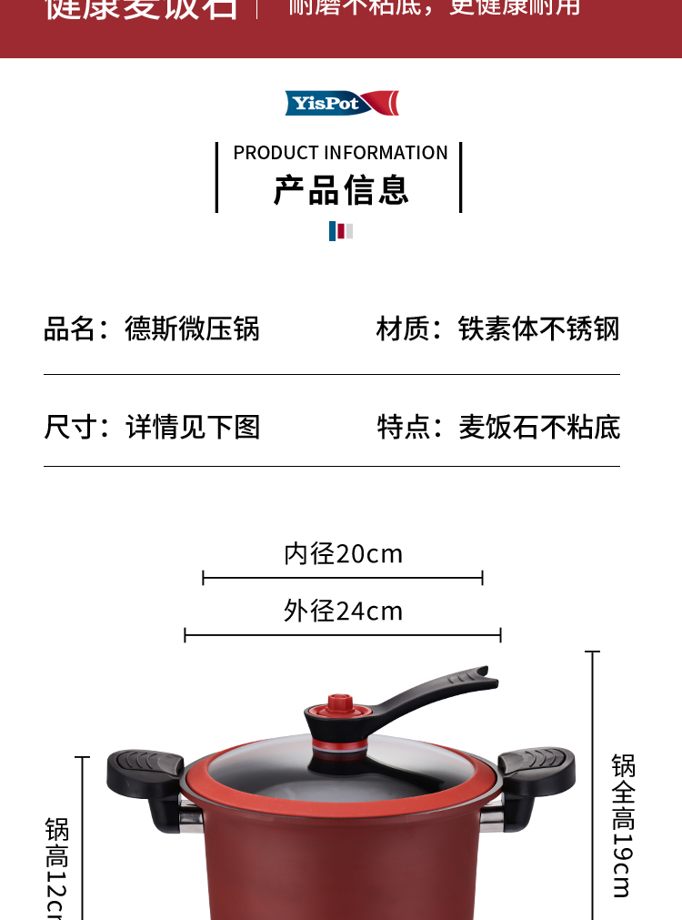 YisPot易铂德斯微压锅YP-9050铁素体不锈钢(单位:个) 红色