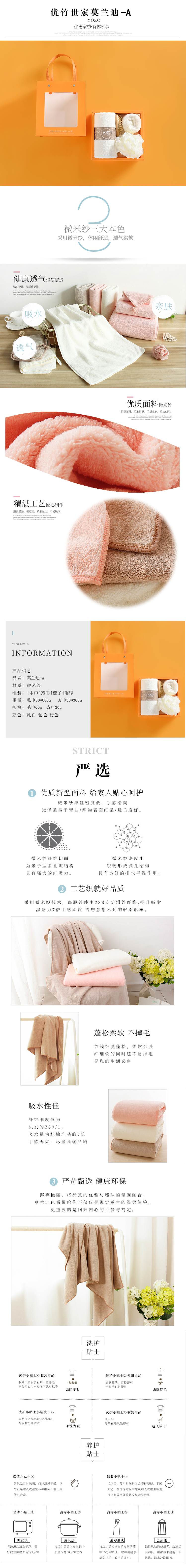 优竹世家 莫兰迪-A 微米纱毛巾方巾木梳浴球组合套装 白色 粉色 驼色(单位:套) 随机