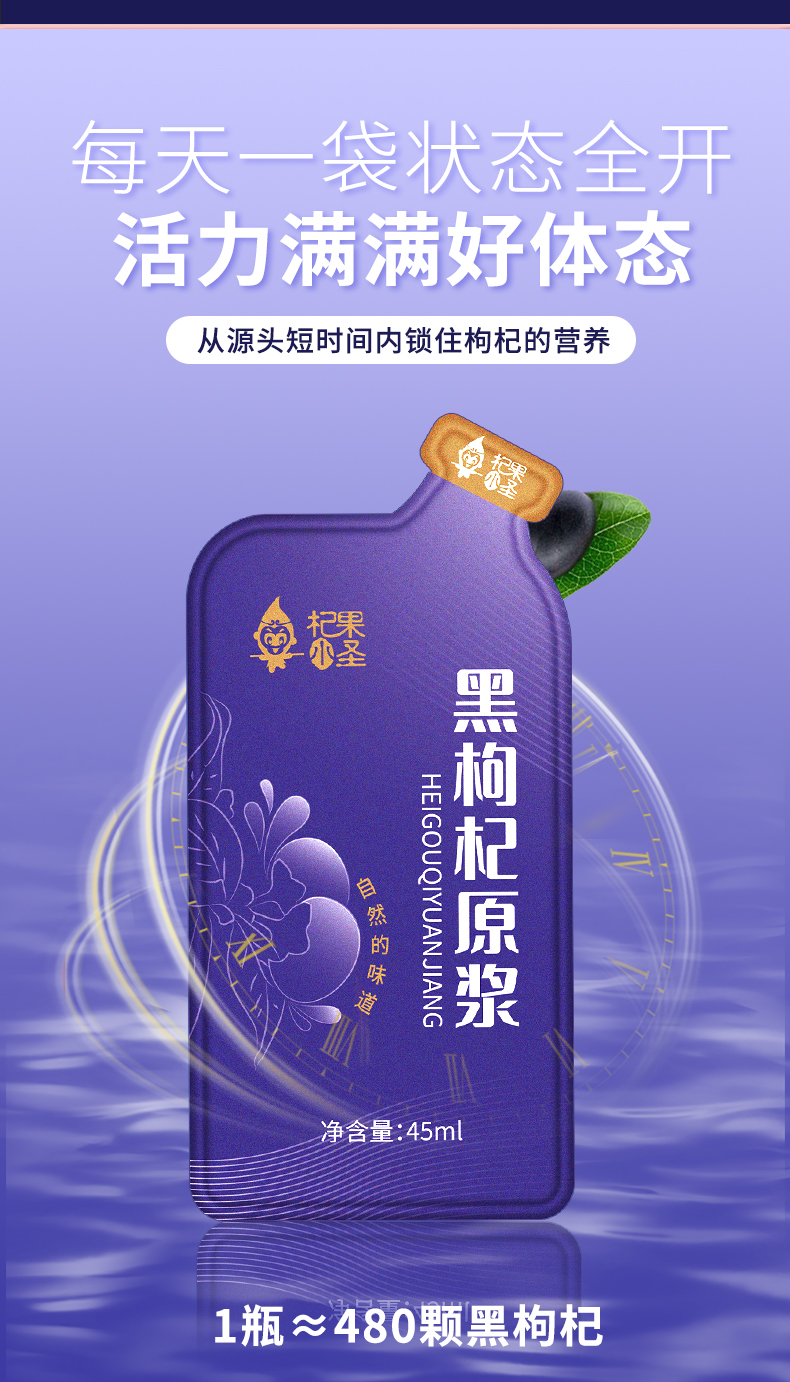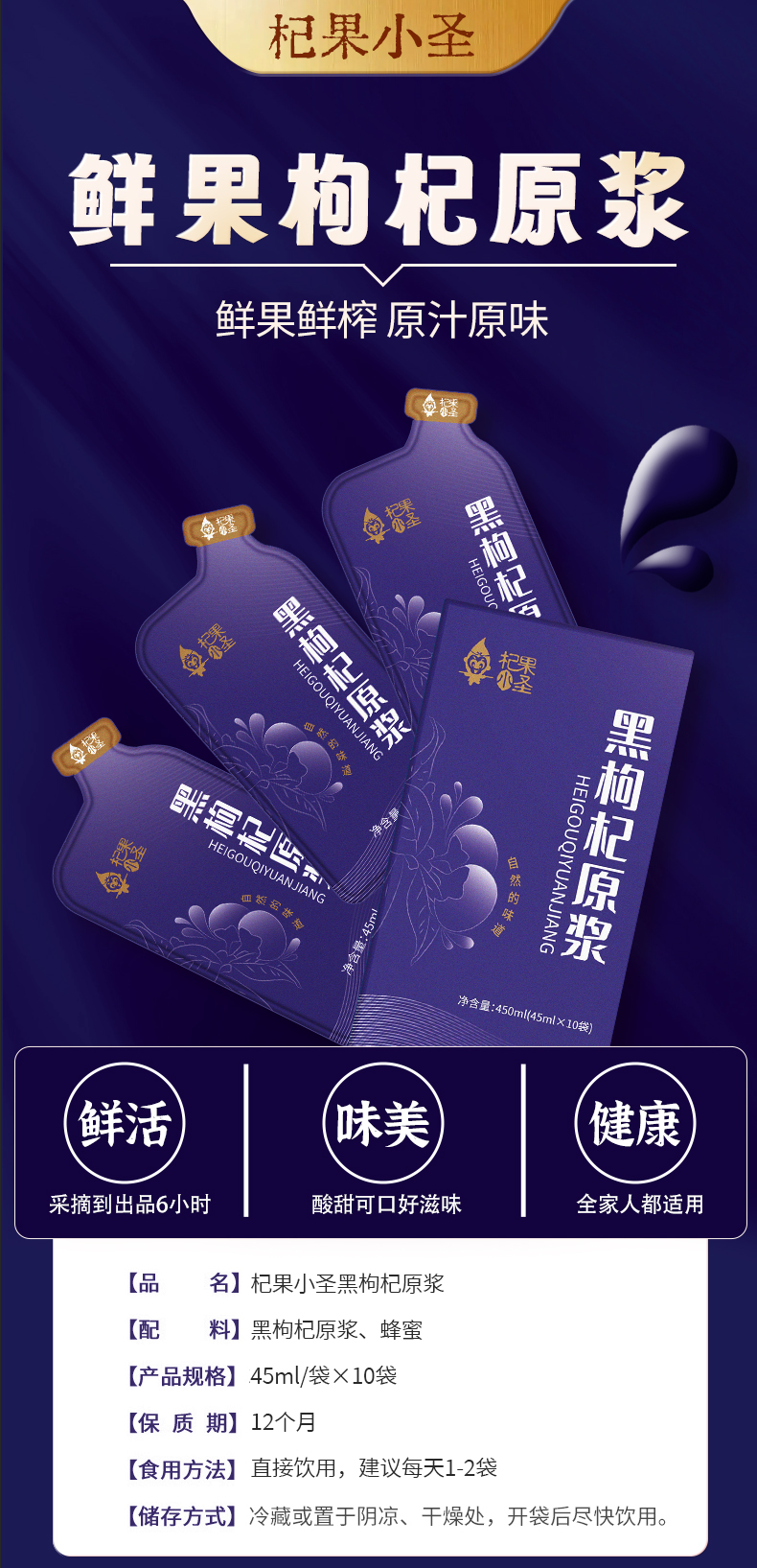 杞果小圣有黑枸杞鲜浆450ML(10袋*45ML)单位:盒 极光蓝
