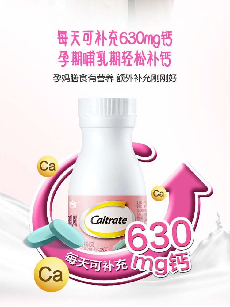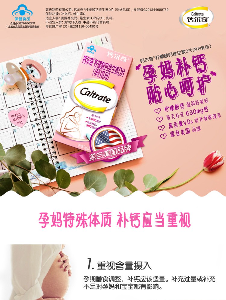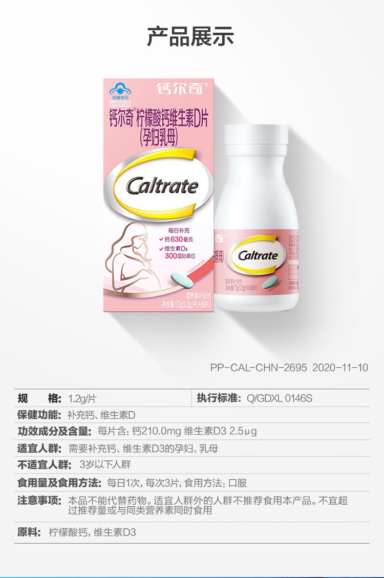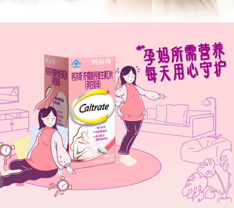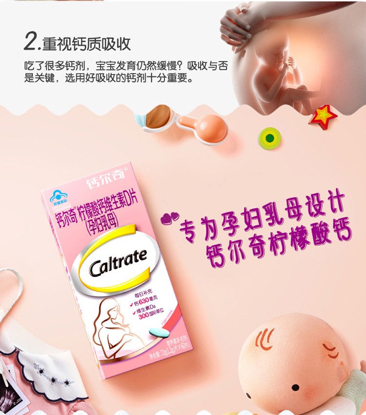 钙尔奇 孕妇乳母钙 孕早期中期 孕晚期柠檬酸钙 孕妇专用补钙片 维生素D3片 60片/盒 图片色