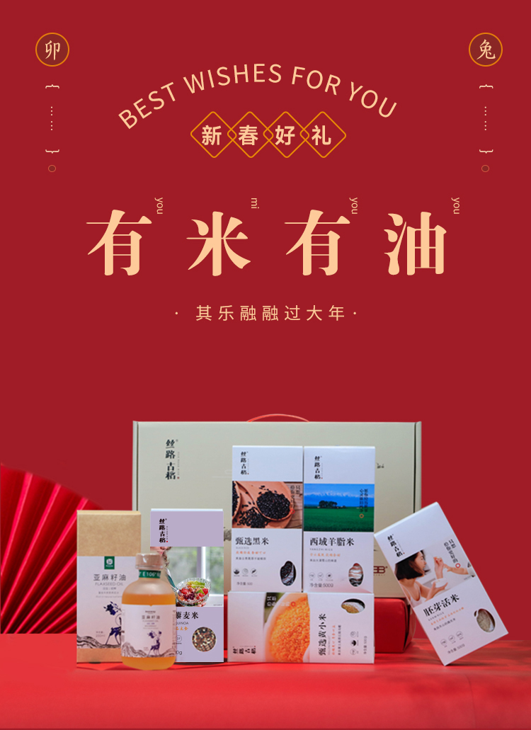 北纬三十八度丨丝路古稻有米有油礼盒健康营养主食3000g+250ml(单位:盒) 象牙色