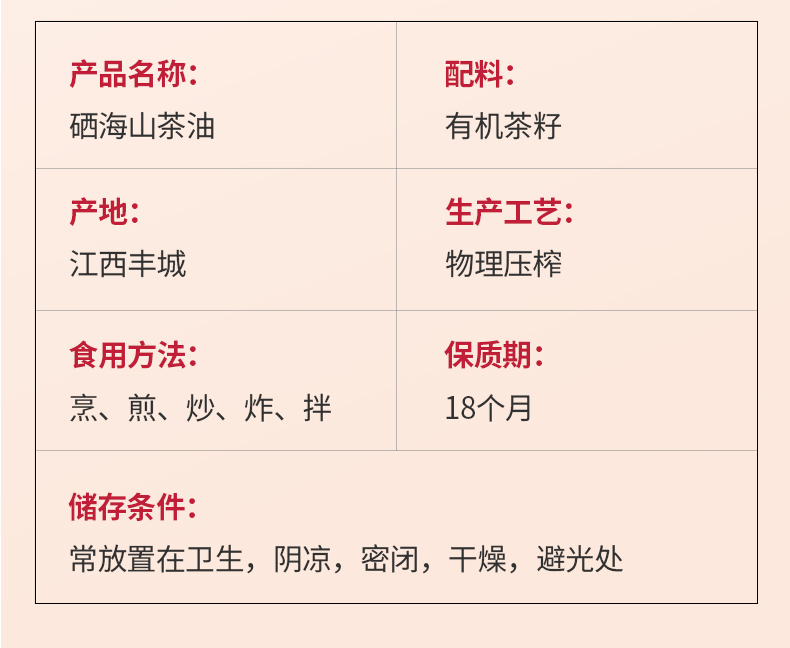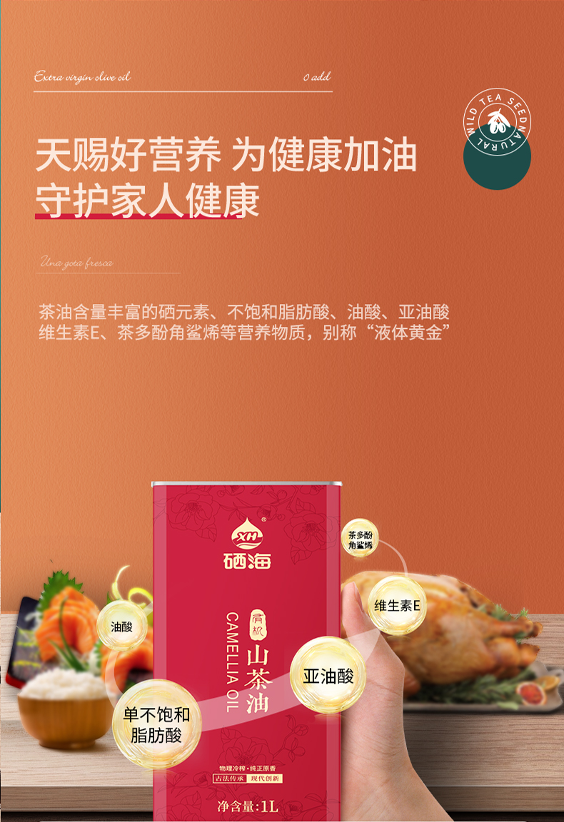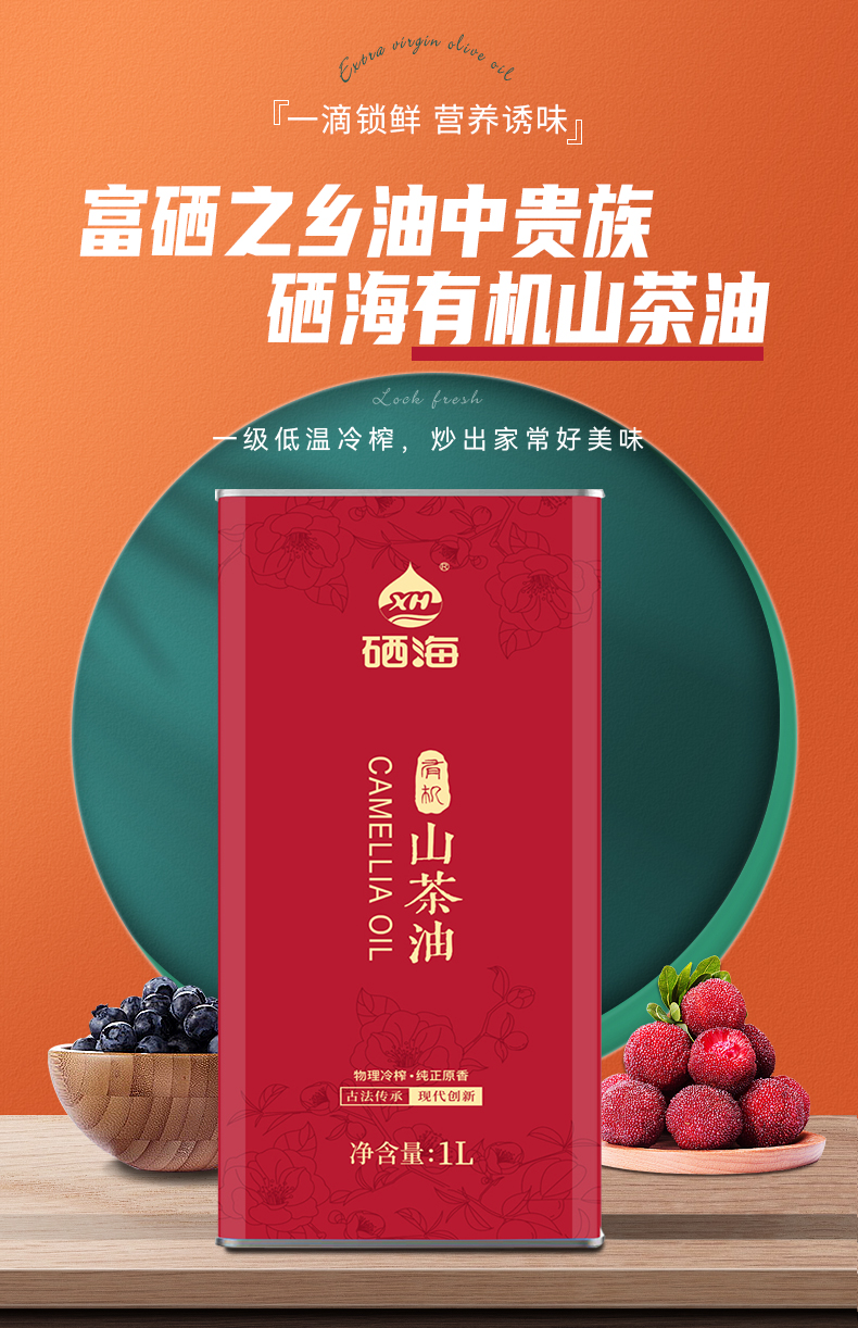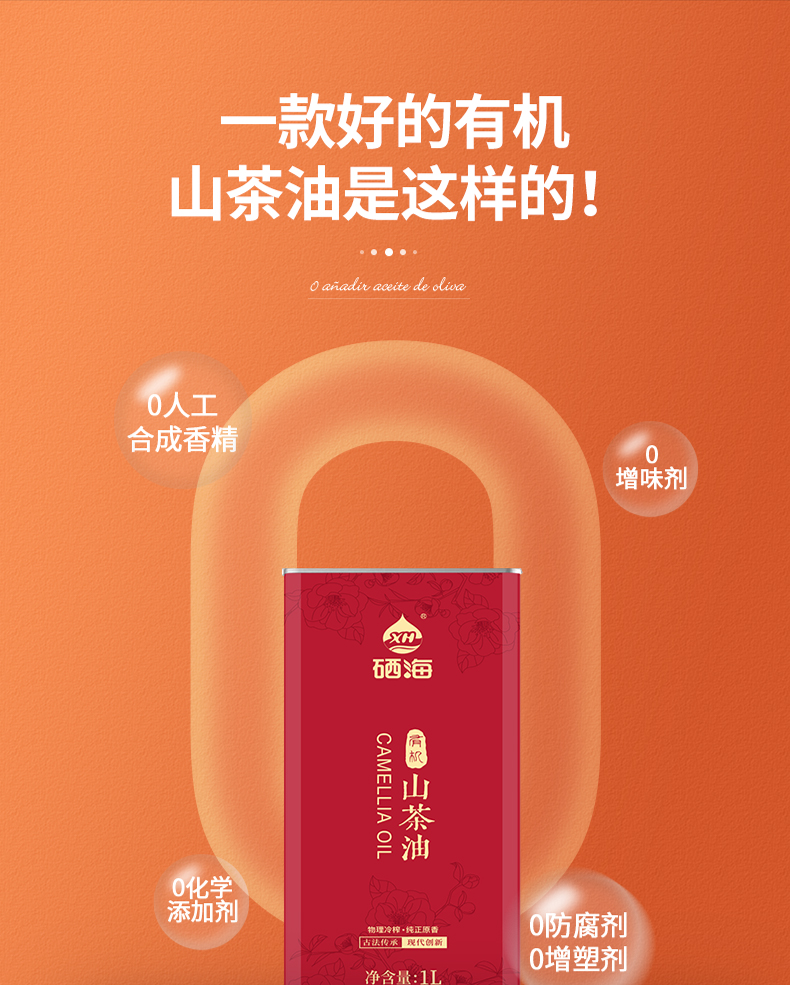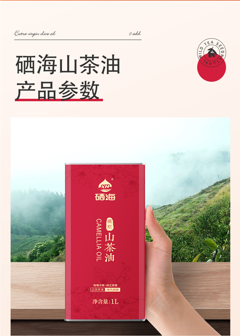 XH硒海(马克铁)冷榨山茶油1L(单位:瓶) 冷榨山茶油1L