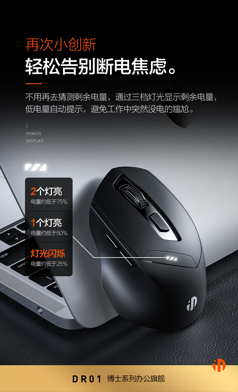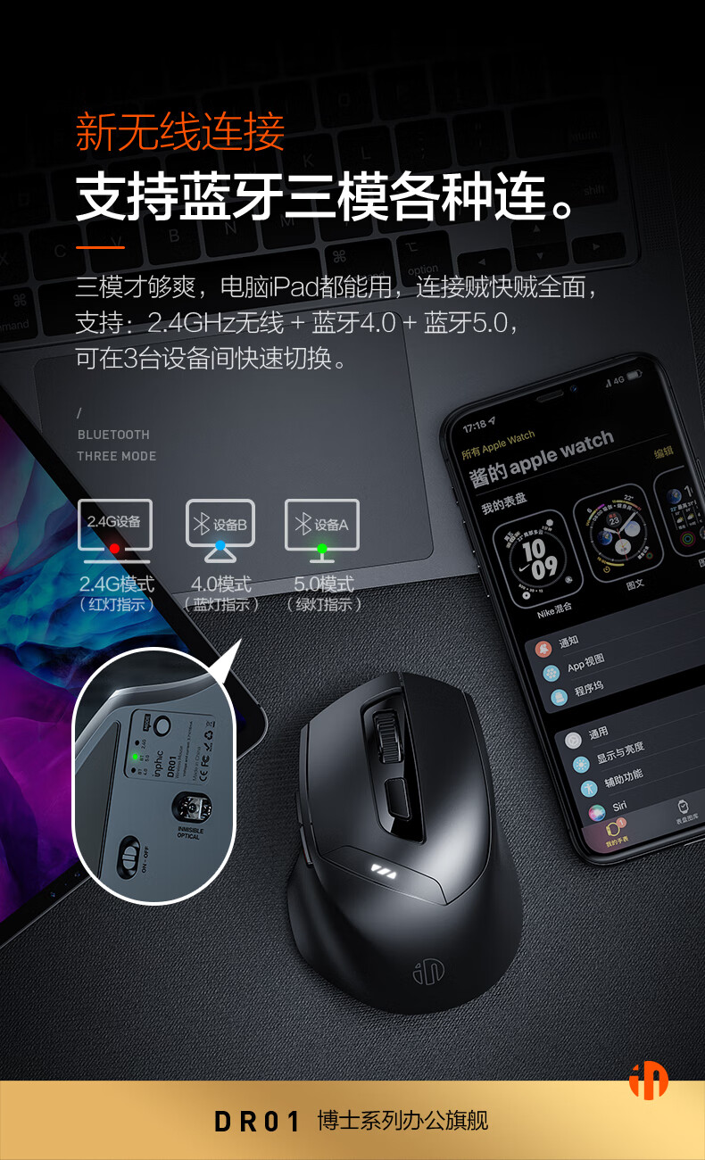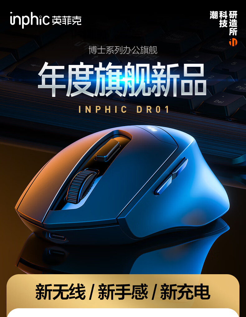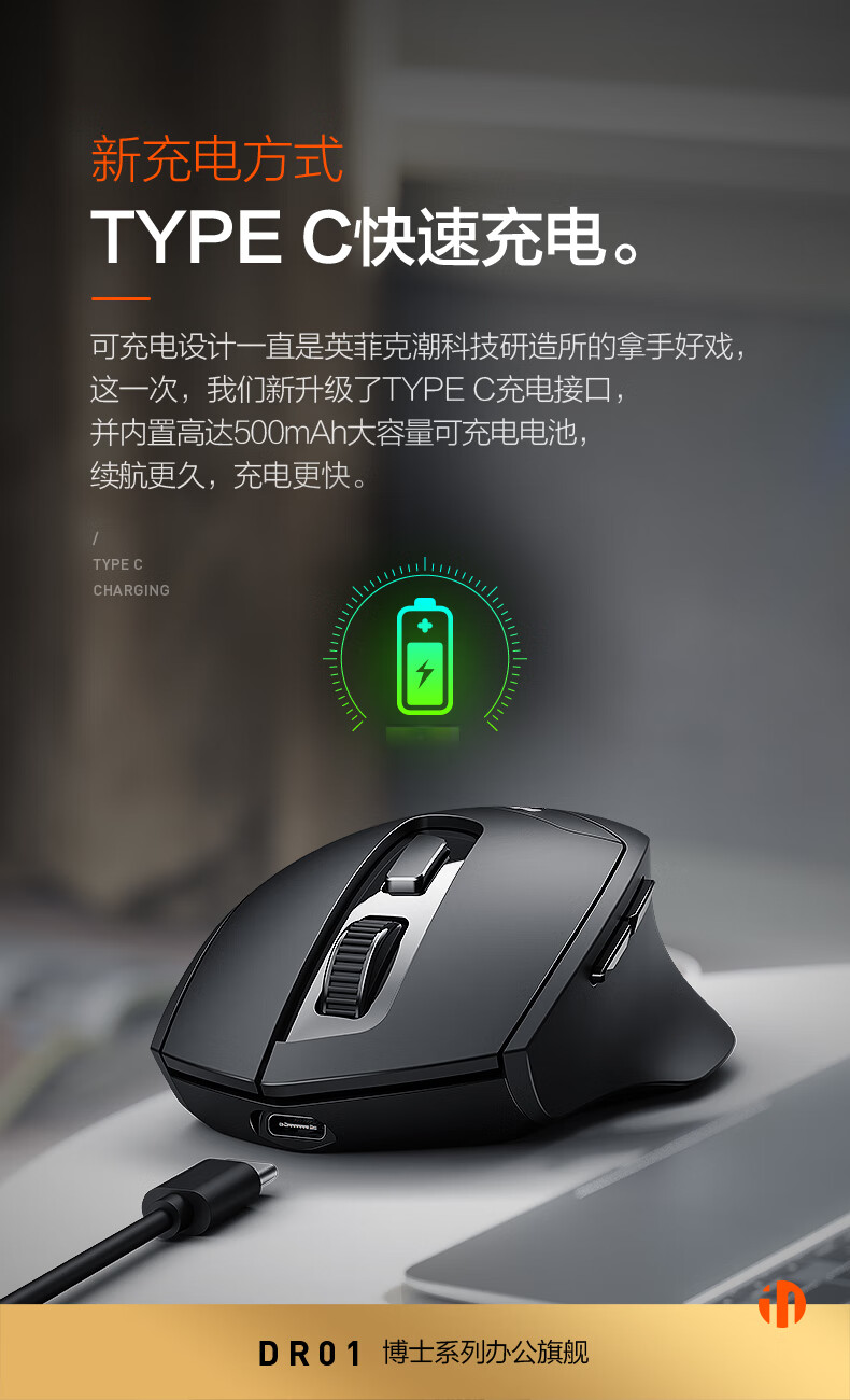 英菲克(INPHIC) DR01无线蓝牙鼠标可充电式办公轻音便携 单位:个 黑色