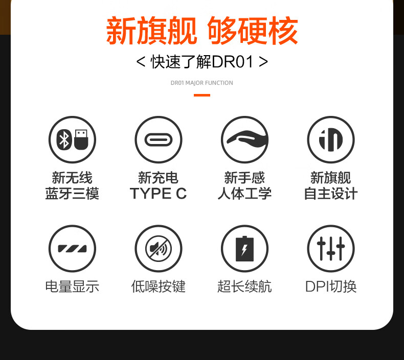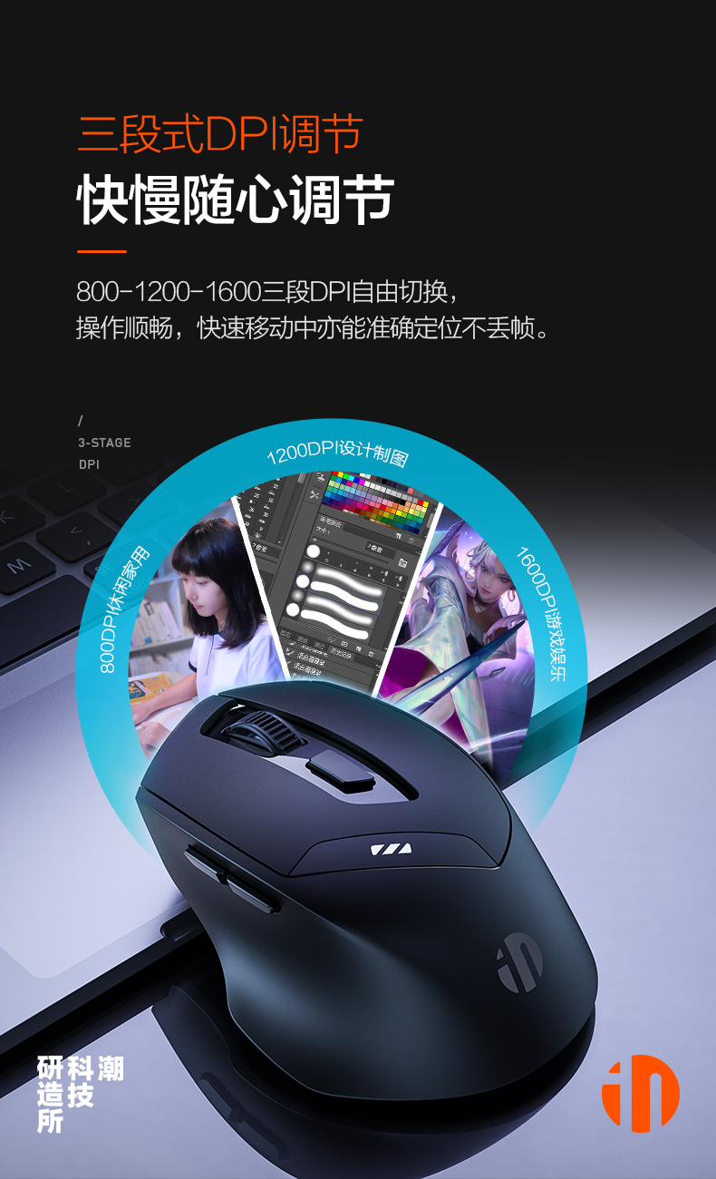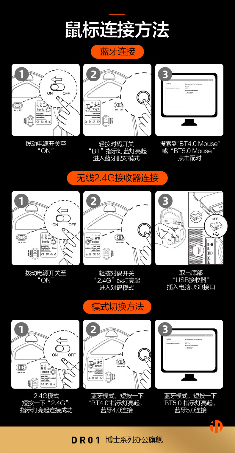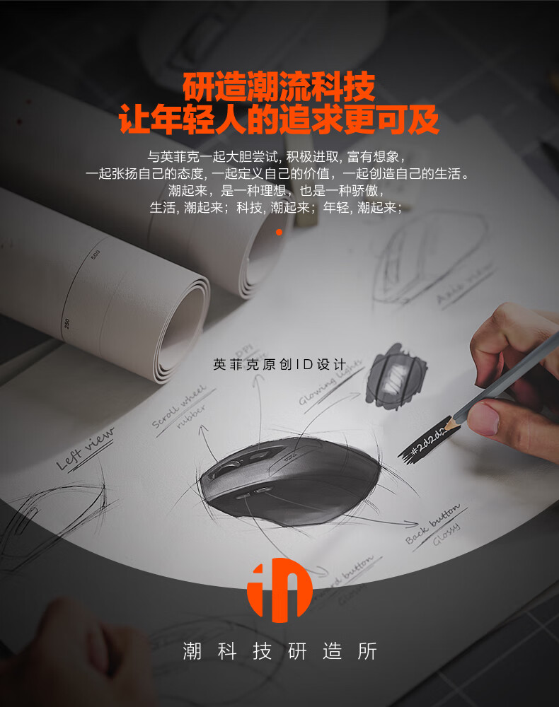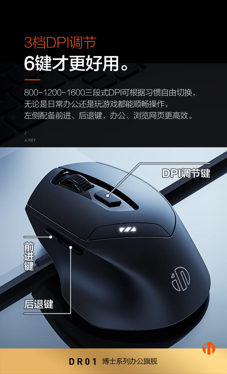 英菲克(INPHIC) DR01无线蓝牙鼠标可充电式办公轻音便携 单位:个 黑色