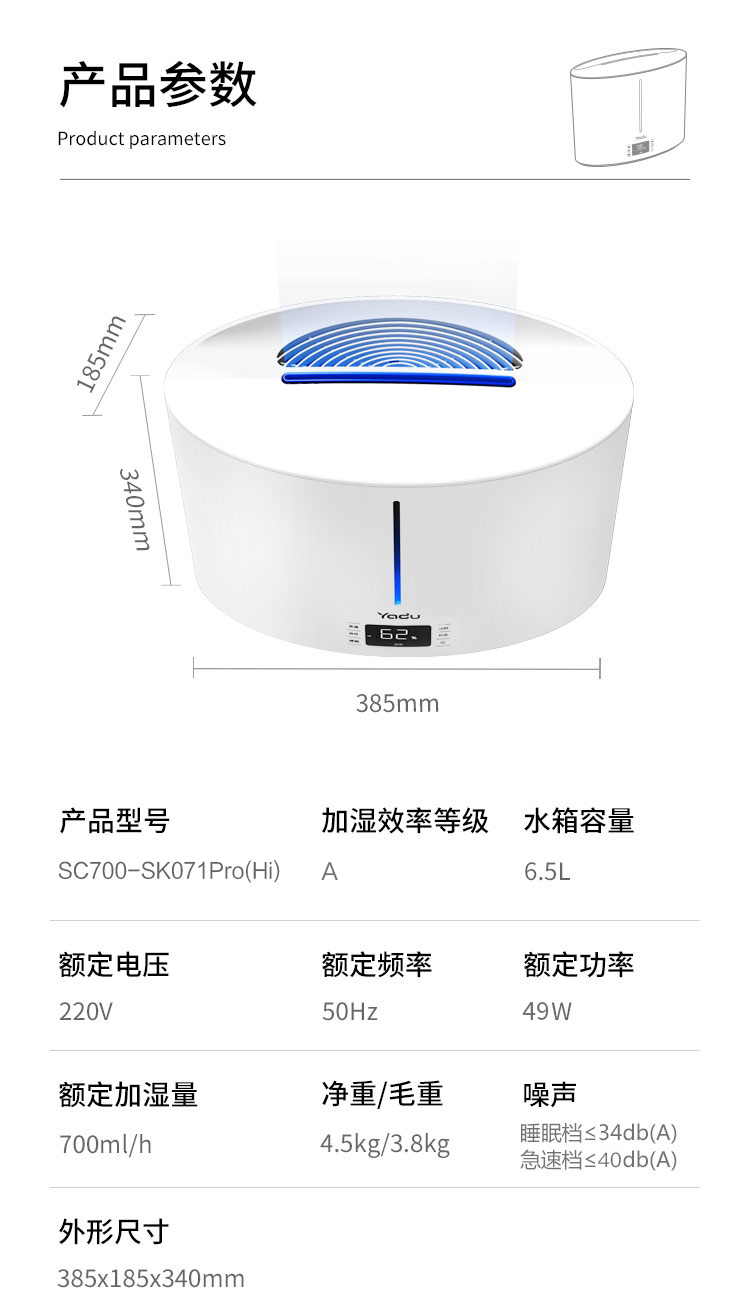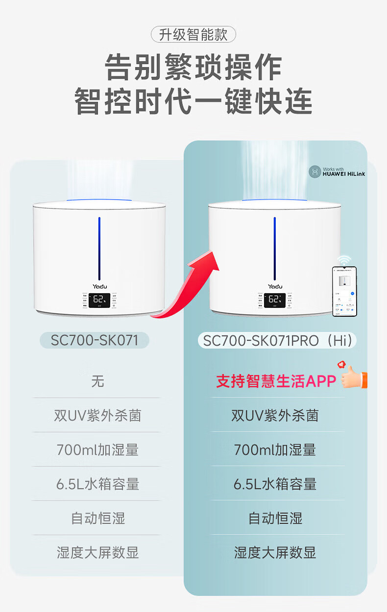 亚都 加湿器卧室大雾量便捷上加水鸿蒙智联大容量除菌家用SC700-SK071PRO(Hi)单位:台 白色