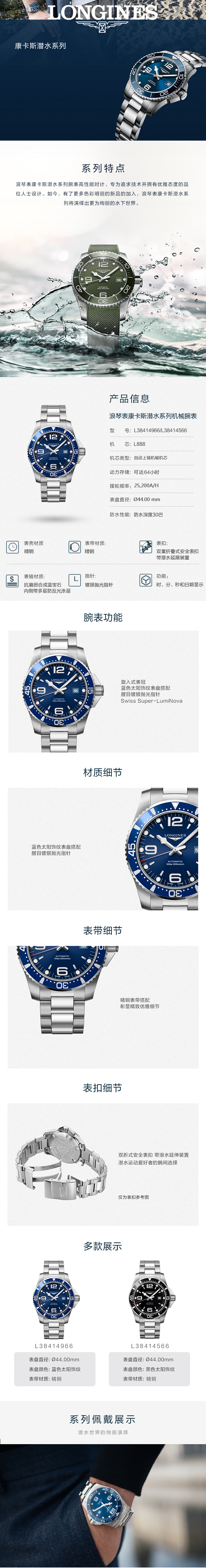 浪琴(LONGINES)康卡斯潜水系列 男表L3.841.4.56.6 单位:块 黑色