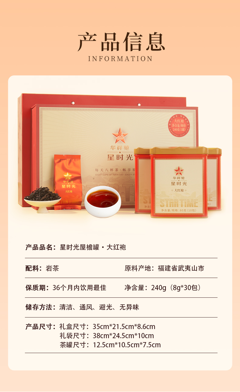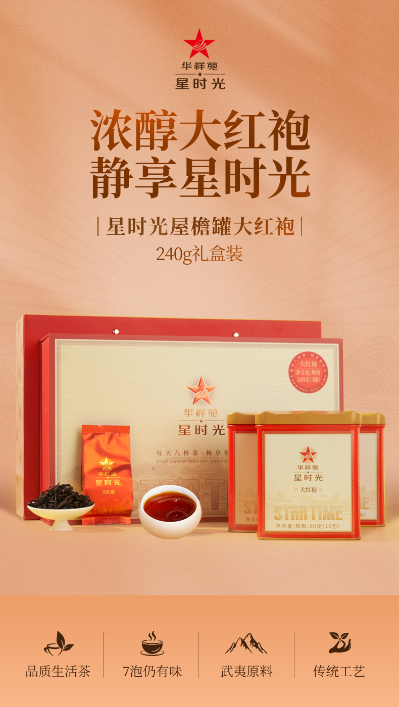 华祥苑星时光大红袍屋檐礼盒装240g 单位:罐