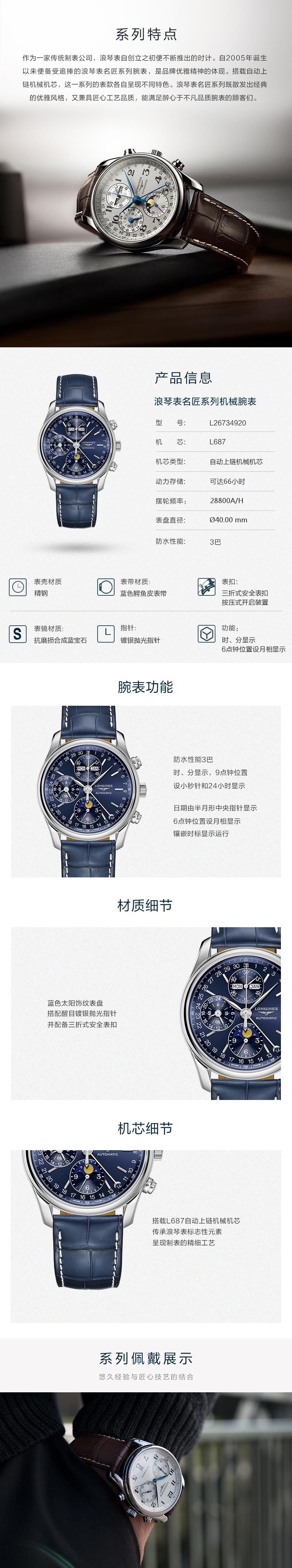 浪琴(LONGINES)名匠系列 月相机械皮带男表 L2.673.4.92.0 单位:块 蓝色