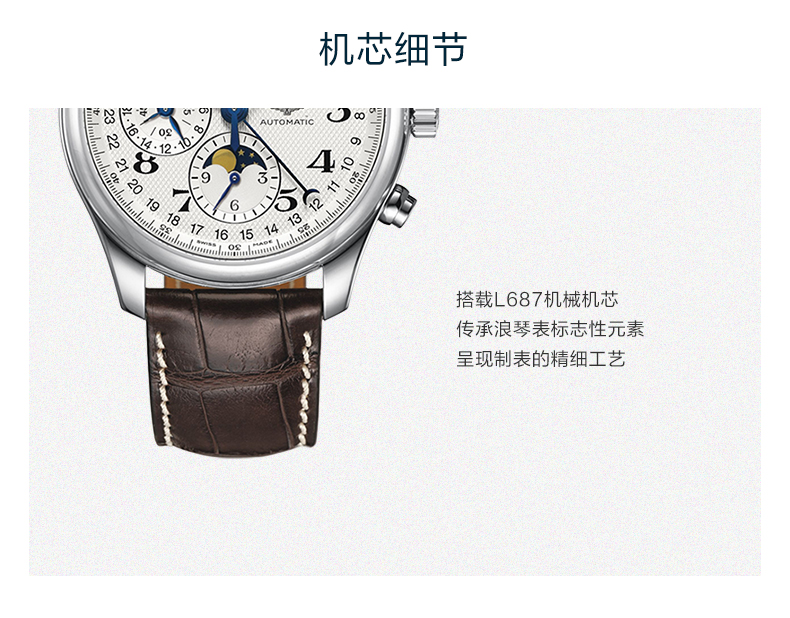 浪琴(LONGINES)名匠系列月相机械皮带男表 L2.773.4.78.3 单位:块 白色